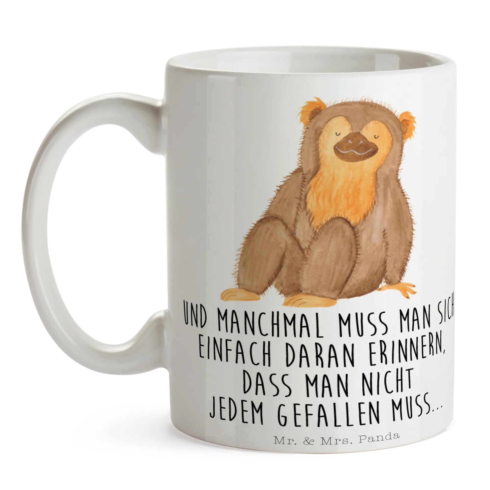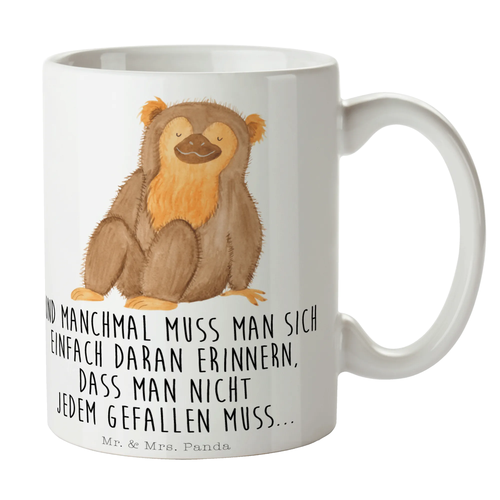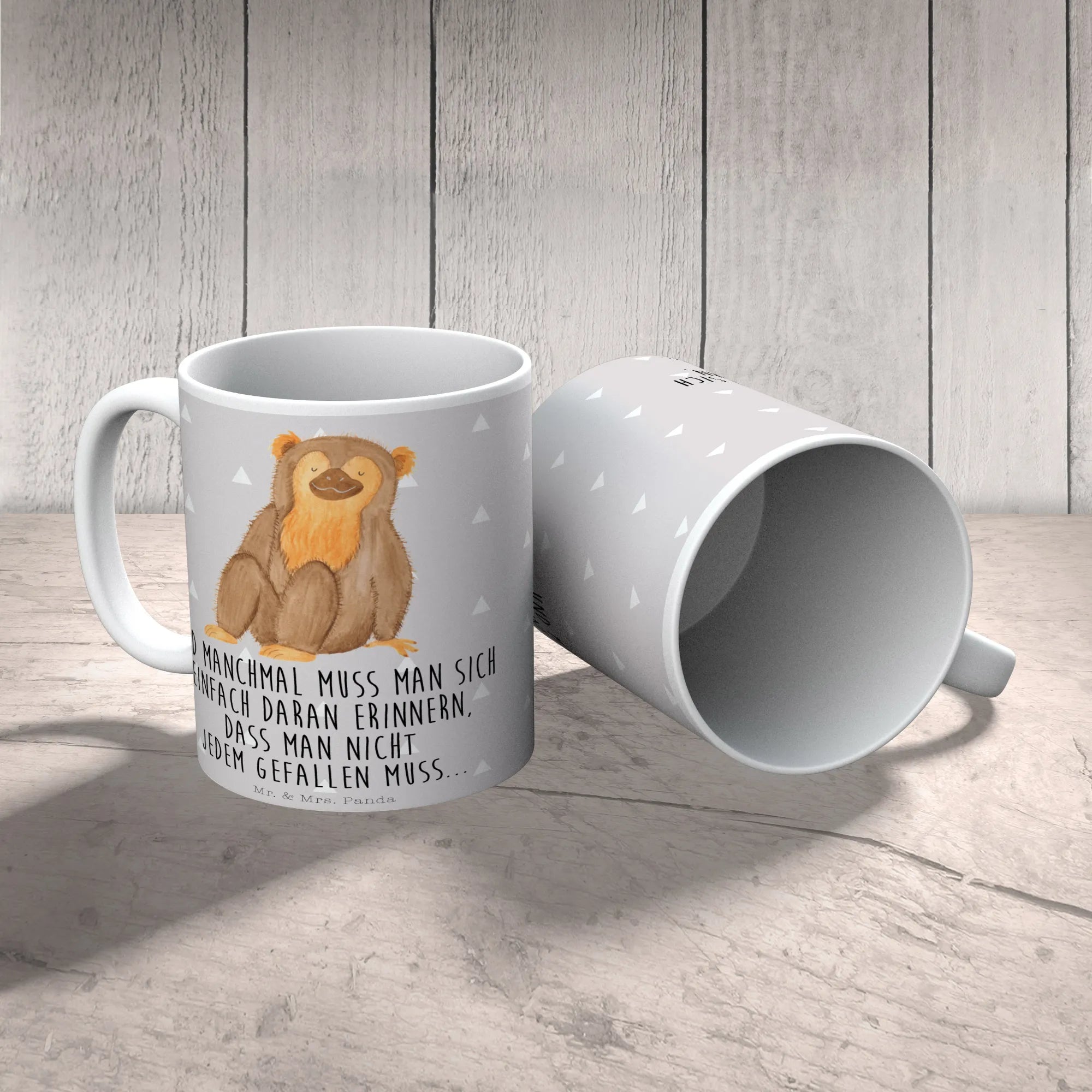 Du bist auf der Suche nach dem perfekten Geschenk? Unsere wunderschöne Keramiktasse mit dem süßen Affen-Konrad aus der Afrika Kollektion von Mr. & Mrs. Panda ist die ideale Wahl! Diese Tasse bringt nicht nur Freude in deinen Alltag, sondern erinnert dich mit dem Spruch: "Und manchmal muss man sich einfach daran erinnern, dass man nicht jedem gefallen muss..." an die Wichtigkeit der Selbstliebe und des Selbstbewusstseins.