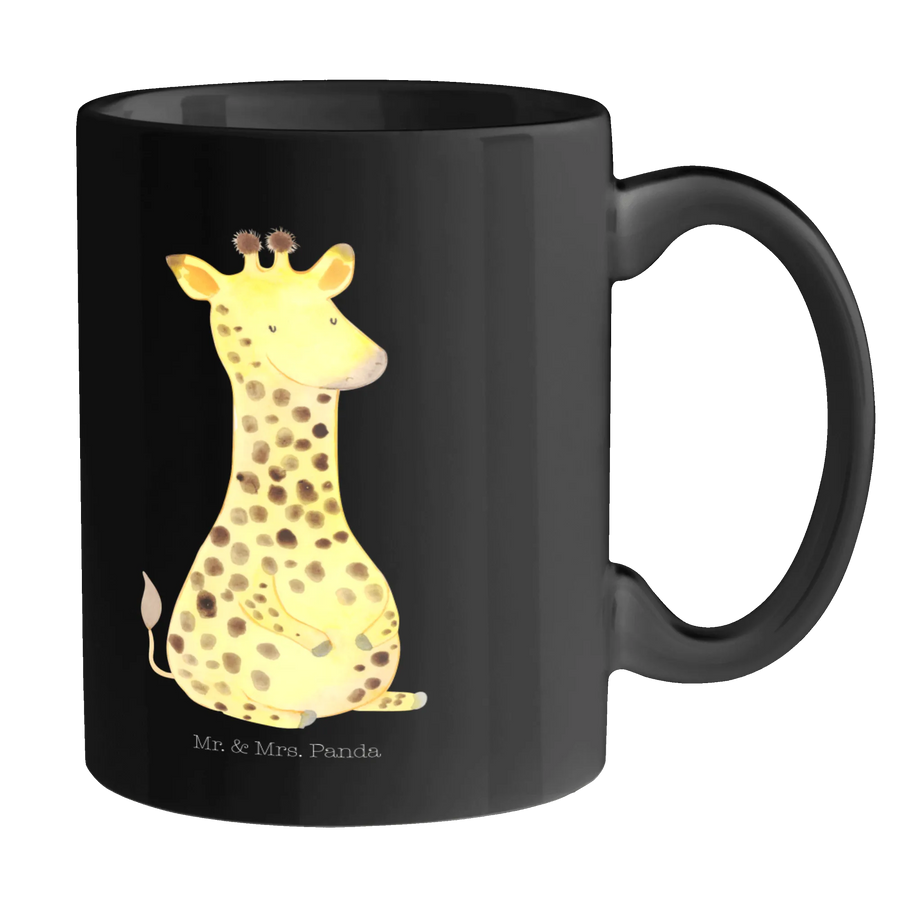 Tasse Giraffe Zufrieden - ohne Spruch - Keramik Schwarz - Schwarz