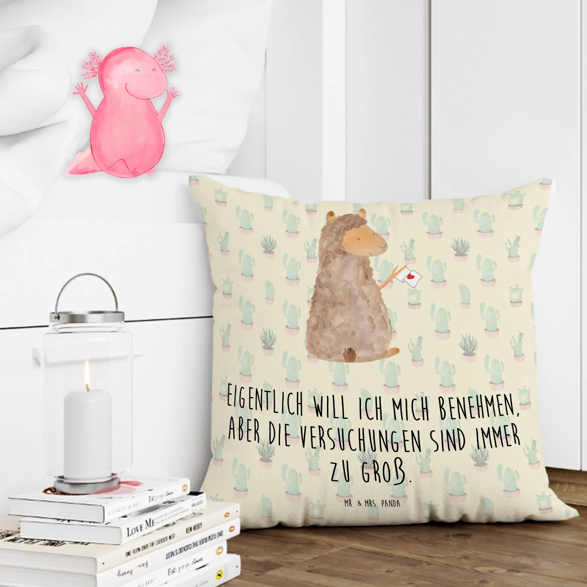 Schmücke dein Zuhause mit dem Alpaka Fahne Kissen von Mr. & Mrs. Panda!