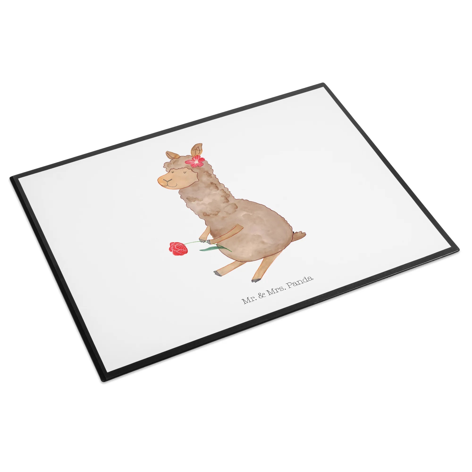 Die Schreibtischunterlage "Alpaka Blume" von Mr. & Mrs. Panda ist die perfekte Mischung aus Funktionalität und Stil für dein Büro, dein Homeoffice oder deinen Arbeitsplatz. Mit glücklich lächelndem Alpaka und einer zauberhaften Blume im Haar bringt die Unterlage nicht nur Freude, sondern auch ein wenig Natur in deinen Arbeitsalltag.