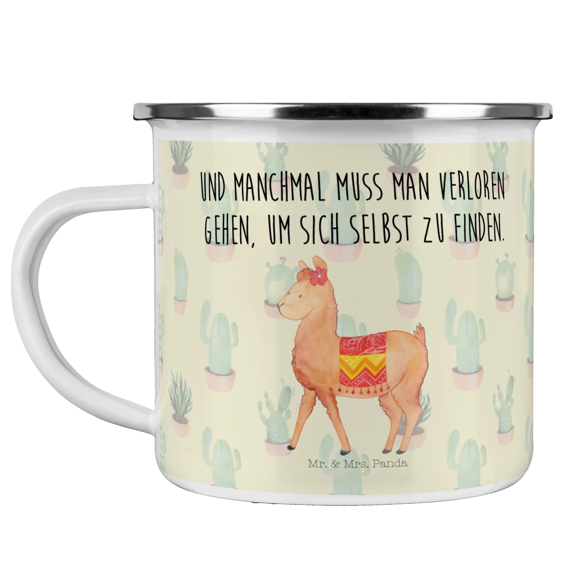 Sie ist aus kratzfester Emaille gefertigt und hat eine Füllmenge von 300 ml, sodass sie sowohl für heiße als auch kalte Getränke ideal geeignet ist. ☕ Das entzückende Alpaka-Motiv verleiht der Tasse Charme und Persönlichkeit. Das Alpaka, das sich mit einer süßen Schleife herausgeputzt hat, strahlt Freude und Stolz aus. Es erinnert uns daran, dass wir manchmal verloren gehen müssen, um uns selbst zu finden.