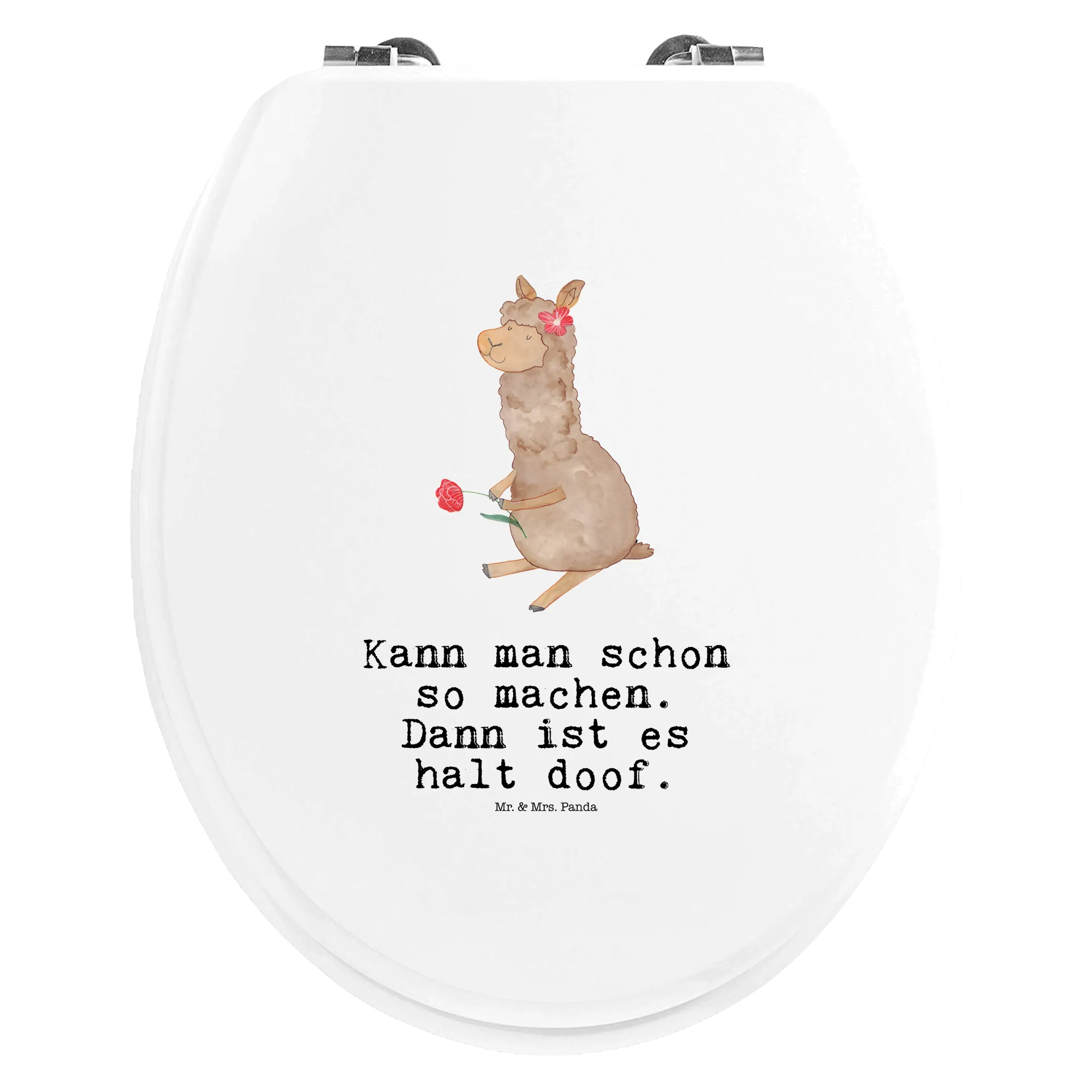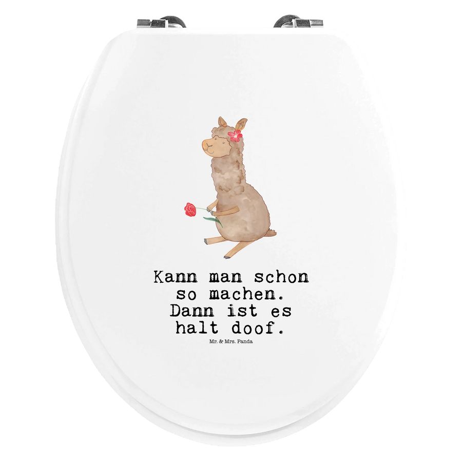 WC Sitz Alpaka Blume - mit Spruch - Hartfaser Holzkern Weiß - Weiß