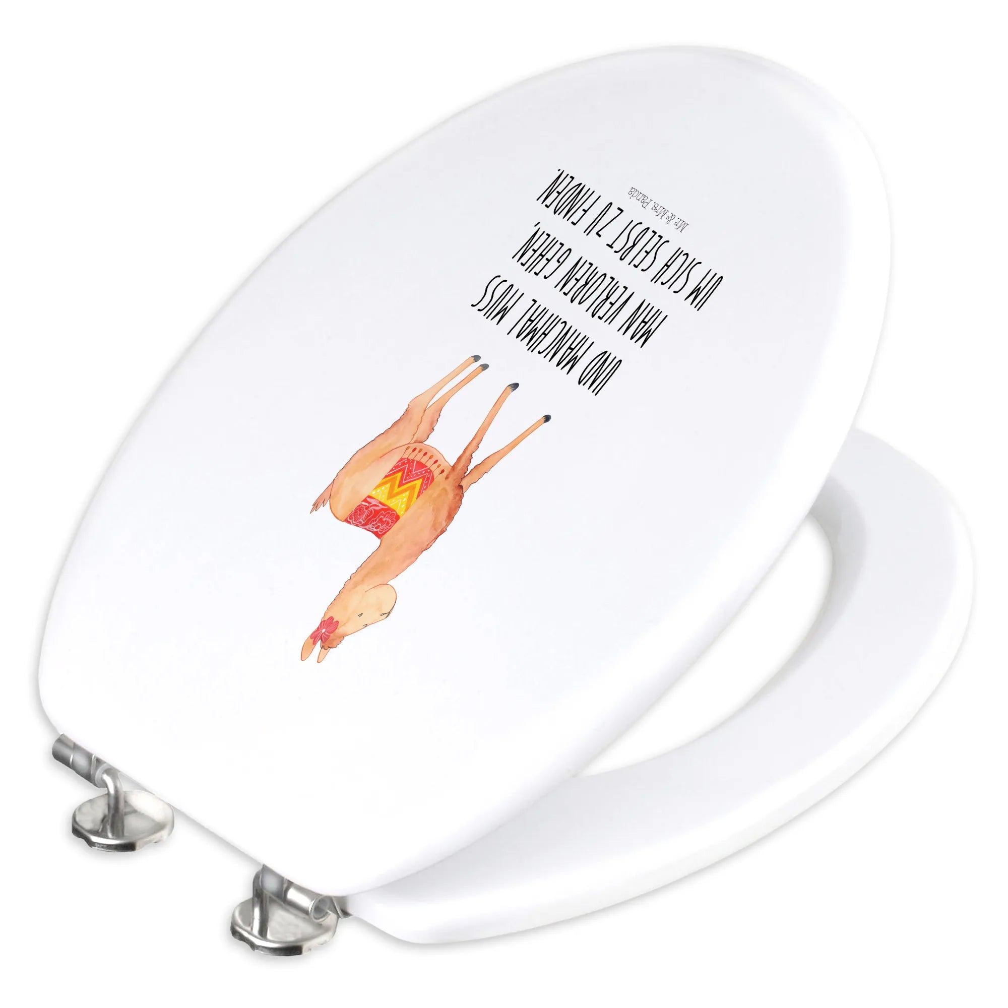 Der Motiv WC Sitz "Alpaka stolz" aus der wundervollen Kollektion von Mr. & Mrs. Panda ist das perfekte Geschenk für alle, die ein quirliges, aber gleichzeitig gemütliches Badezimmer lieben. Du suchst nach einem witzigen und praktischen Accessoire, das deinen Raum einladender macht? Dann wirst du diesen tollen Toilettensitz lieben!