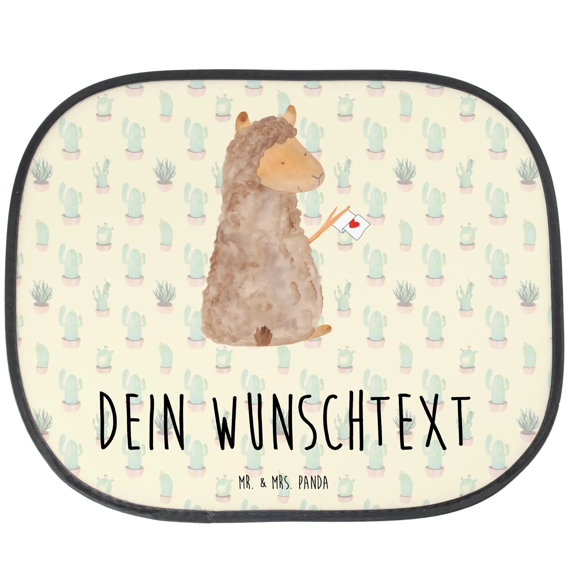 Das süße Alpakamotiv mit dem Herzen bringt einen Hauch von Liebe in deinen Alltag. Stelle dir vor, wie glücklich die Kinder sein werden, wenn sie im Auto von ihrem persönlichen Sonnenschutz mit ihrem eigenen Namen begrüßt werden!