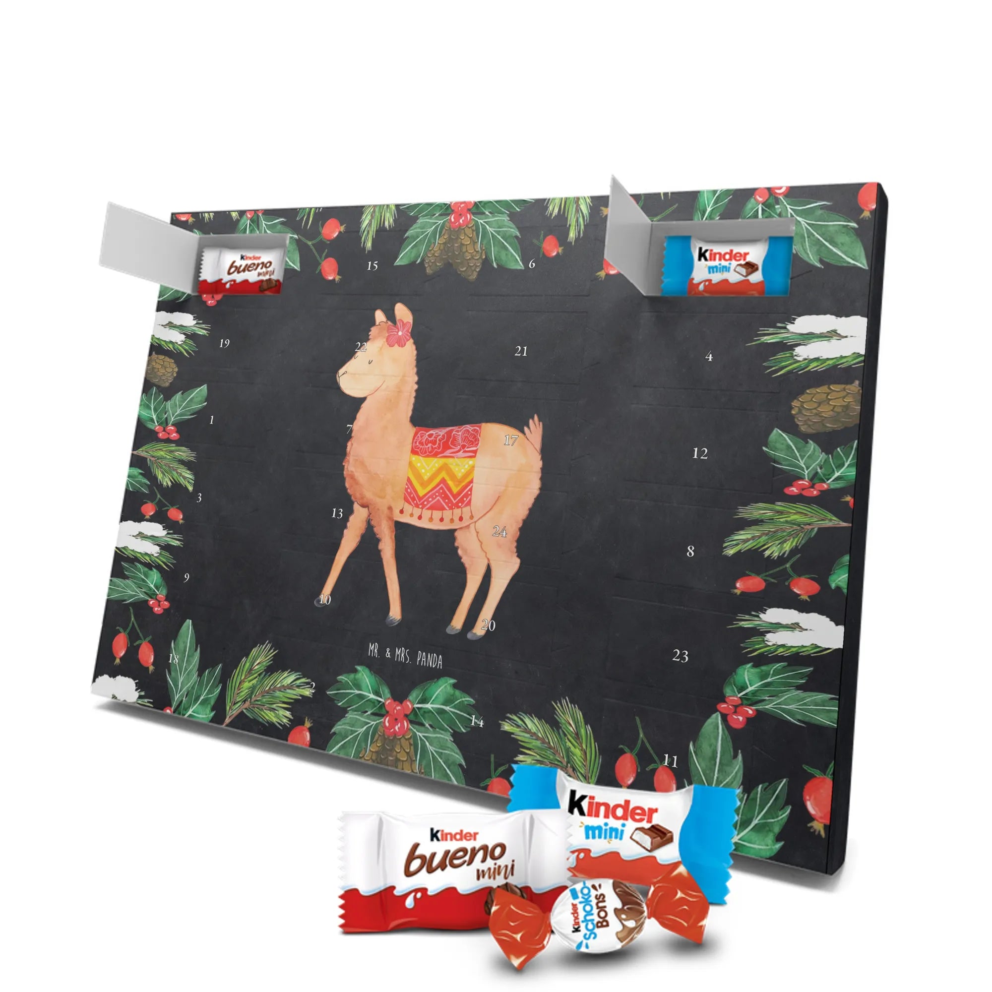 Adventskalender mit Schokolade – liebevoll gestaltet von Mr. & Mrs. Panda. Dieser niedliche Kalender ist bedruckt mit wunderschönen Motiven & Sprüchen von Mr. & Mrs. Panda und trotzdem nicht personalisierbar. Du bekommst brillante Druckqualität mit seidenmatter Oberflächenveredelung sowie bedruckte Seitenflächen, die dem Kalender ein hochwertiges Finish verleihen. Maße: 355 mm x 245 mm x 11 mm. Ein tolles Extra: kann aufgehängt oder aufgestellt werden, sodass du ihn flexibel platzieren kannst. Gefüllt mit Markenname Schokolade: Adventskalender gefüllt mit kinder® Schokolade. Inhalt: kinder® Schoko-Bons, kinder® Bueno mini und kinder® Schokolade mini. Die 24 Türchen sind liebevoll befüllt und sorgen jeden Tag für ein Lächeln – ideal für Kinder, Paare oder als kleines Geschenk für Freunde. Robust und dekorativ zugleich, bringt dieser Adventskalender süße Vorfreude in dein Zuhause. Verschenke oder genieße eine adventliche Zeit voller kleiner, schokoladiger Überraschungen!
