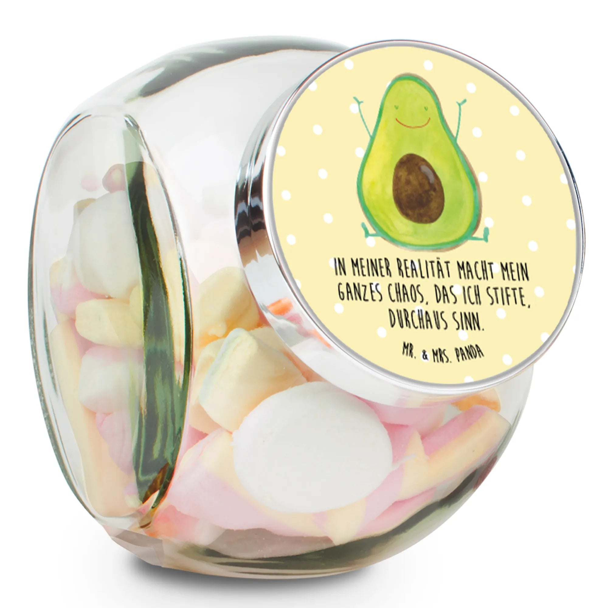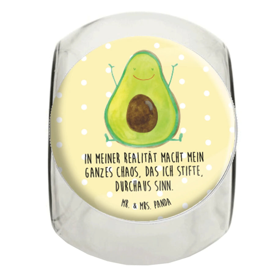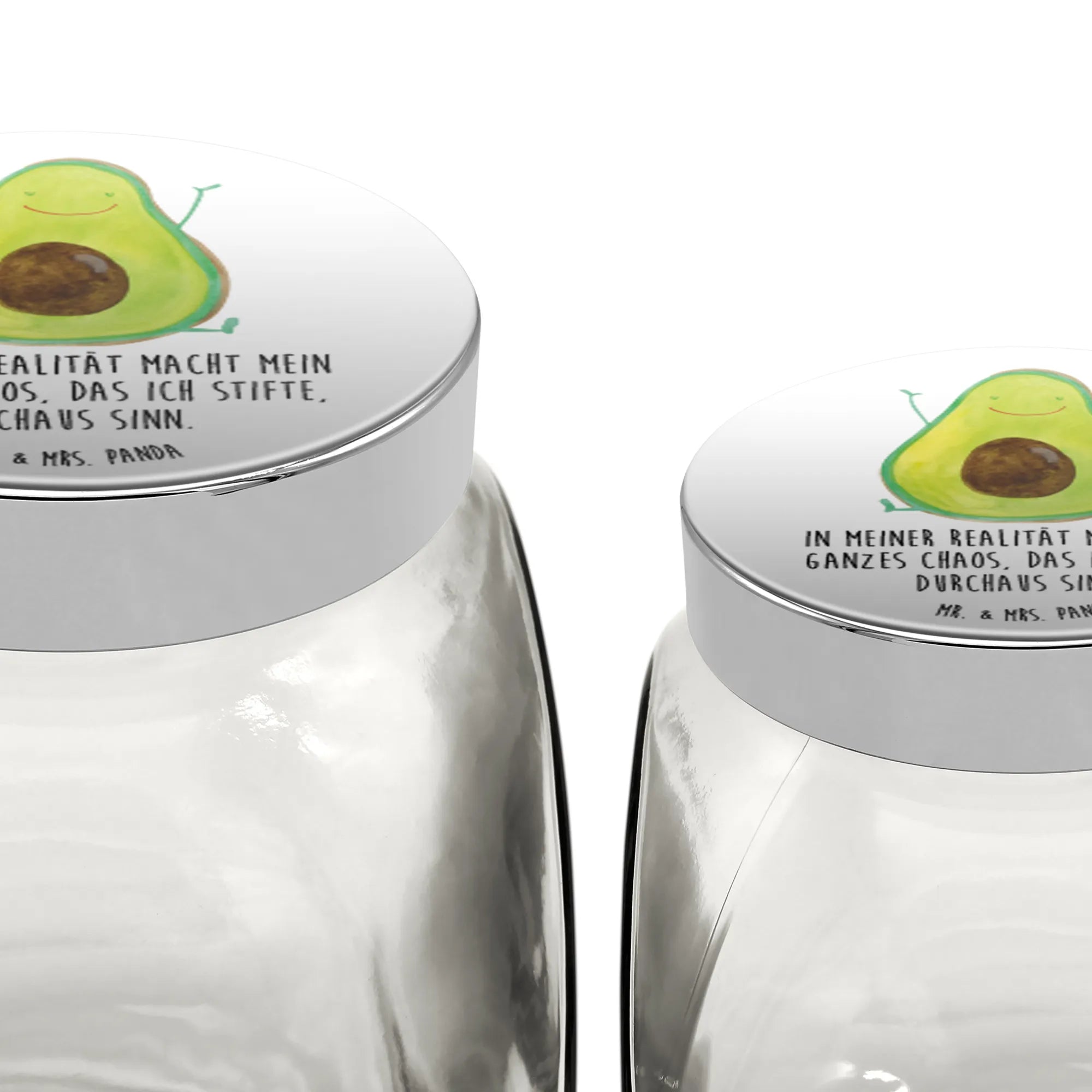 Mr. & Mrs. Panda Bonbonglas „Avocado Happy“ – ein fröhlicher Blickfang für Deine Küche und ein wunderschönes Geschenk für Avocado-Liebhaber. Die freudig hochreichende Avocado vor pastellgelbem Hintergrund und der charmante Spruch „In meiner Realität macht mein ganzes Chaos, das ich stifte, durchaus Sinn.“ machen dieses Vorratsglas zu einem kleinen Statement für Optimismus und guten Stil.