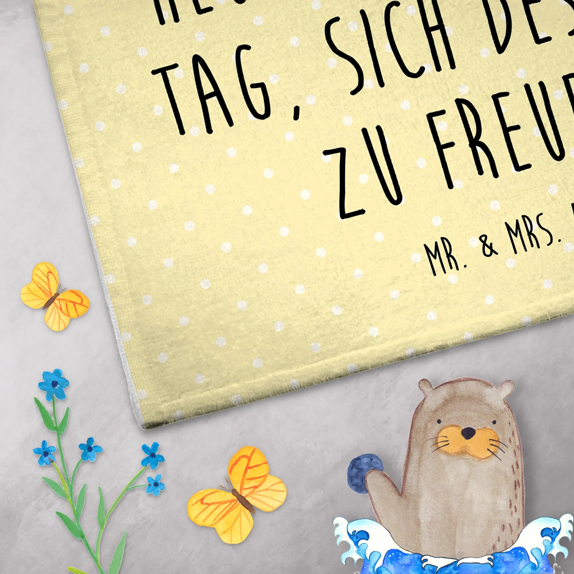 Außerdem ist das Handtuch pflegeleicht und kann bei 30 °C in der Maschine gewaschen werden – perfekt für Familien mit Kindern! Wenn du auf der Suche nach einem Geschenk bist, das gute Laune verbreitet und eine positive Botschaft vermittelt, dann ist dieses Handtuch genau das Richtige für dich. Der Slogan "Heute ist ein guter Tag, sich des Lebens zu freuen..." macht das Handtuch zu einem ganz besonderen Hingucker, der jeden Tag zum Feiern einlädt.