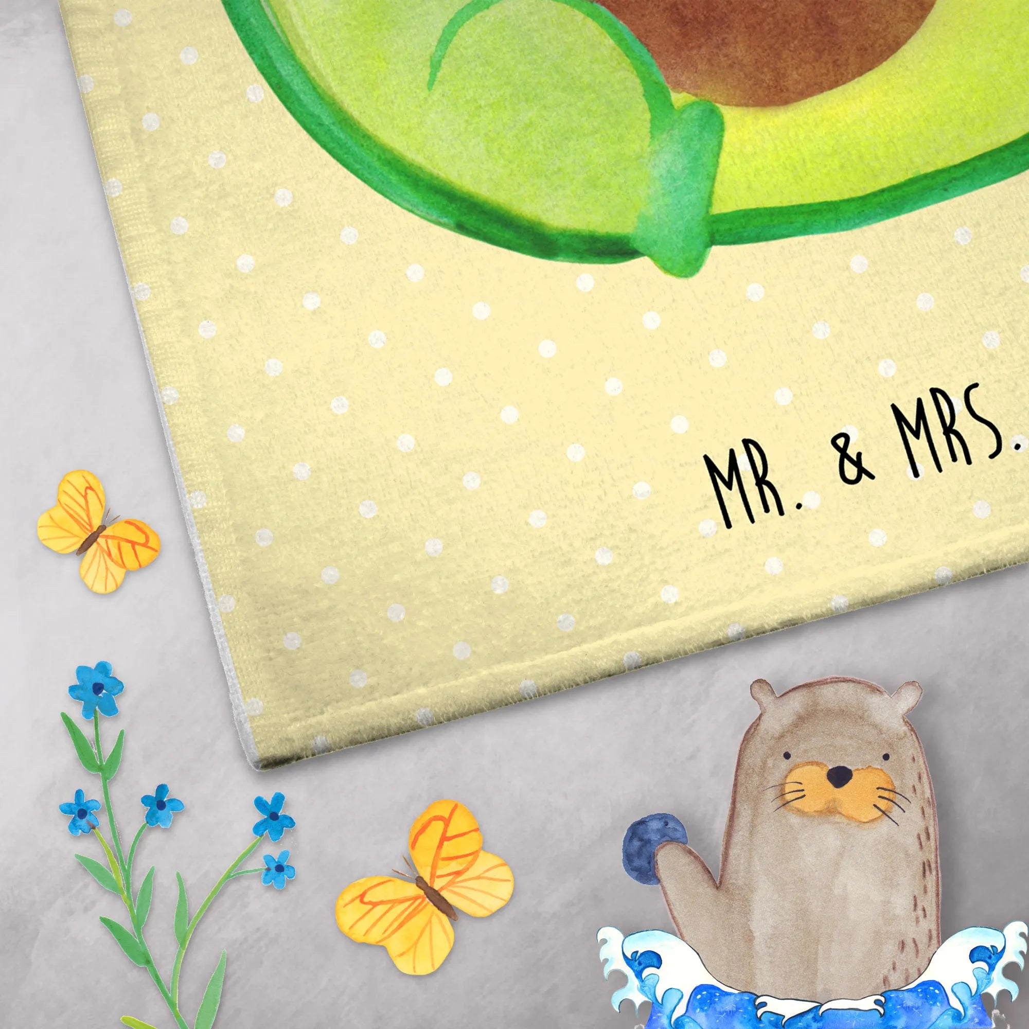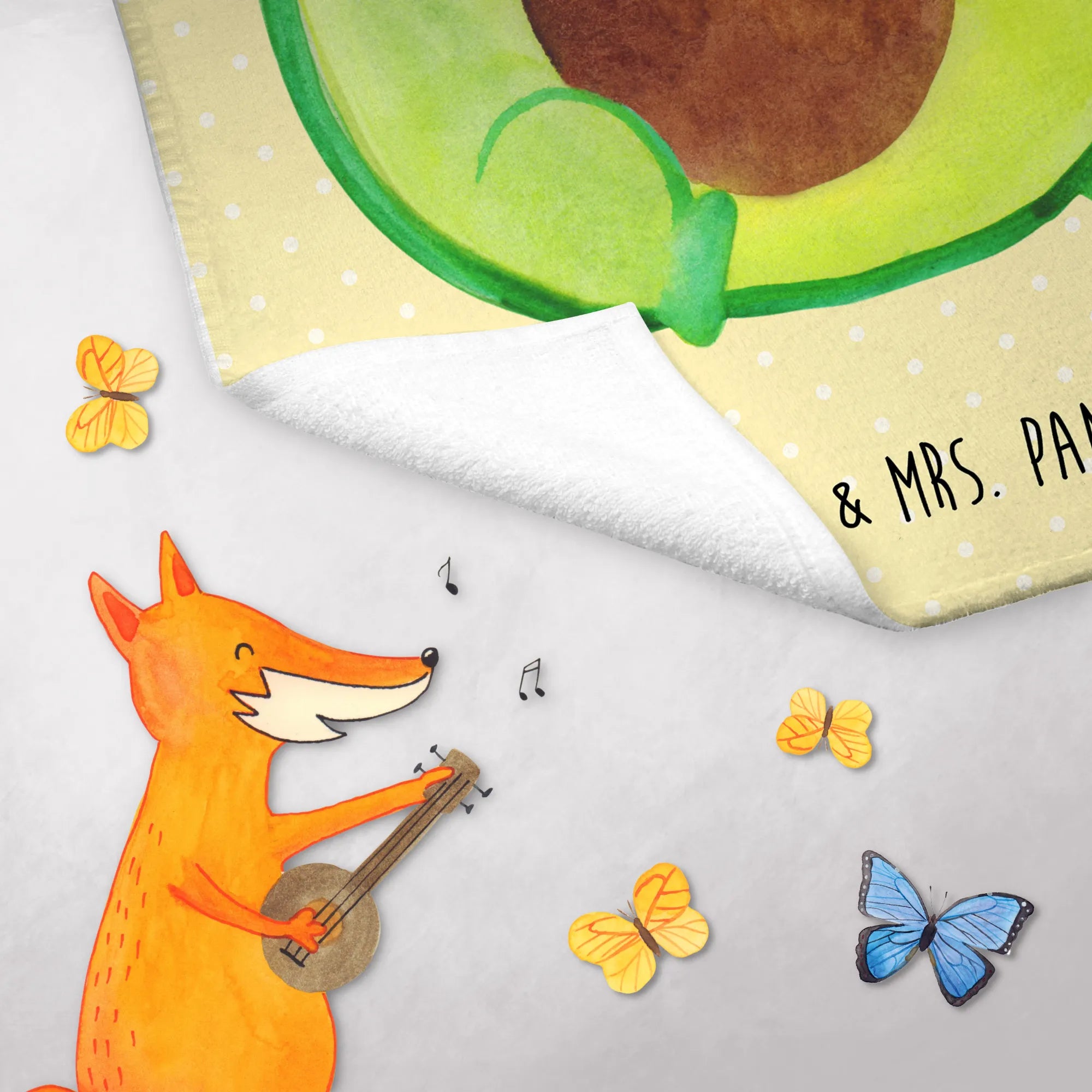 Das Motiv gehört zur liebevollen Avocado-Kollektion von Mr. & Mrs. Panda, die eine positive Botschaft vermittelt: "Heute ist ein guter Tag, sich des Lebens zu freuen...". Diese Botschaft erinnert uns daran, das Leben zu genießen, es bunt und fröhlich zu gestalten. Gerade zu Feierlichkeiten wie Geburtstagen, Partys oder anderen Festen ist dieses Gästehandtuch ein perfektes Geschenk. Es eignet sich hervorragend als Mitbringsel, um jemanden zu überraschen oder das eigene Bad aufzupeppen.