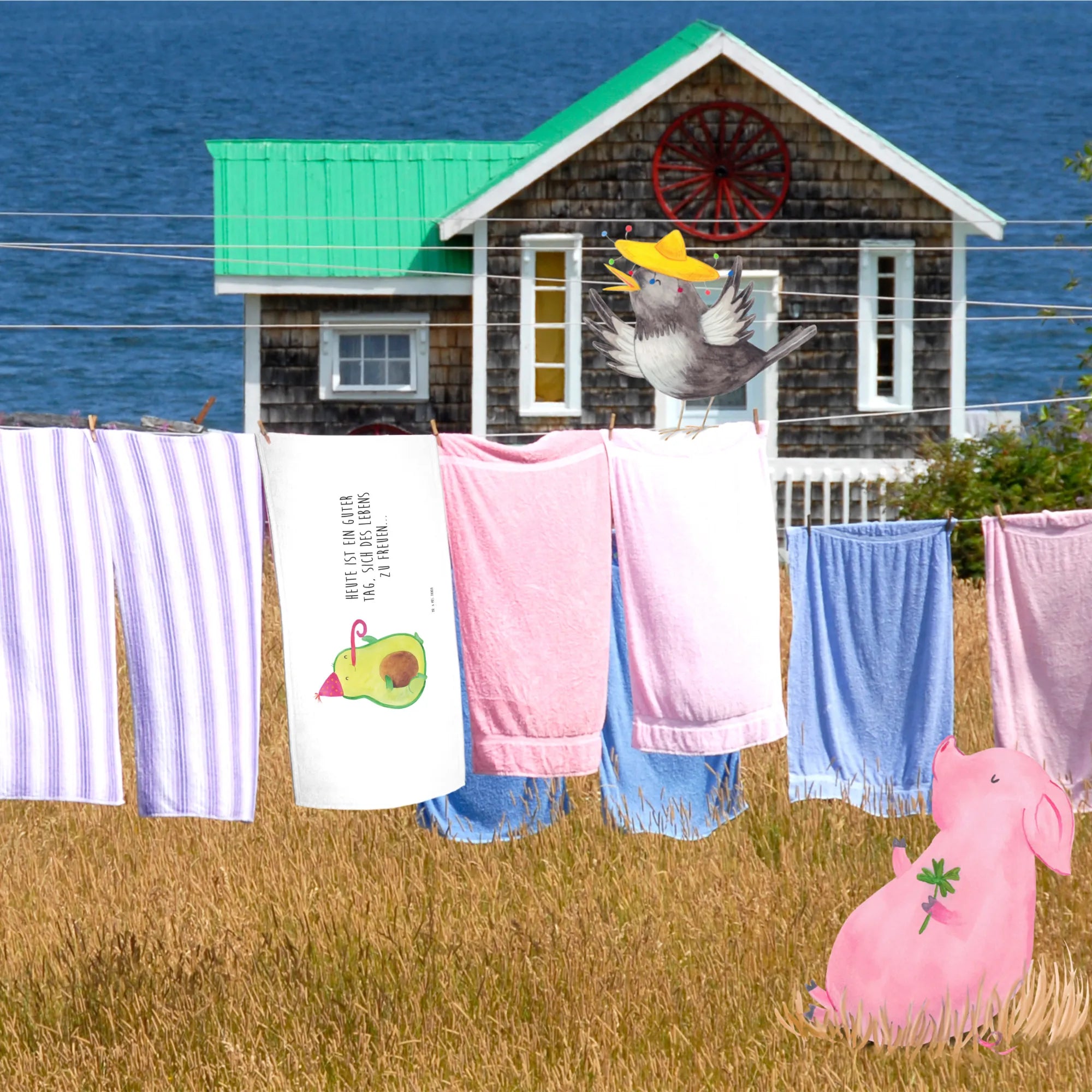 Das perfekte Gästehandtuch von Mr. & Mrs. Panda ist nicht nur ein praktisches Accessoire, sondern auch ein echter Hingucker! Mit dem herzlichen Motto "Heute ist ein guter Tag, sich des Lebens zu freuen..." und dem niedlichen Motiv der Avocado Partyhupe bringt es Gute Laune in jedes Zuhause. Egal ob für das eigene Badezimmer oder als Geschenk zu Anlässen wie Geburtstagsfeiern, Grillpartys oder als kleines Mitbringsel – dieses Handtuch sorgt immer für ein Lächeln.