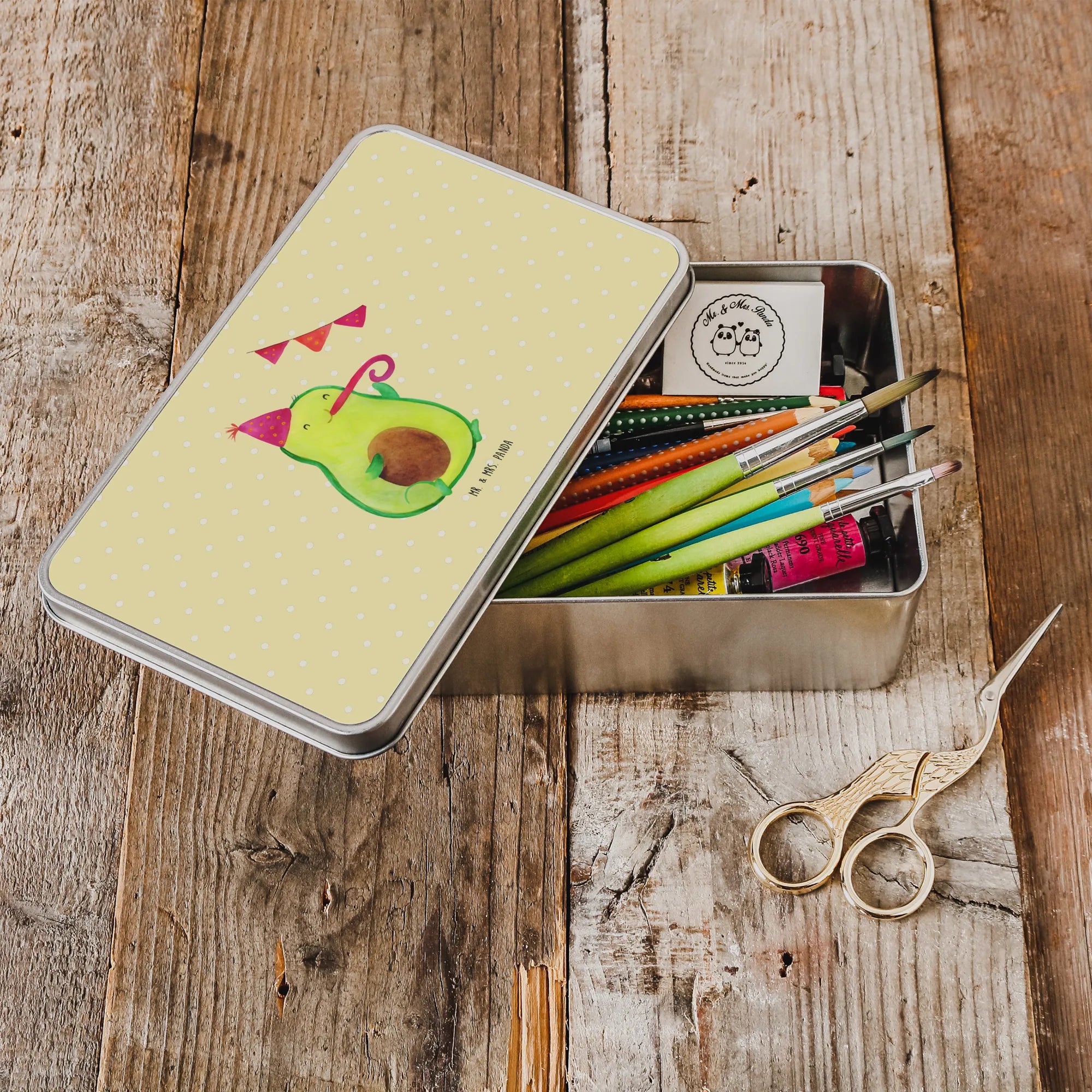 Entdecke die wundervolle Metalldose rechteckig "Avocado Party Time" von Mr. & Mrs. Panda! Diese wunderschöne Metalldose ist nicht nur ein echter Blickfang, sondern auch ideal für all deine kleinen Schätze. Die süße Avocado mit Partyhut und der Spruch "Party time!" zaubern sofort ein Lächeln auf dein Gesicht.