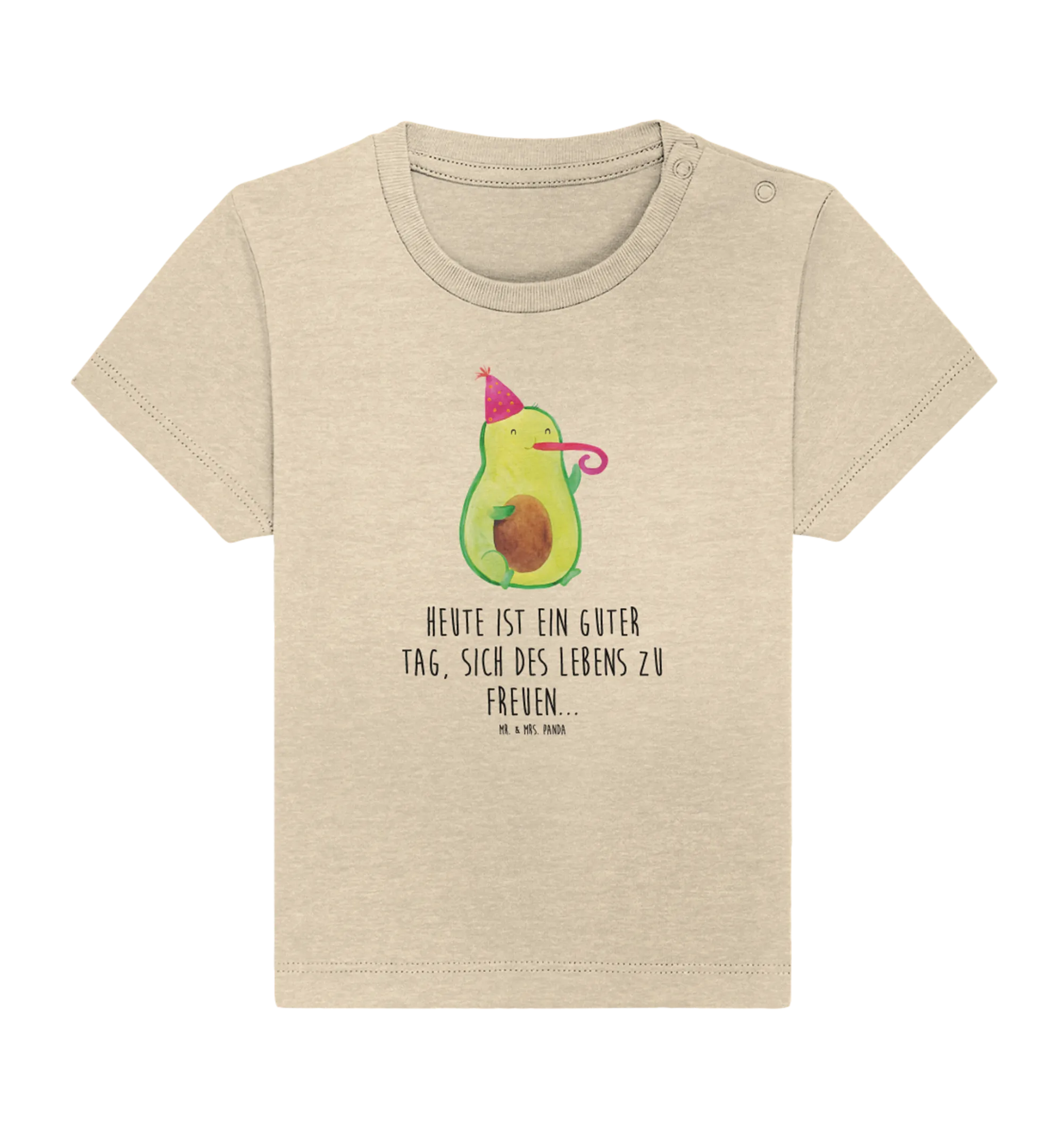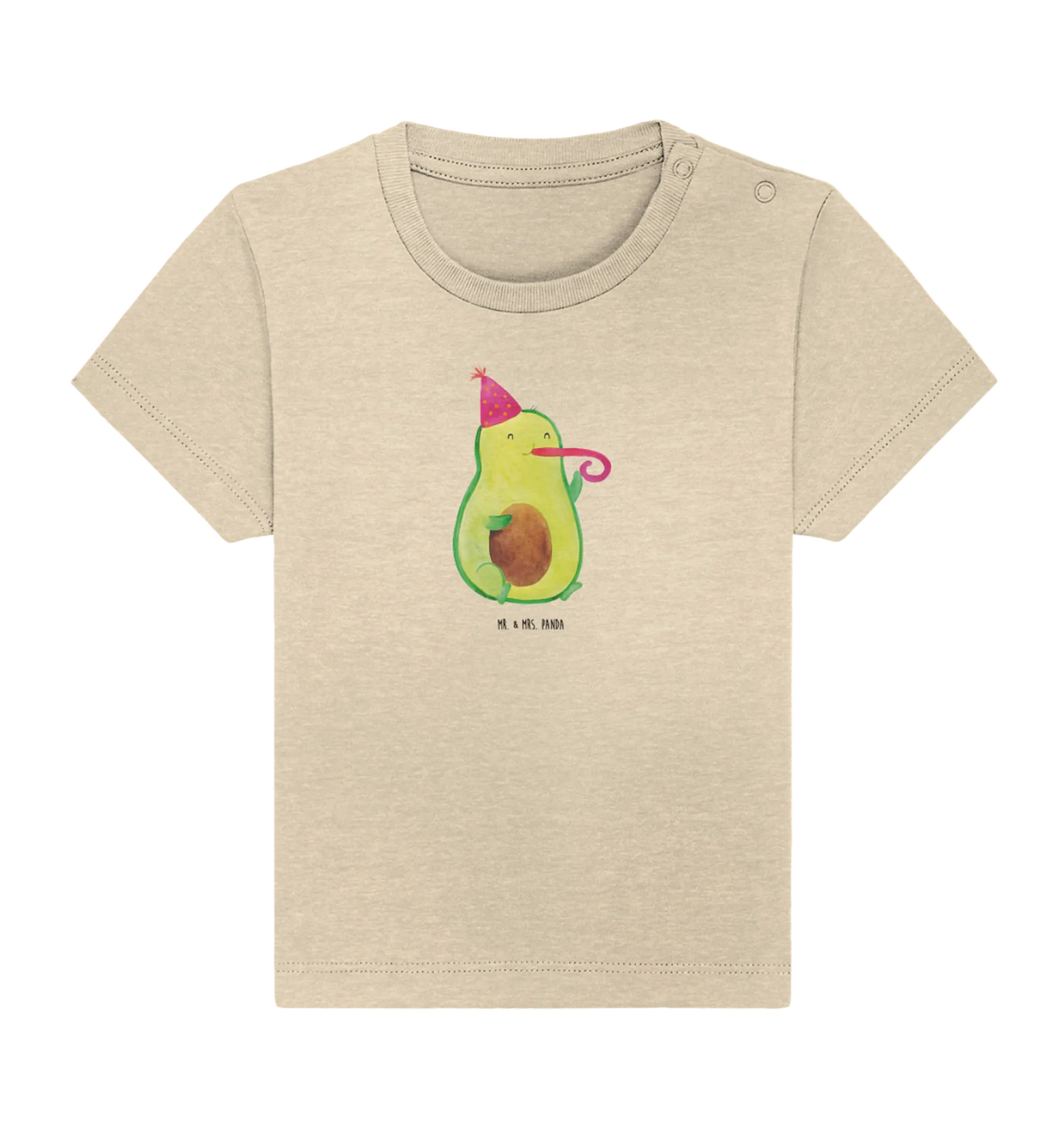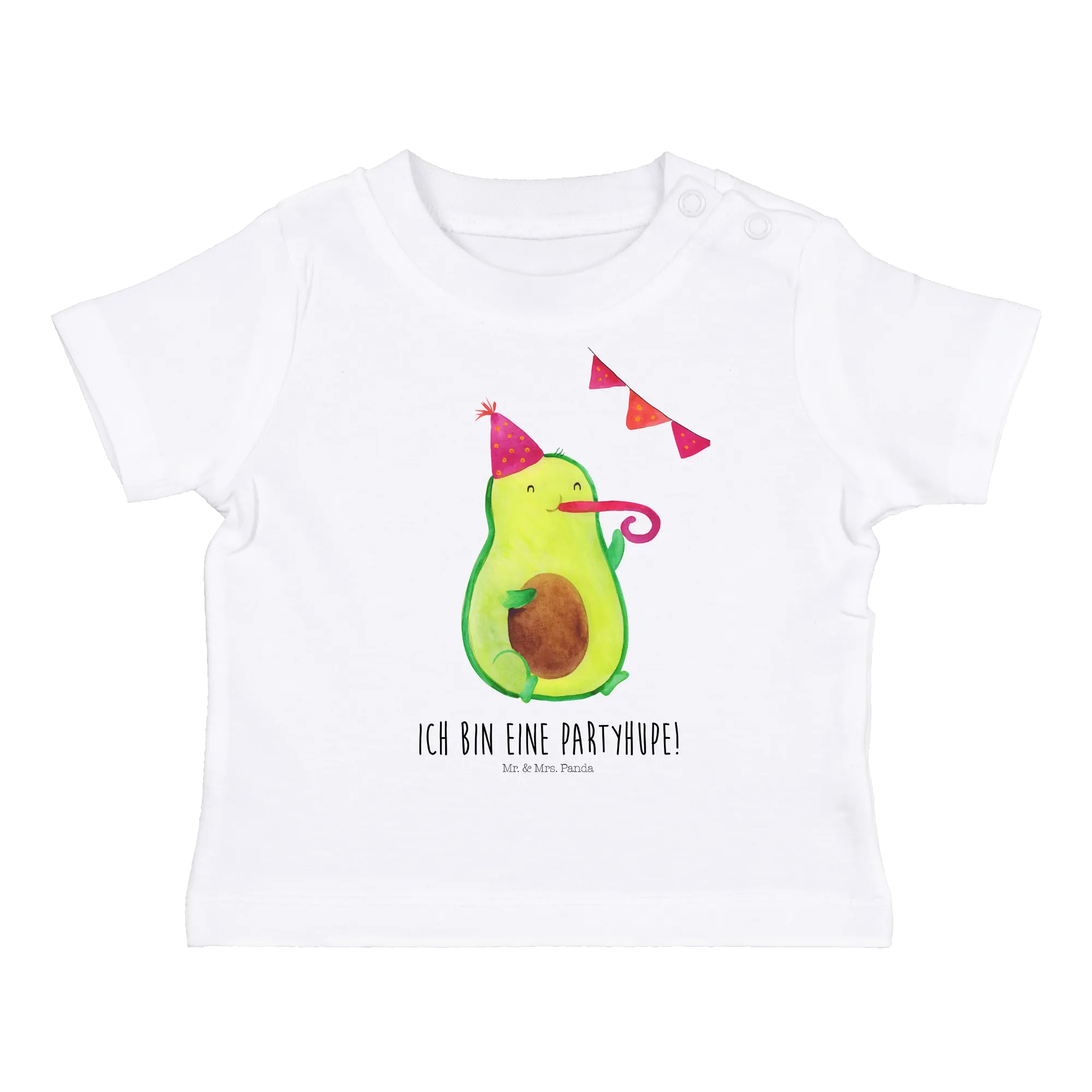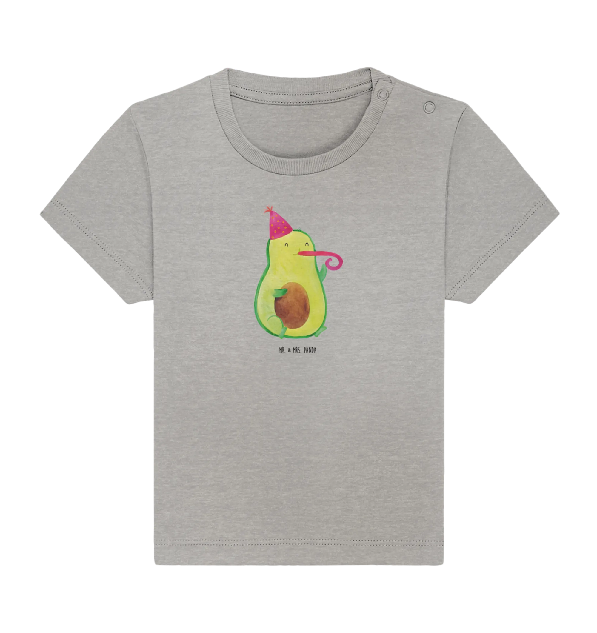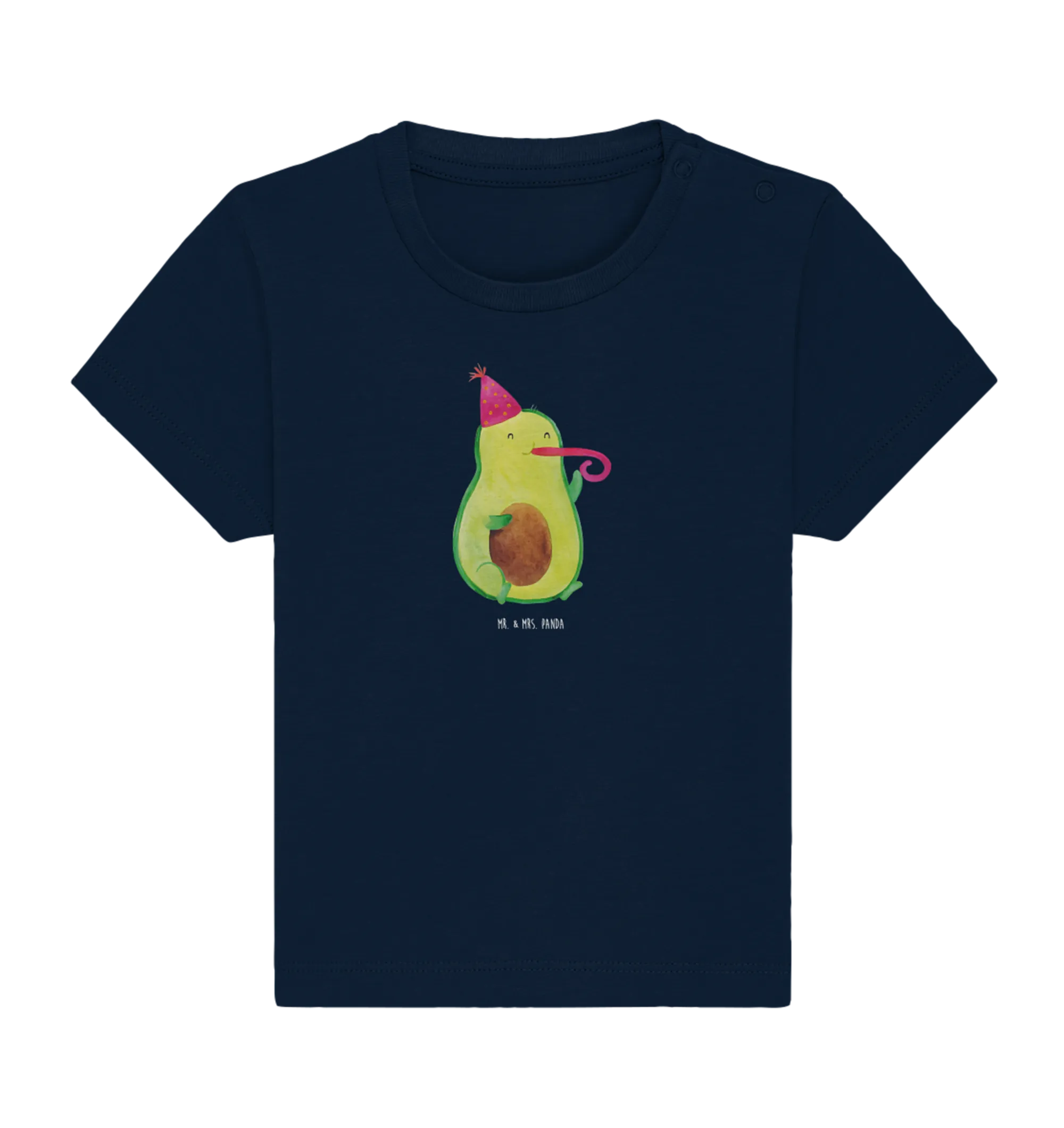 Das Organic Baby Shirt mit dem lustigen Motiv "Avocado Partyhupe" aus der Avocado Kollektion von Mr. & Mrs. Panda ist das perfekte Geschenk für kleine Geburtstagskinder und die, die gerne feiern!