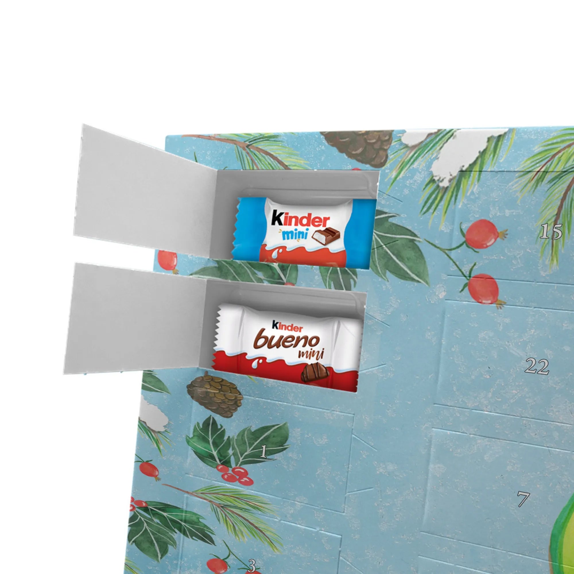 Feier die Vorfreude mit einem persönlichen Hingucker: unser Personalisierter Schoko Adventskalender von Mr. & Mrs. Panda. Dieser Kalender ist liebevoll mit wunderschönen Motiven & Sprüchen bedruckt und kann mit deinem Wunschnamen oder Wunschtext individualisiert werden – perfekt für eine persönliche Überraschung jeden Adventstag. Die brillante Druckqualität und die seidenmatte Oberflächenveredelung geben dem Kalender einen edlen Look, und die bedruckten Seitenflächen machen ihn rundum dekorativ. Besonders praktisch: der Kalender kann aufgehängt oder aufgestellt werden, je nachdem, wie du ihn präsentieren möchtest. Maße: 355 mm x 245 mm x 11 mm – ein ideales Format für dekorative Platzierung und genügend Raum für leckere Türchenüberraschungen. Gefüllt mit kinder® Schokolade: Adventskalender gefüllt mit kinder® Schokolade; Inhalt: kinder® Schoko-Bons, kinder® Bueno mini und kinder® Schokolade mini. Ob als Geschenk für Kinder, Partner oder beste Freunde – mit Mr. & Mrs. Panda verschenkst du nicht nur Süßes, sondern echte Vorfreude und liebevolle Gestaltung.