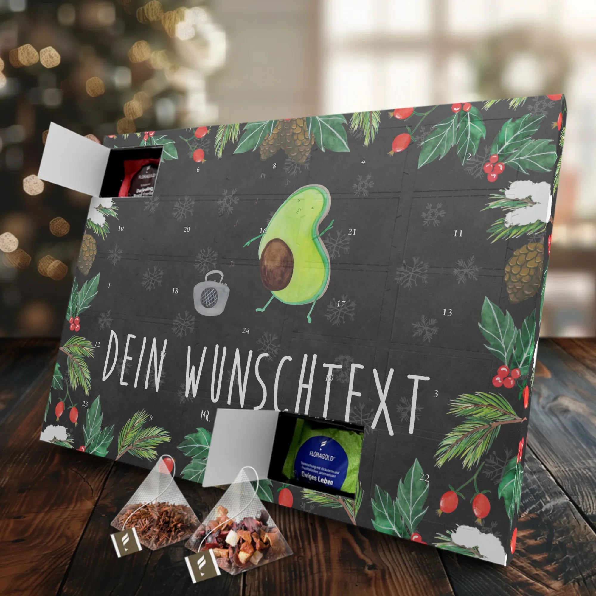 Personalisierter Tee Adventskalender Avocado Tanzen - Kreidetafel