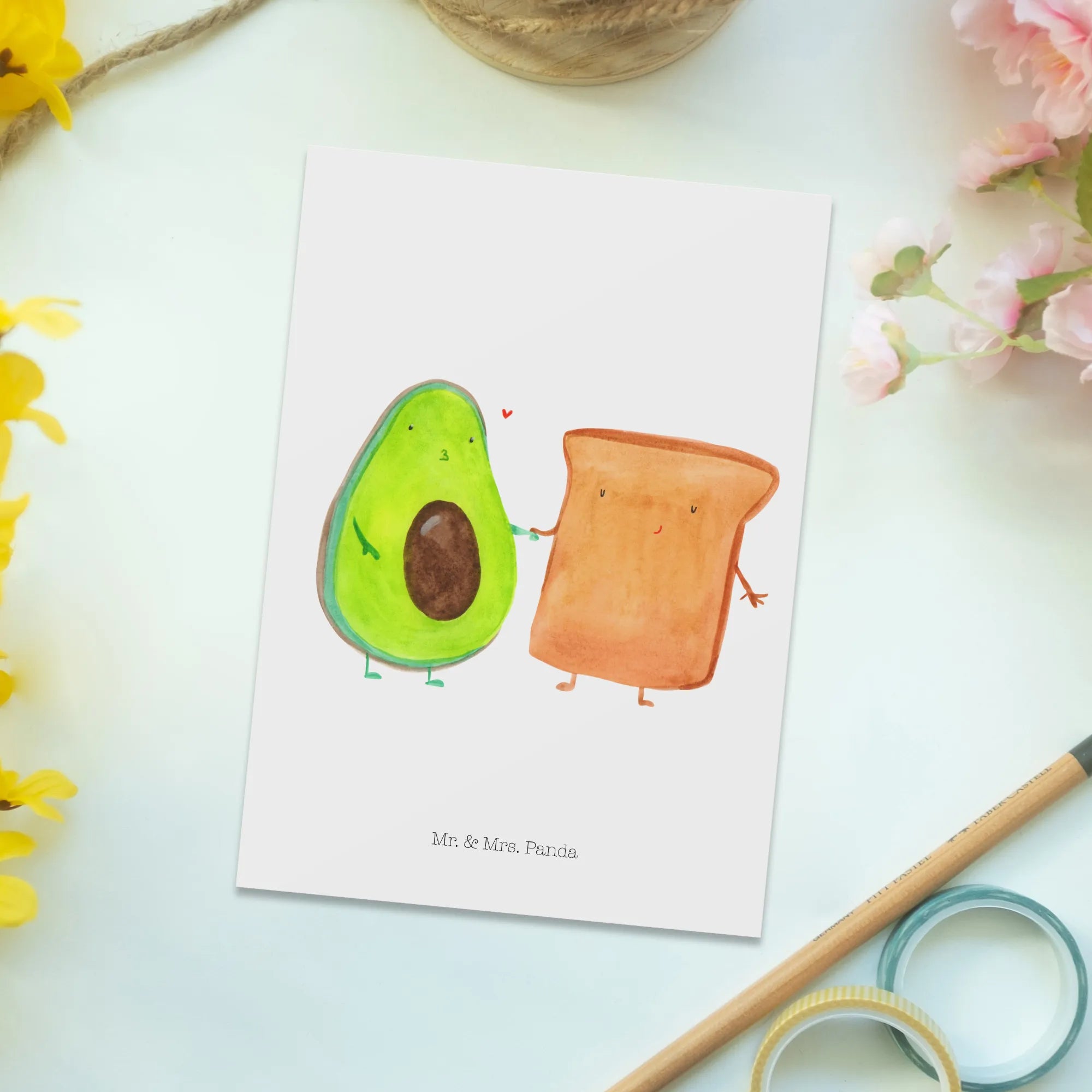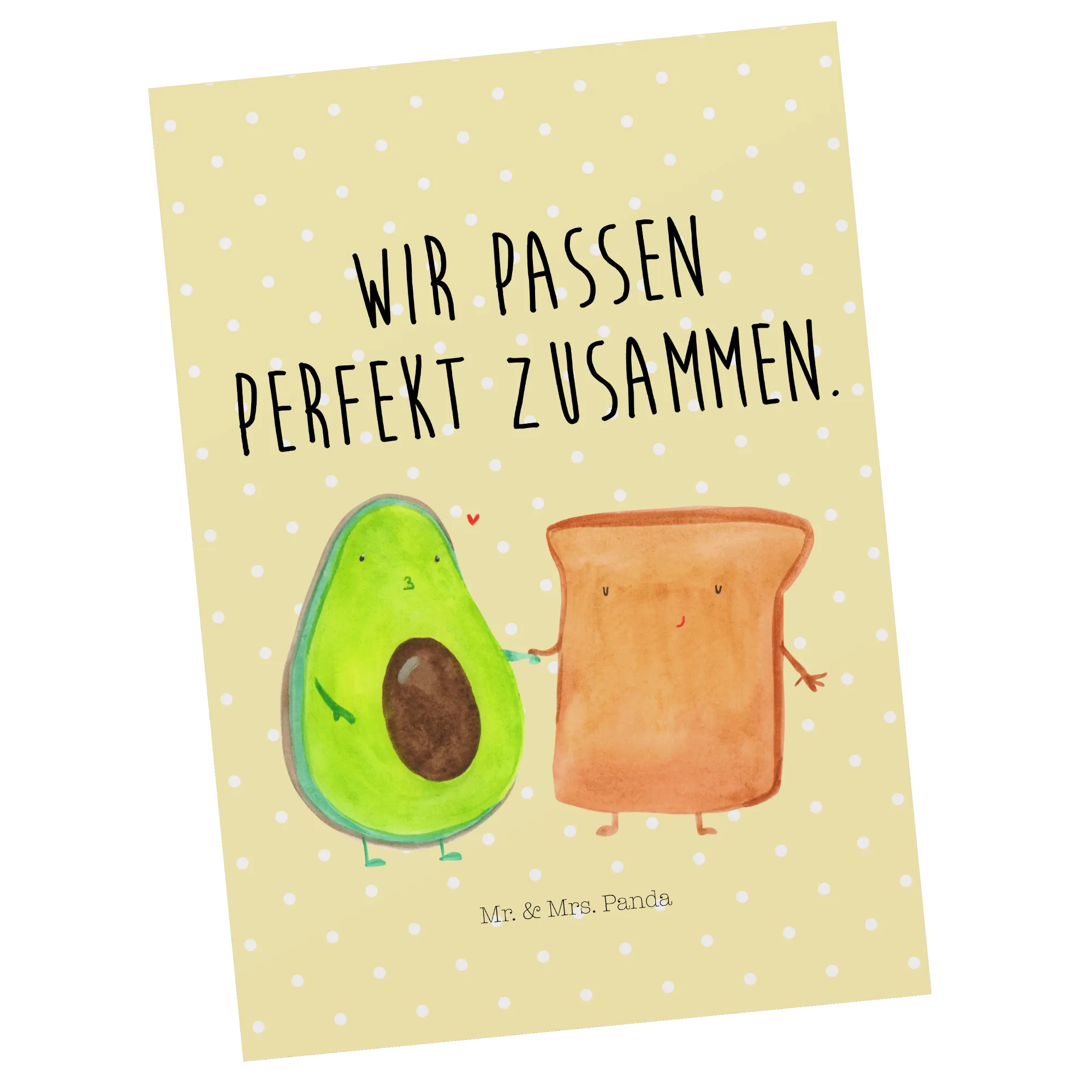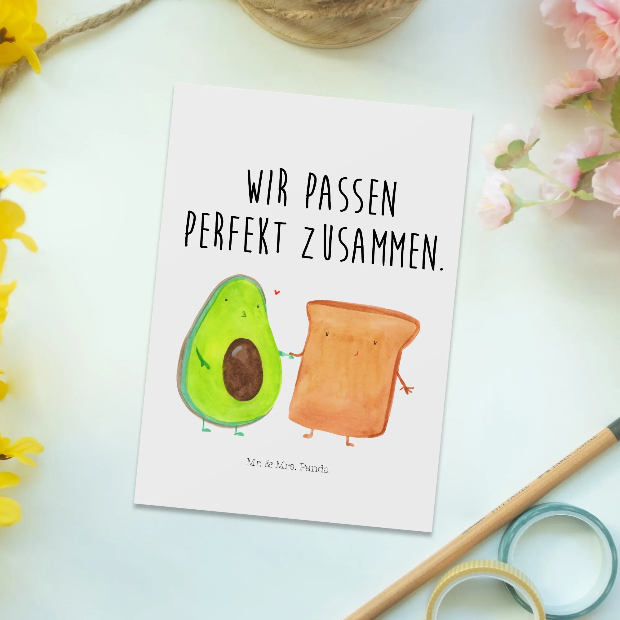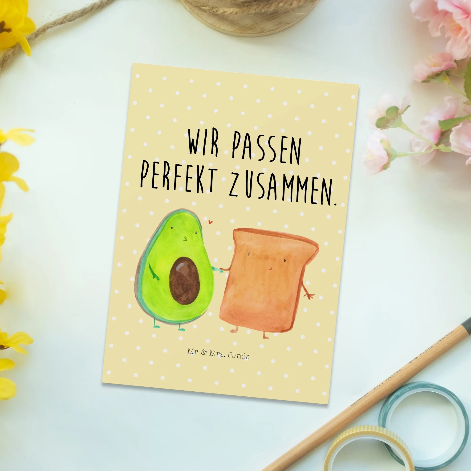 Diese bezaubernde Postkarte mit dem süßen Motiv Avocado + Toast von Mr. & Mrs. Panda ist das perfekte Geschenk für jeden Anlass! Ob du einem lieben Freund zu seinem Geburtstag gratulieren, deiner Freundin zur Verlobung gratulieren oder einfach nur "Danke" sagen möchtest – mit dieser Karte liegst du garantiert richtig. Die niedliche Avocado und der grinsende Toast, die sich verliebt an den Händen halten, bringen nicht nur ein Lächeln auf die Lippen, sondern zaubern auch sofort gute Laune!