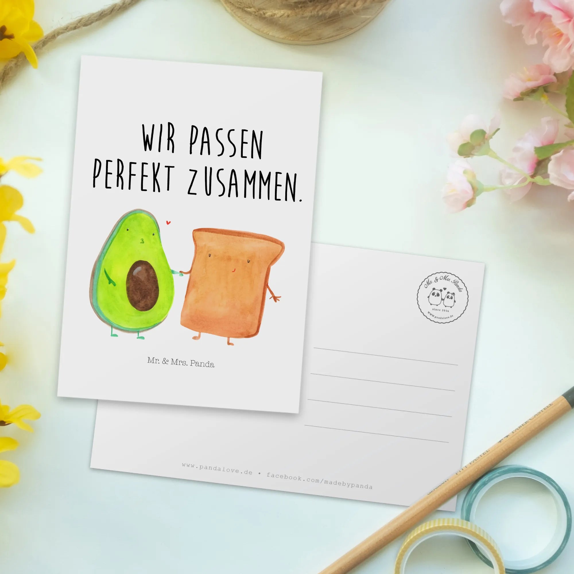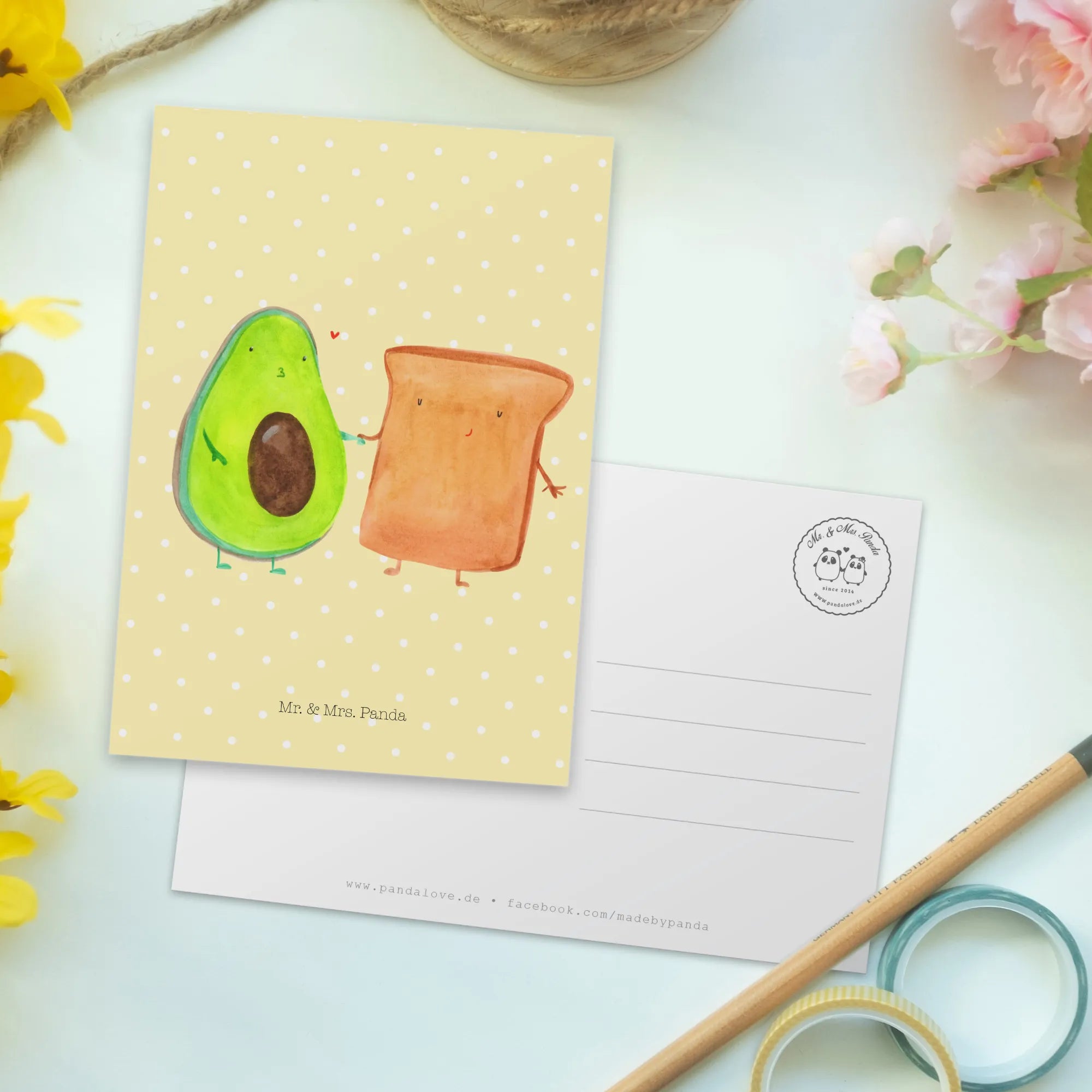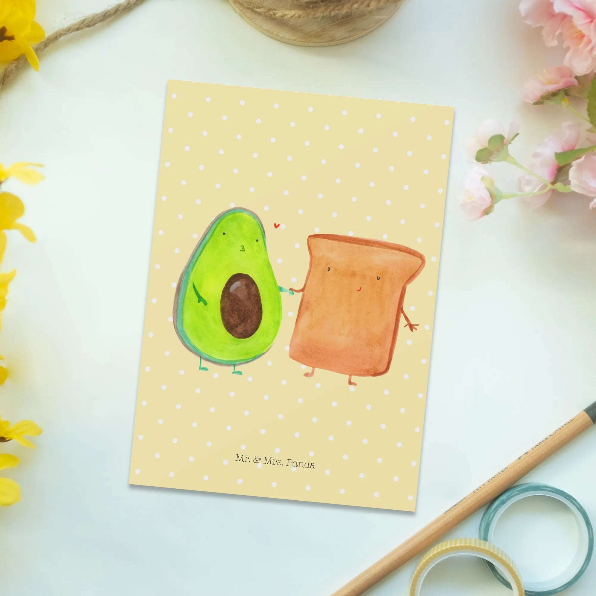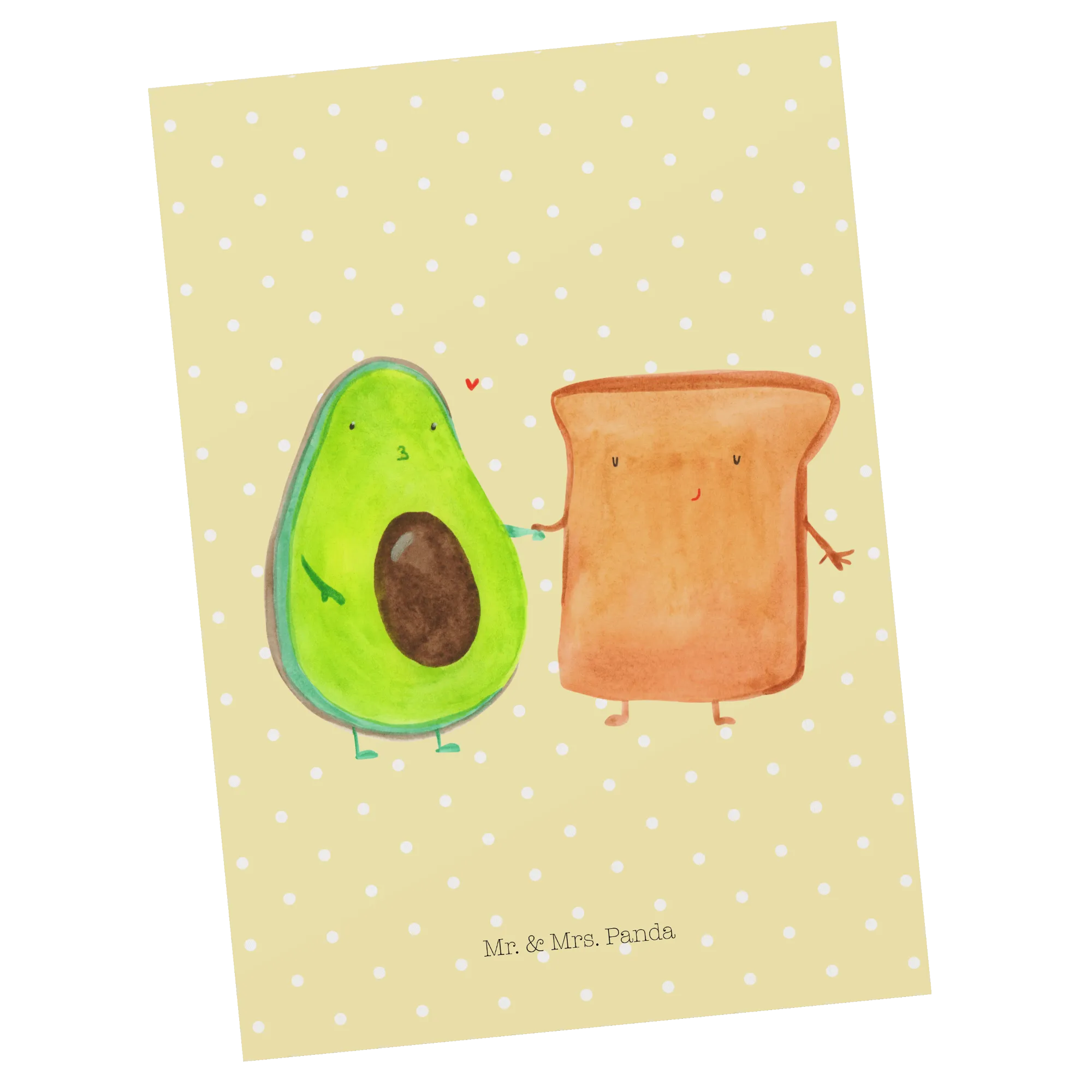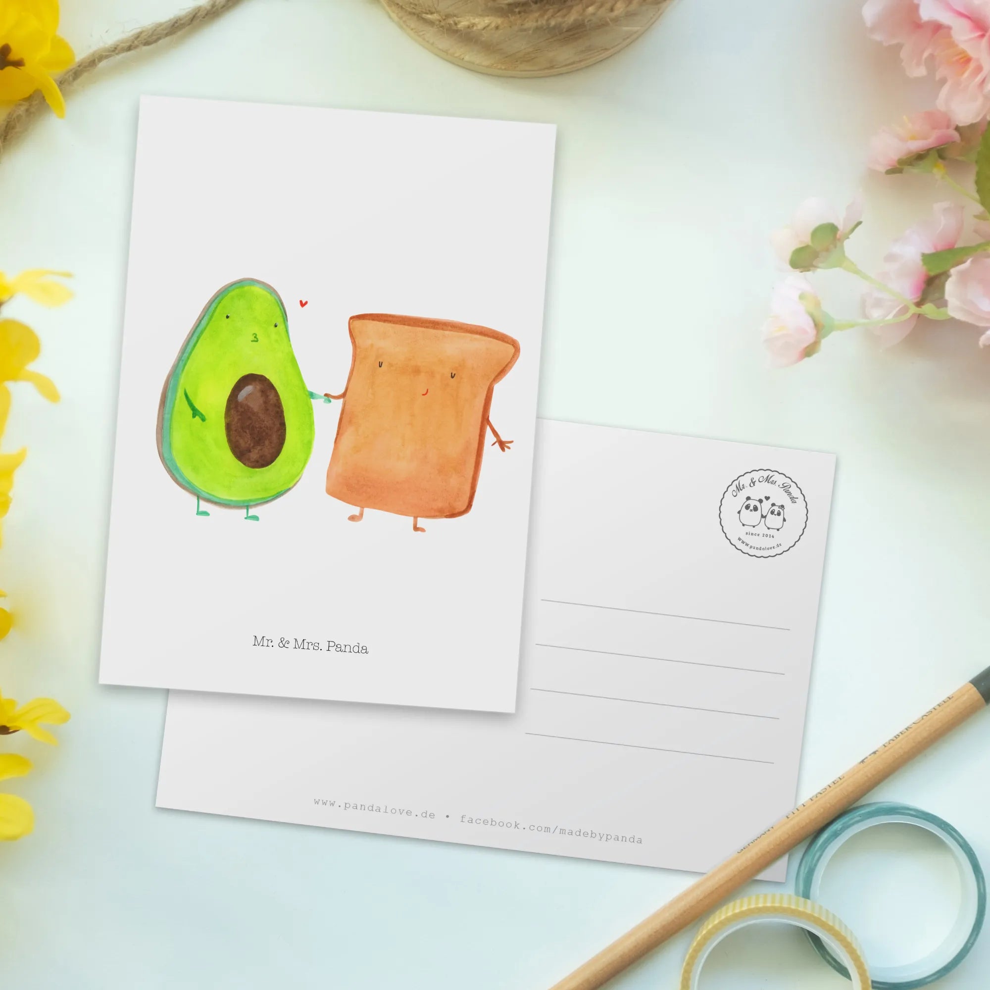 Diese bezaubernde Postkarte mit dem süßen Motiv Avocado + Toast von Mr. & Mrs. Panda ist das perfekte Geschenk für jeden Anlass! Ob du einem lieben Freund zu seinem Geburtstag gratulieren, deiner Freundin zur Verlobung gratulieren oder einfach nur "Danke" sagen möchtest – mit dieser Karte liegst du garantiert richtig. Die niedliche Avocado und der grinsende Toast, die sich verliebt an den Händen halten, bringen nicht nur ein Lächeln auf die Lippen, sondern zaubern auch sofort gute Laune!