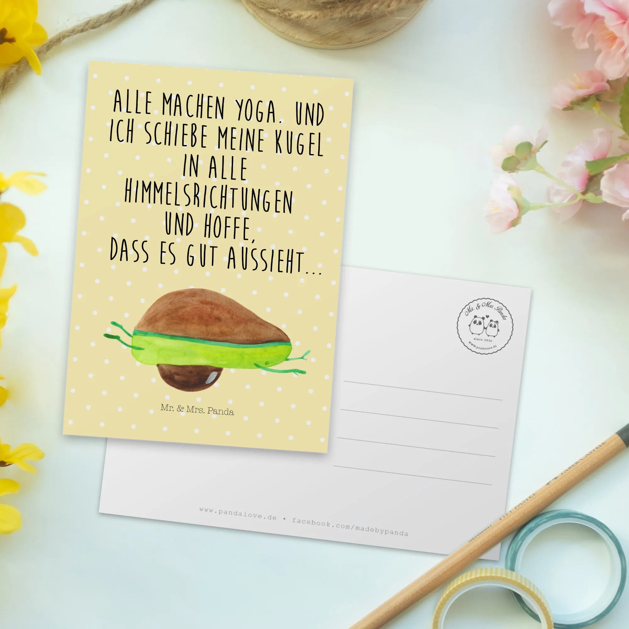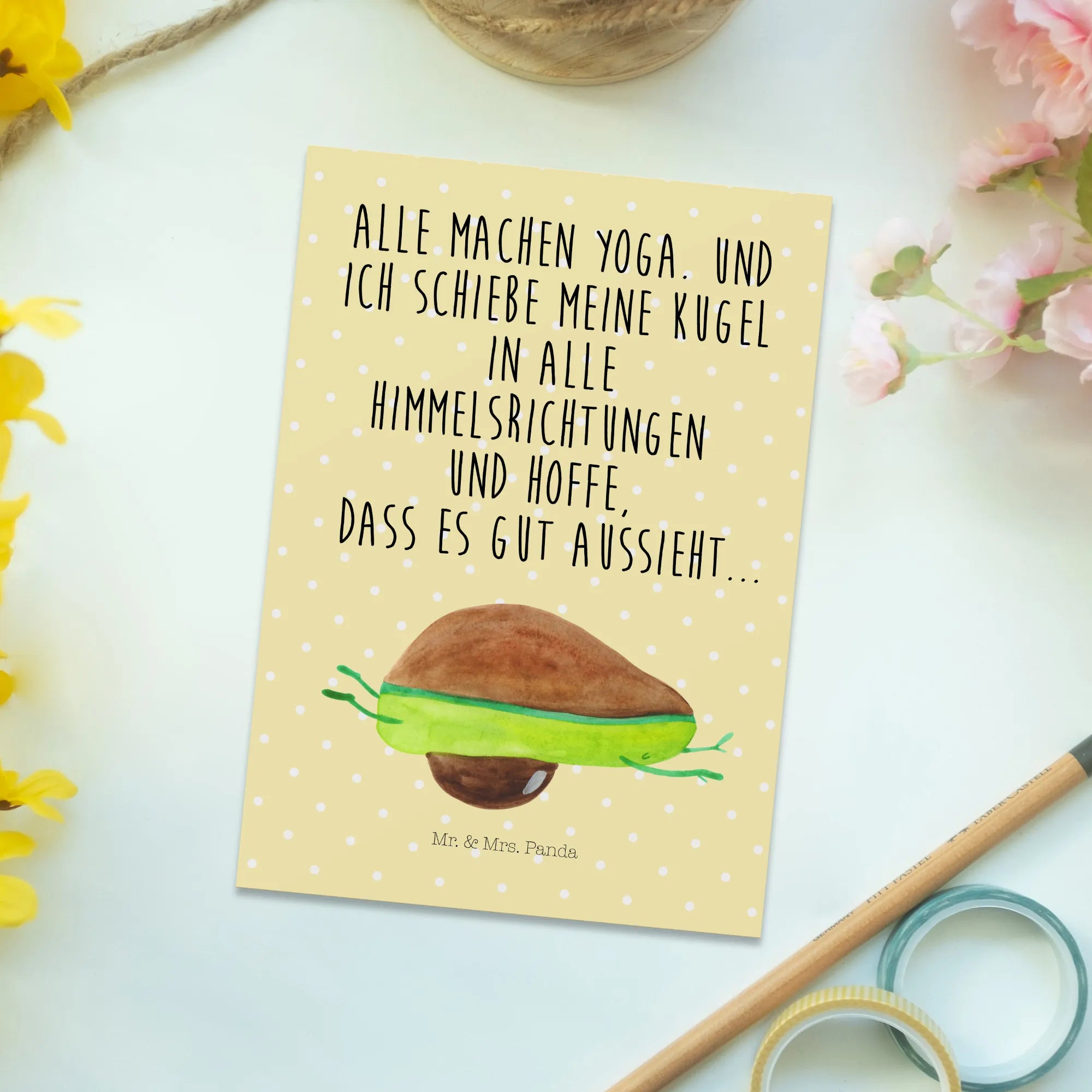 Du suchst nach der perfekten Grußkarte, die nicht nur hübsch aussieht, sondern auch eine liebevolle Botschaft übermittelt? Unsere Postkarte mit dem süßen Avocado Yoga Motiv ist genau das richtige Geschenk für alle, die eine Vorliebe für Veganes, Gesundes und gleichzeitig Humorvolles haben! Diese einzigartige Postkarte von Mr. & Mrs. Panda zeigt eine tollpatschige Avocado, die versucht, Yoga zu machen – und das mit einem charmanten Spruch: "Alle machen Yoga. Und ich schiebe meine Kugel in alle Himmelsrichtungen und hoffe, dass es gut aussieht…".