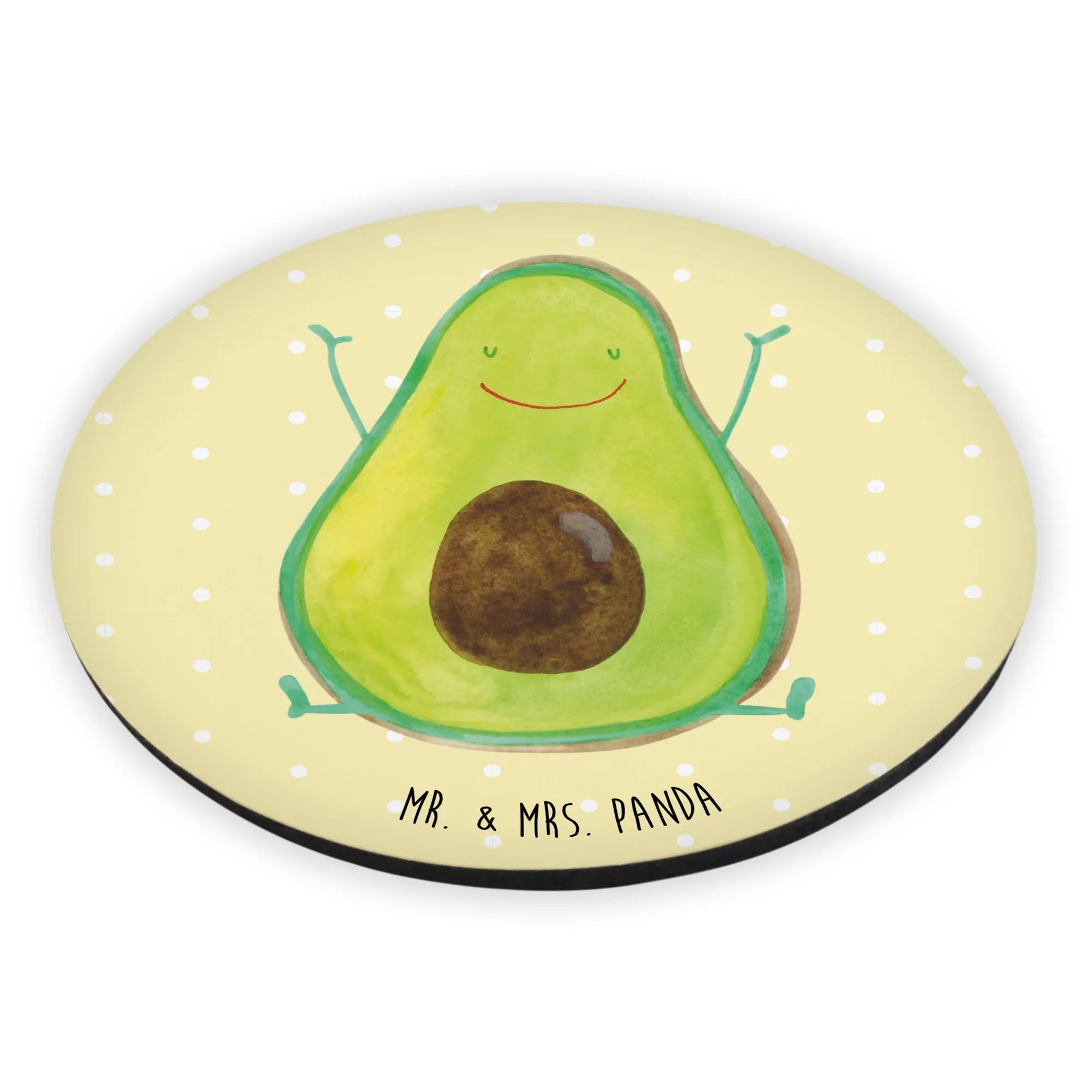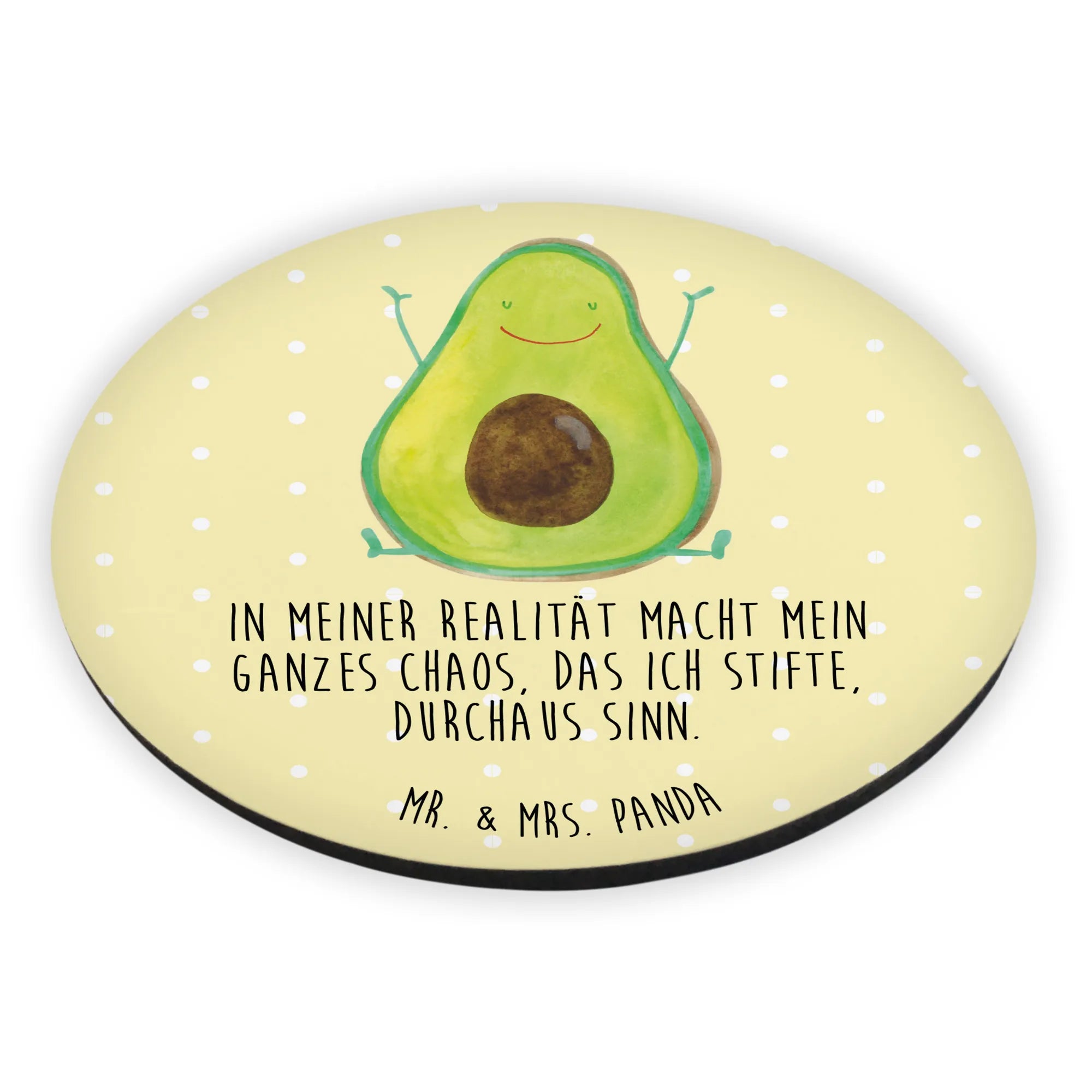 Rund Magnet Avocado Happy - mit Spruch - Gelb Pastell