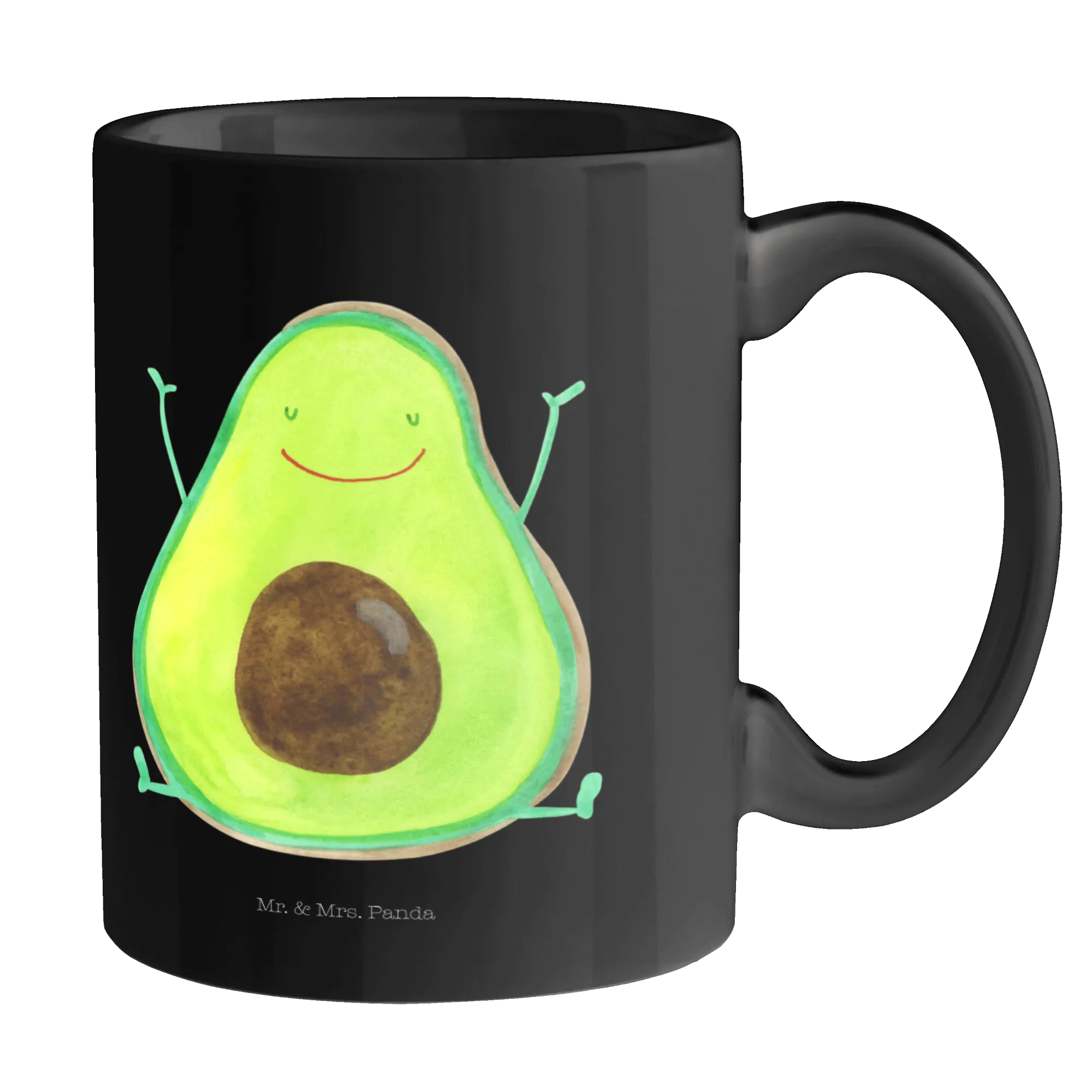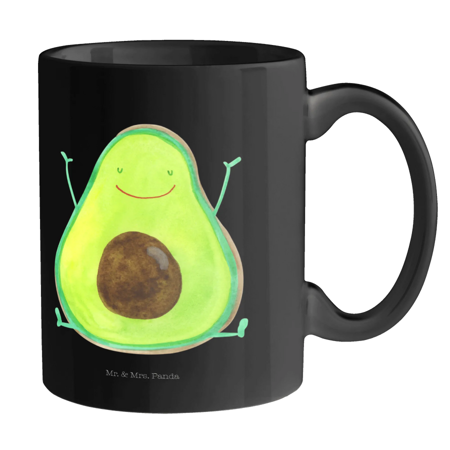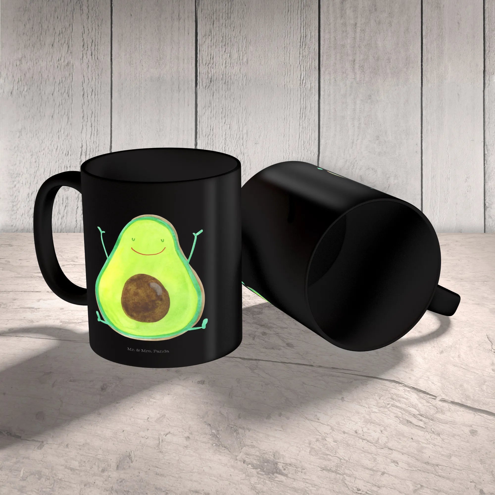 Tasse Avocado Glücklich - ohne Spruch - Keramik Schwarz - Schwarz