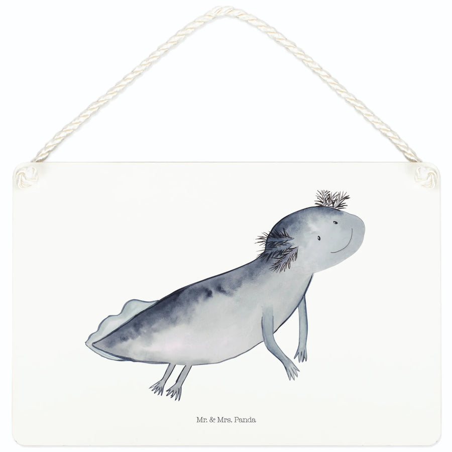 Das Deko Schild "Axolotl schwimmt" von Mr. & Mrs. Panda ist der perfekte Begleiter für all jene, die ein wenig Lebensfreude und Fröhlichkeit in ihr Zuhause bringen möchten.