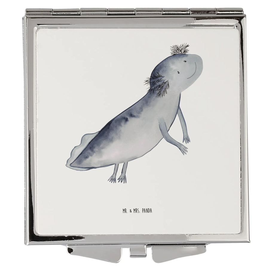 Handtaschenspiegel quadratisch Axolotl schwimmt - ohne Spruch - Weiß