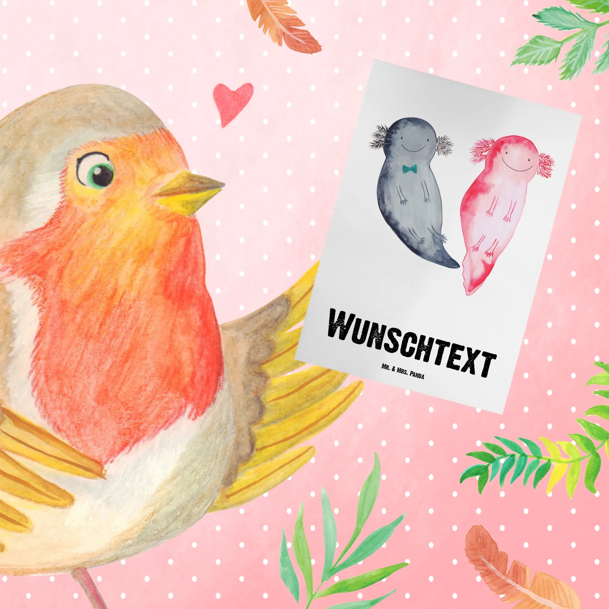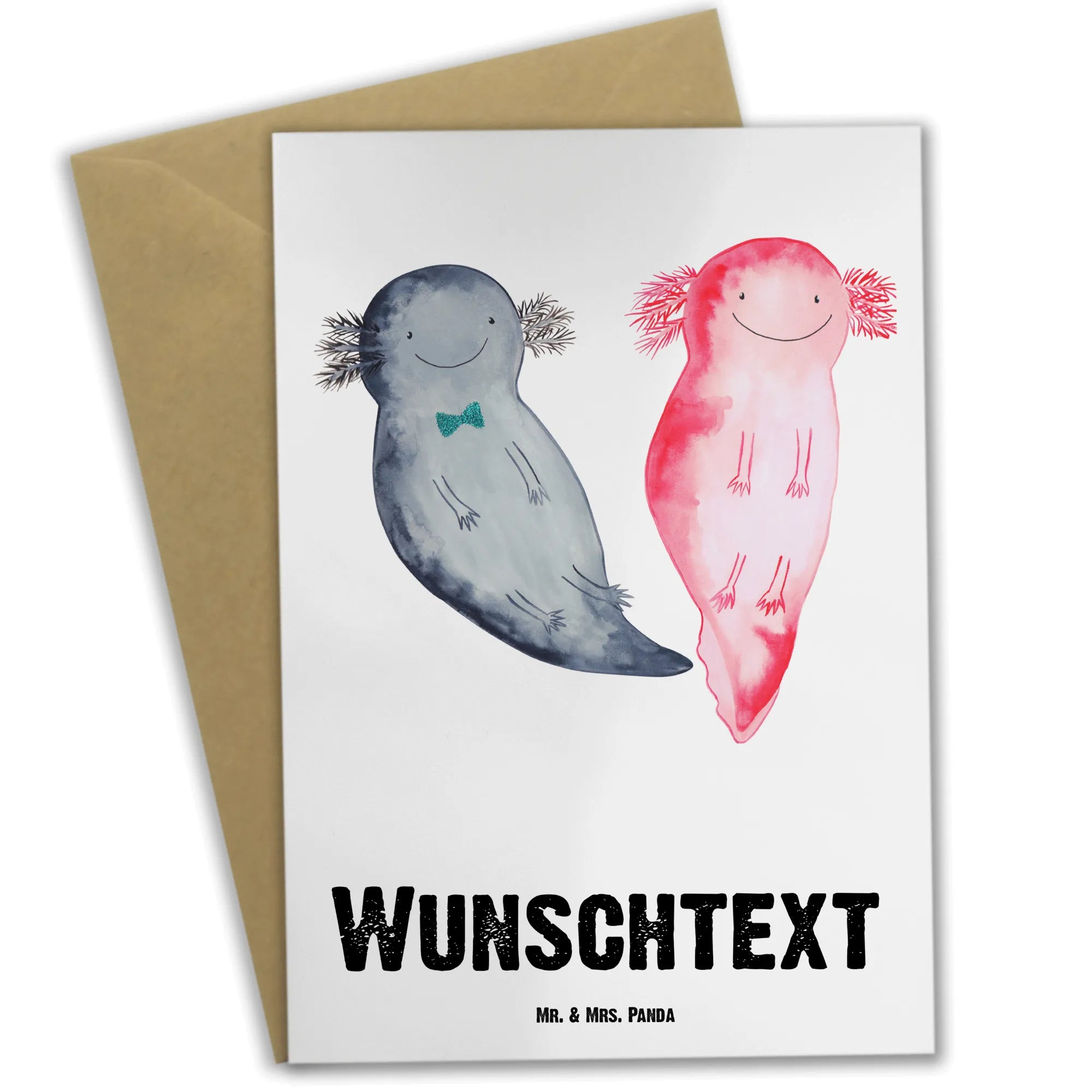 Entdecke die wunderbare Welt der personalisierten Grußkarten von Mr. & Mrs. Panda mit dem bezaubernden Motiv Axolotl Axel+Lotte! Diese herzliche und einzigartige Grußkarte ist perfekt für all jene, die ihren Liebsten eine persönliche Freude bereiten möchten. Egal, ob zum Geburtstag, Valentinstag, Jahrestag oder einfach nur als liebevolle Überraschung für einen Freund – diese Karte bringt ein Lächeln auf jedes Gesicht!