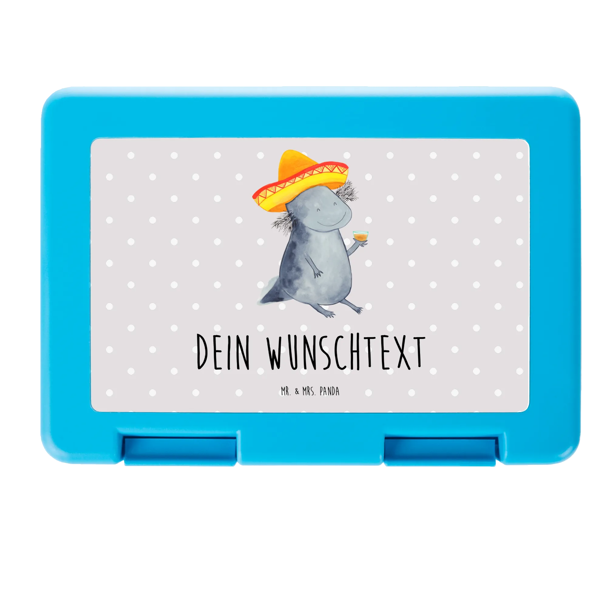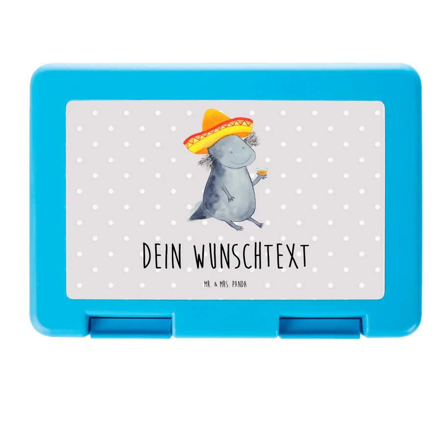 Die personalisierte Brotdose Axolotl Tequila von Mr. & Mrs. Panda ist nicht nur ein praktischer Begleiter für die Schule oder das Büro, sondern auch ein echter Hingucker! Mit ihrem fröhlichen Axolotl-Motiv, auf dem ein niedlicher Axolotl mit einem Sombrero und einem Tequila-Glas zu sehen ist, bringt sie ein Stückchen Mexiko in deinen Alltag. Der Spruch „Wenn das Leben dir saures gibt, frag nach Salz & Tequila.“ sorgt zusätzlich für ein Lächeln und motiviert dazu, das Leben in vollen Zügen zu genießen.