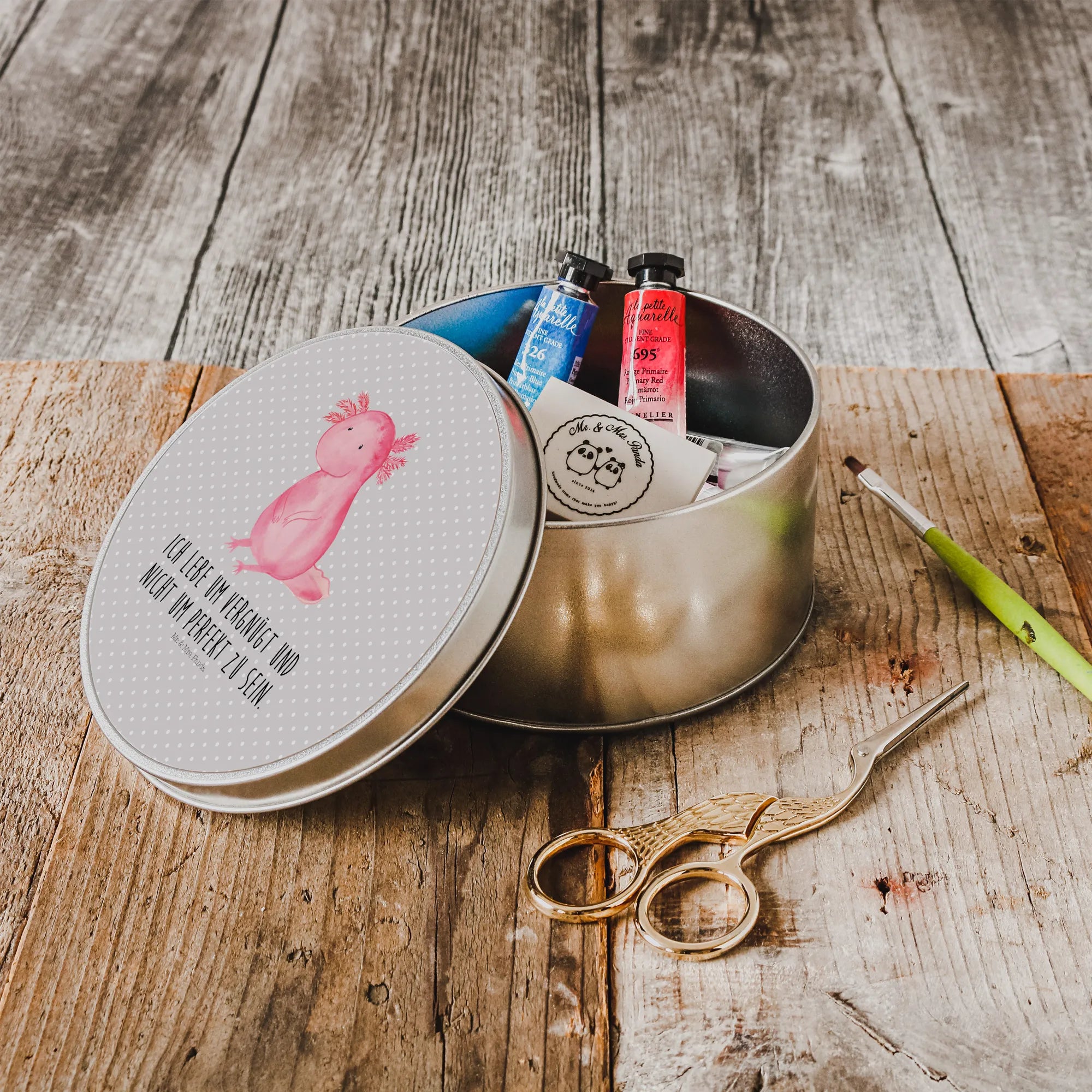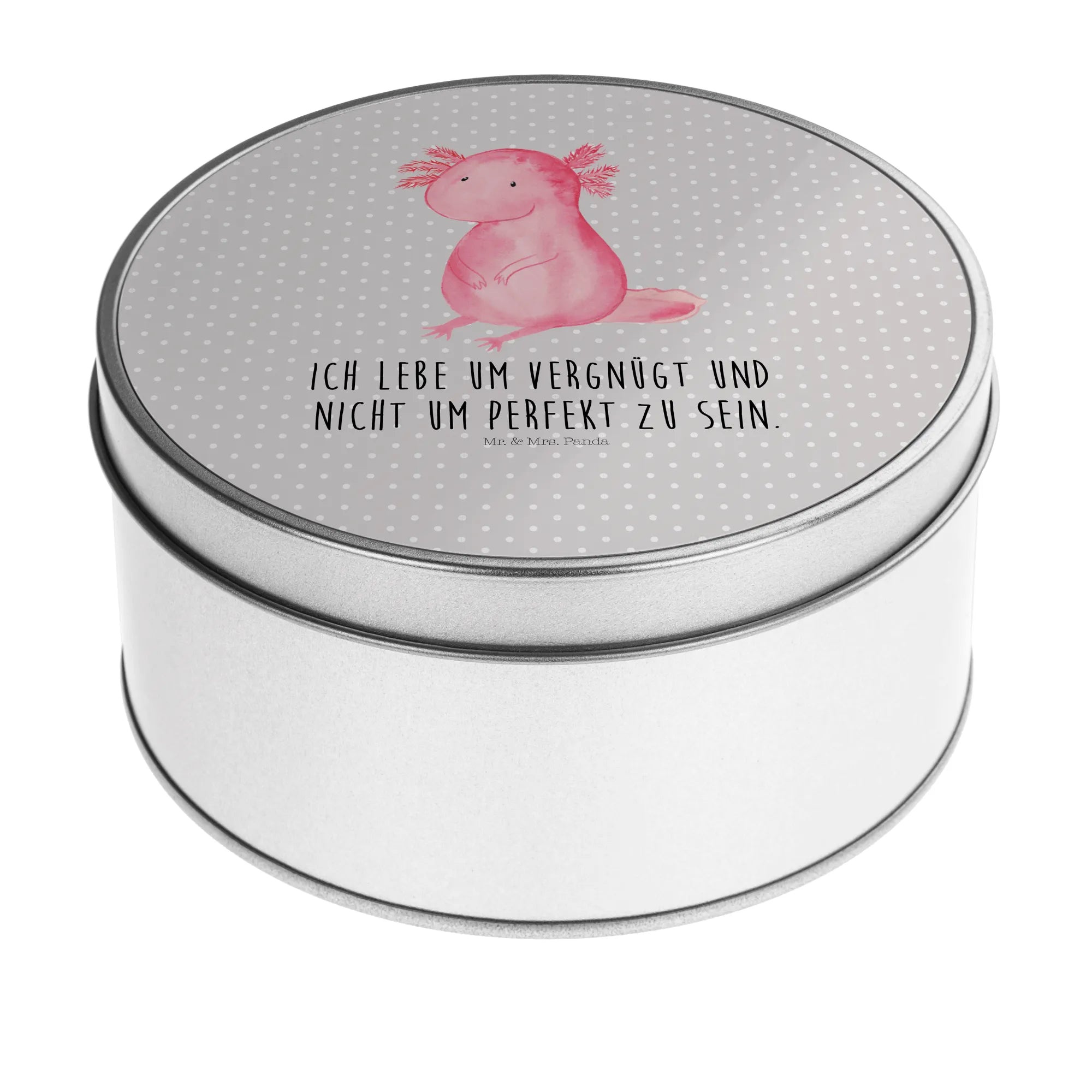 Die runde Blechdose mit dem fröhlichen Axolotl-Motiv von Mr. & Mrs. Panda ist das perfekte Geschenk für jeden, der Spaß an einer liebevollen Aufbewahrung hat.