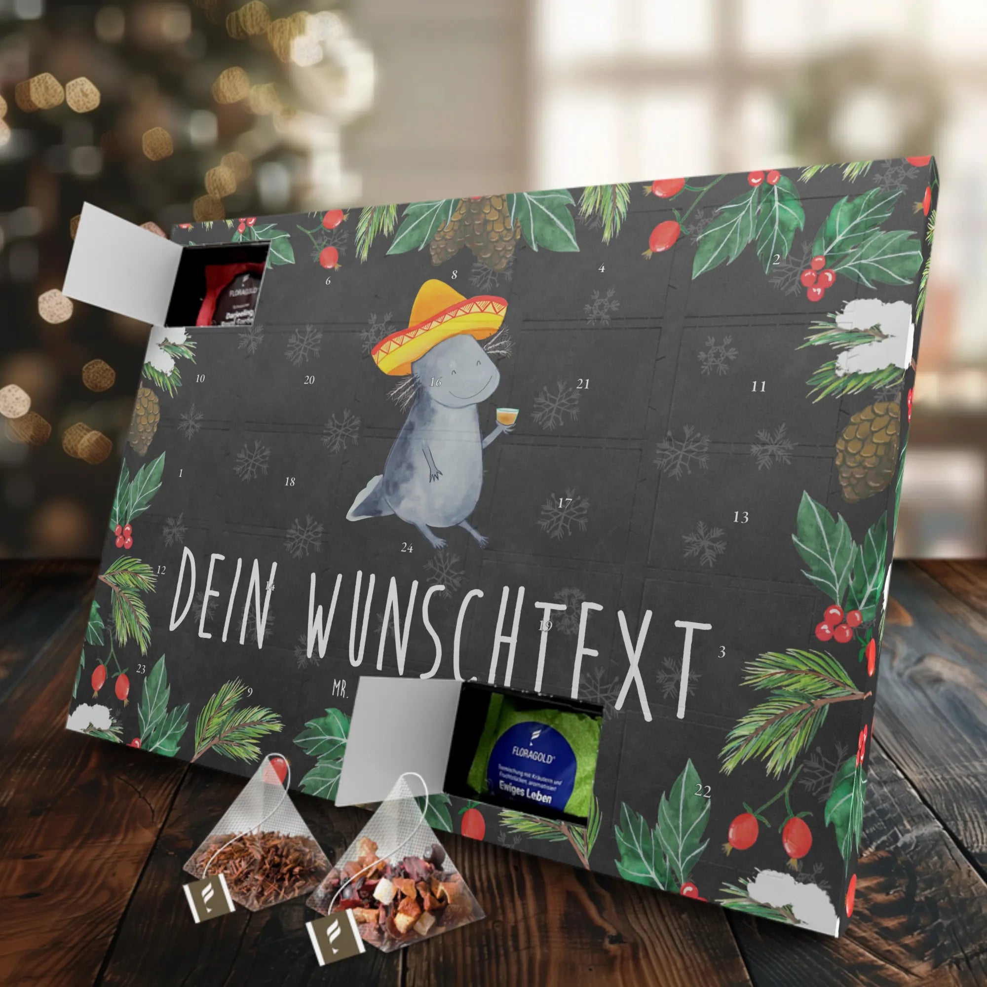 Personalisierter Tee Adventskalender Axolotl Tequila - Kreidetafel