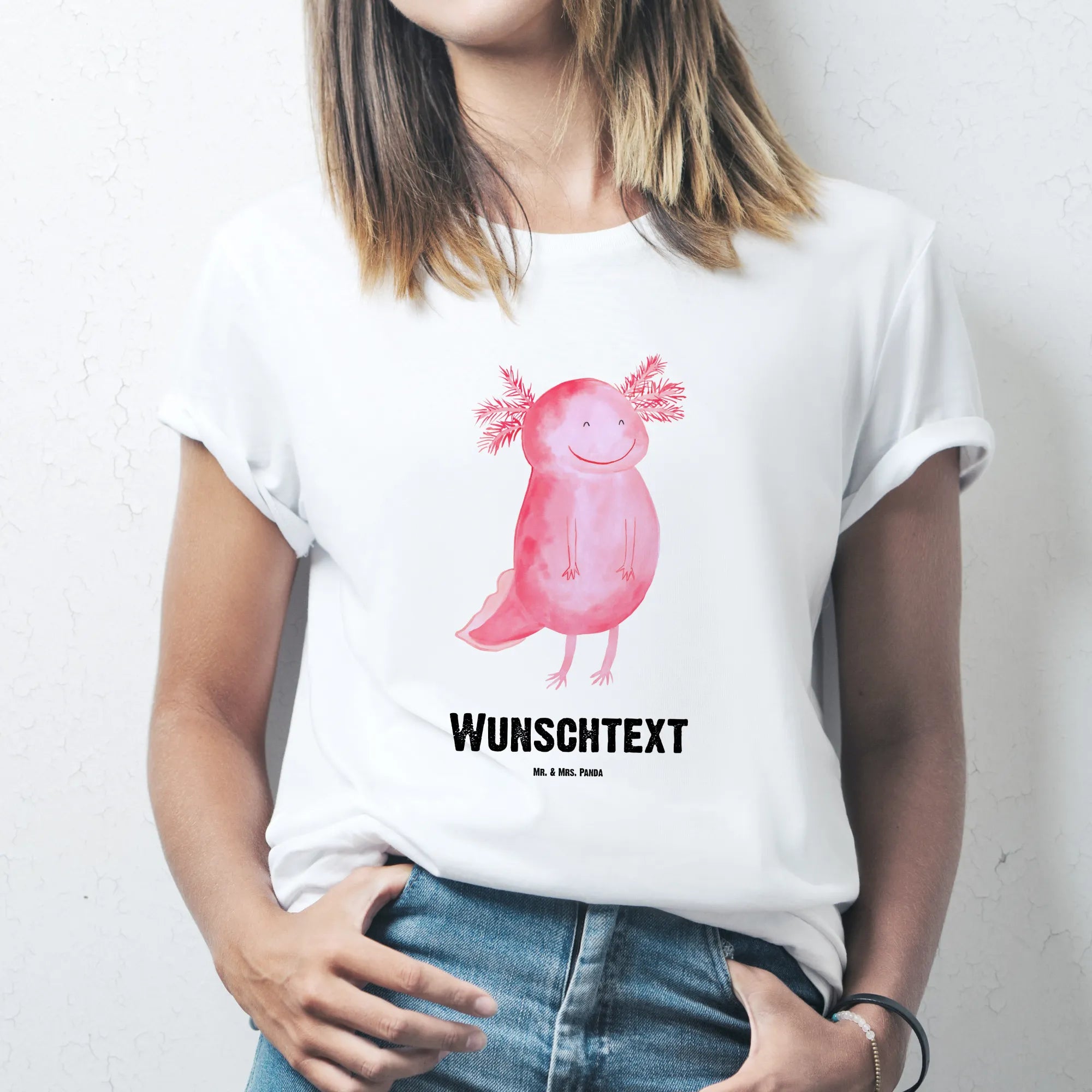 Das „Axolotl glücklich“-Design wurde mit viel Liebe von Mrs. Panda handgezeichnet. Unsere Axolotl Kollektion ist perfekt für alle, die ihre Zuneigung zu diesen faszinierenden Lurchen zeigen möchten. Trage es selbst oder verschenke es an Freunde und Familie, die das Besondere lieben. Diese personalisierte T-Shirt-Variante ist nicht nur modisch, sondern auch ein Ausdruck deiner einzigartigen Persönlichkeit.
