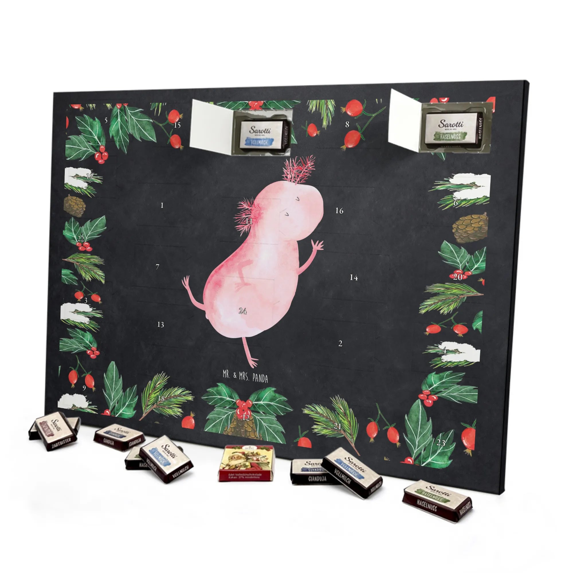 Weihnachtskalender Axolotl Tanzen - Lindt HELLO - mit Spruch - Kreidetafel