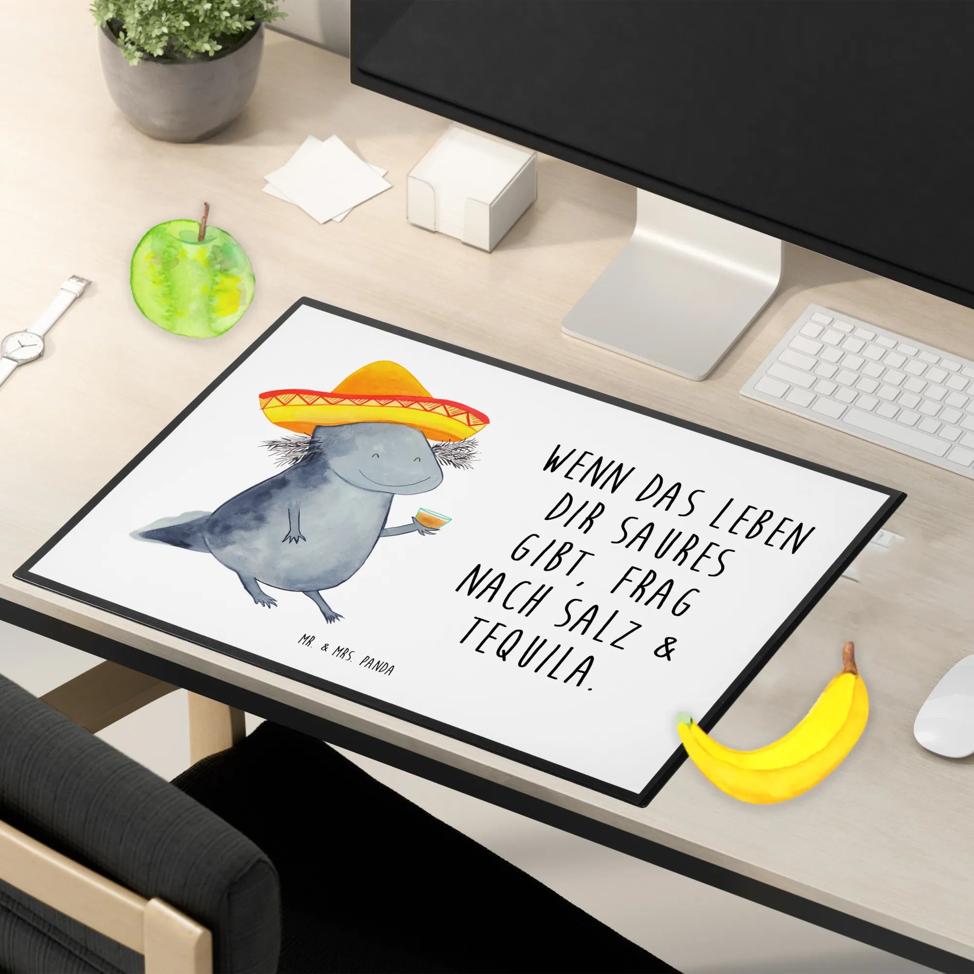 Schreibtischunterlage Axolotl Tequila - mit Spruch - Weiß