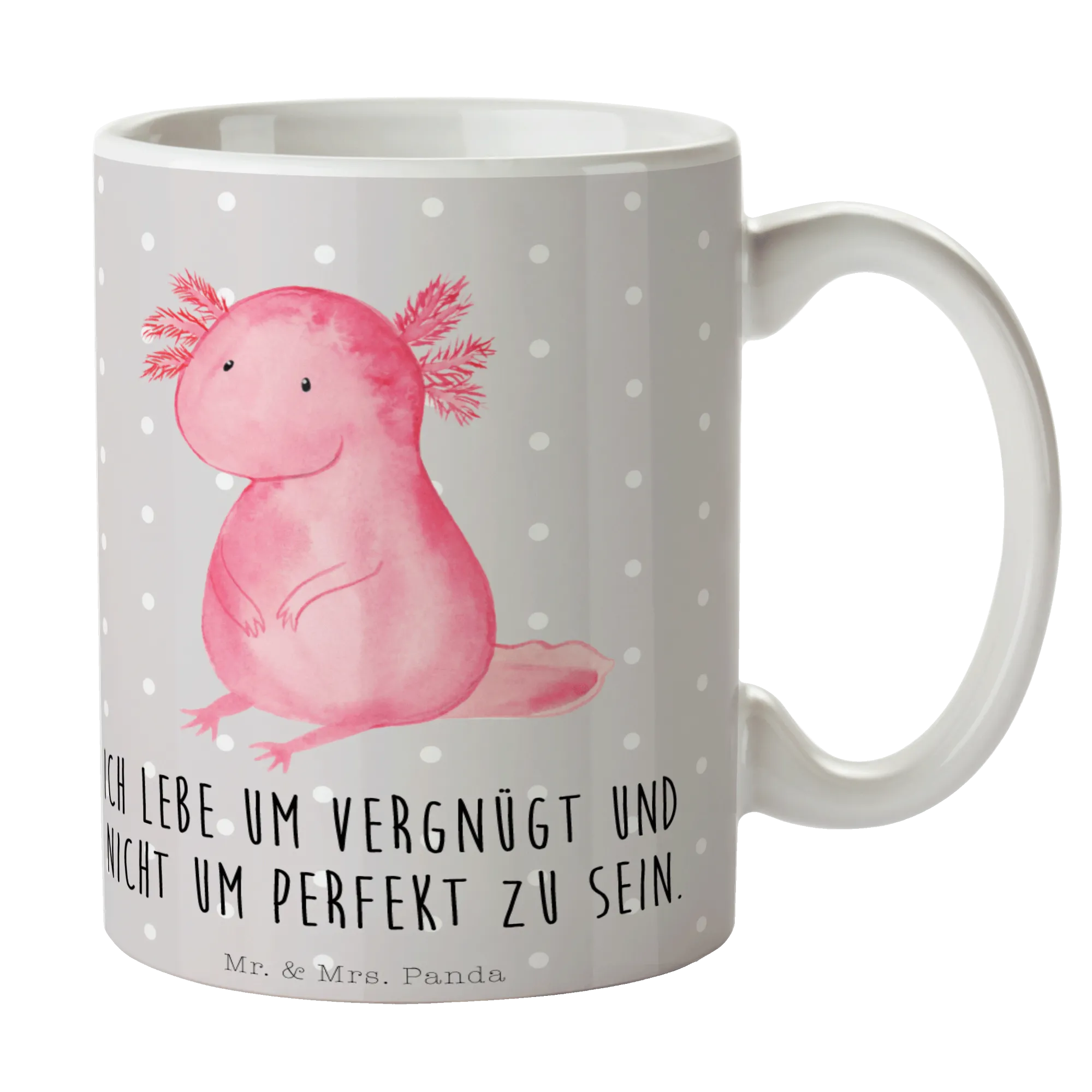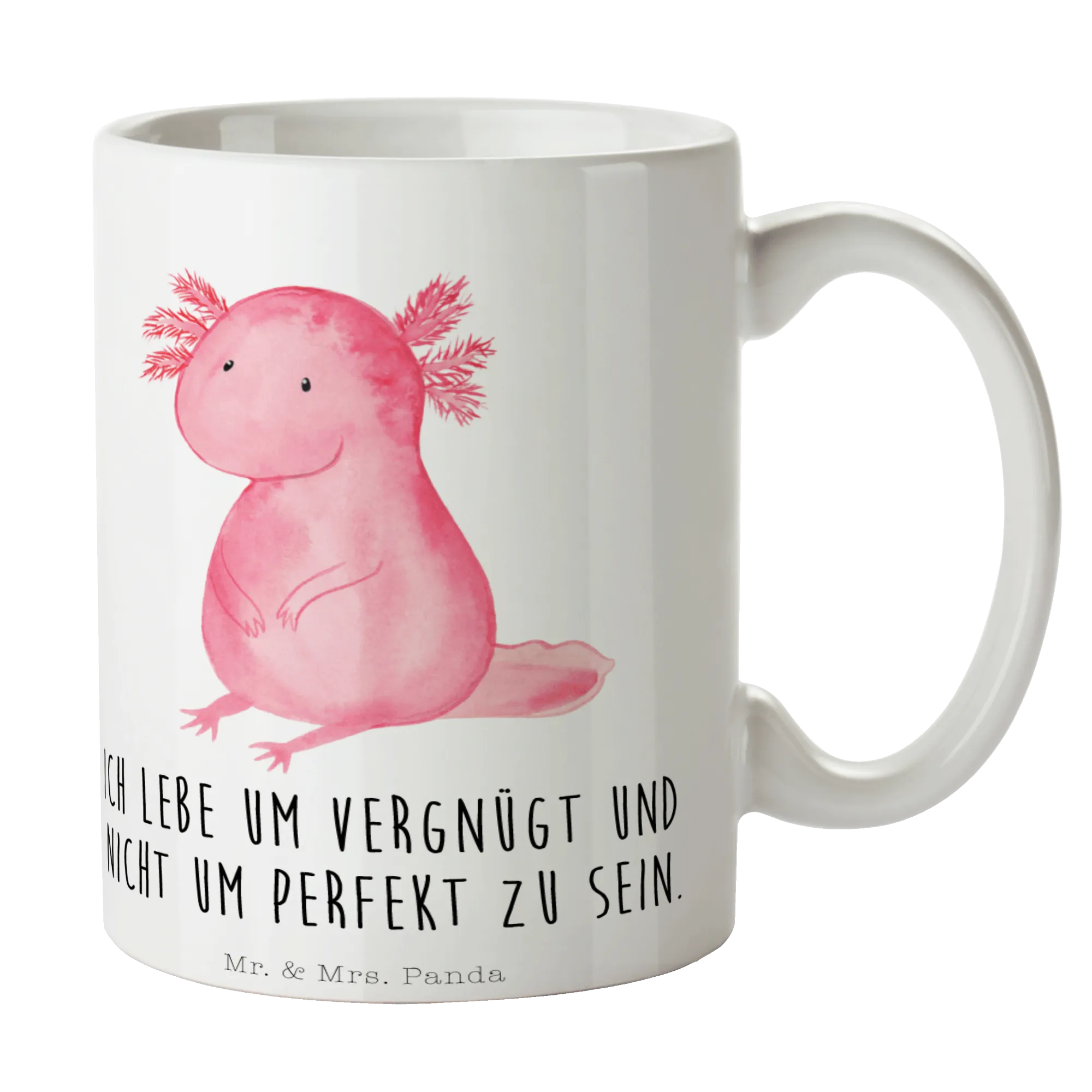 Lass dich von der Lebensweisheit „Ich lebe um vergnügt, und nicht um perfekt zu sein“ inspirieren, die diese Tasse verkörpert. Diese Tasse mit dem niedlichen Axolotl-Motiv ist ein Must-Have für alle, die das Besondere lieben und den Alltag mit einem Lächeln begegnen wollen!