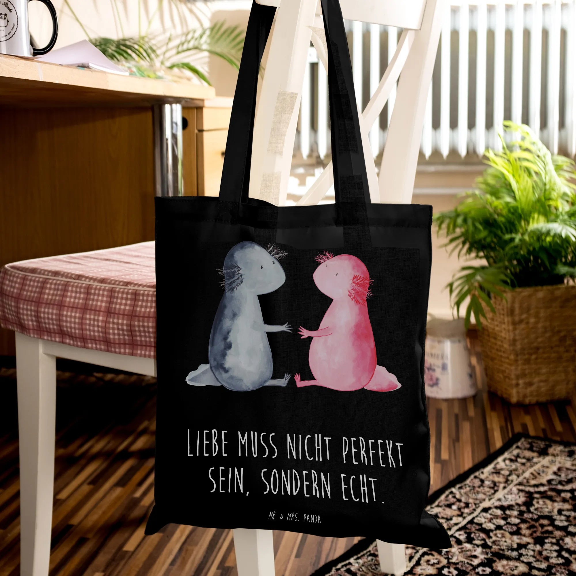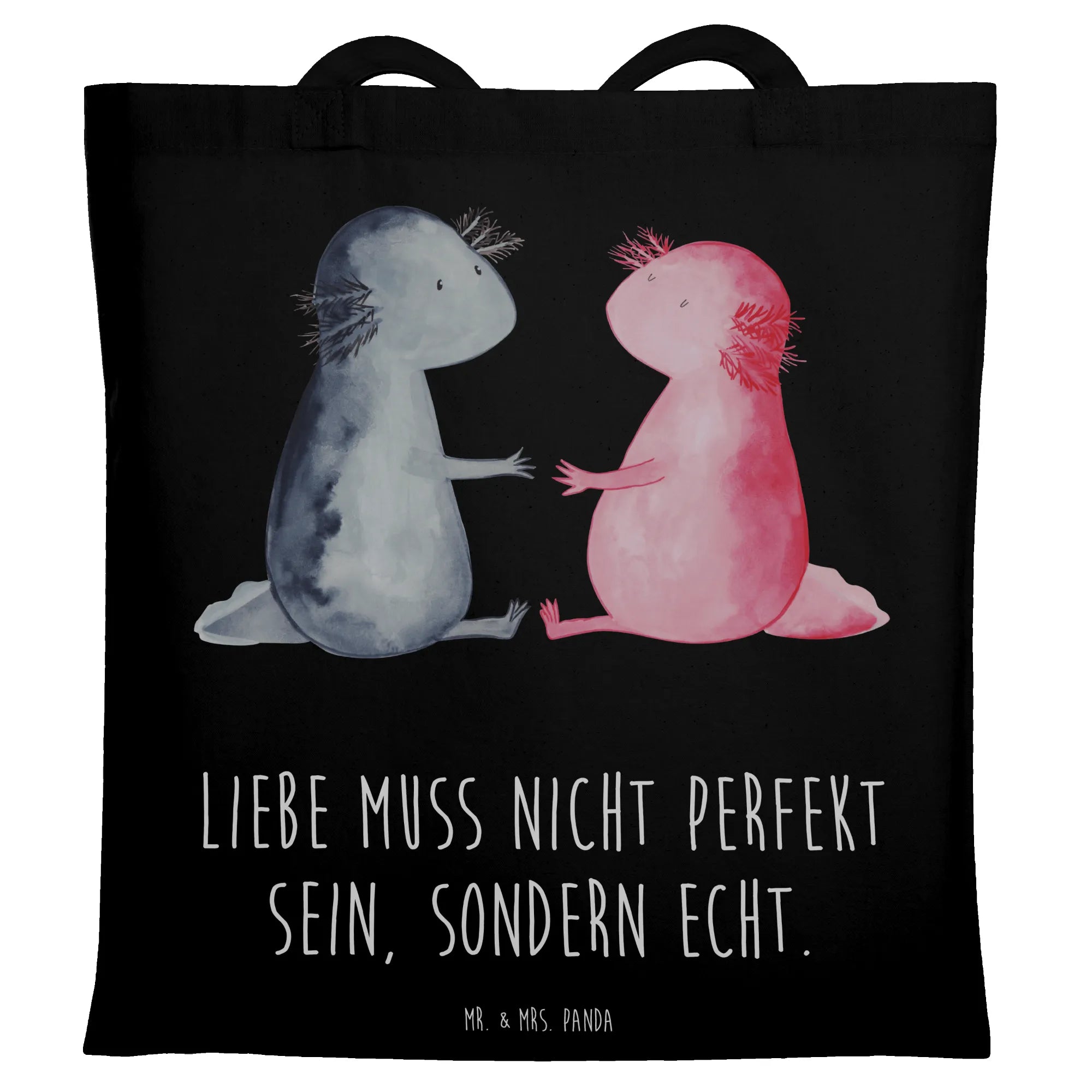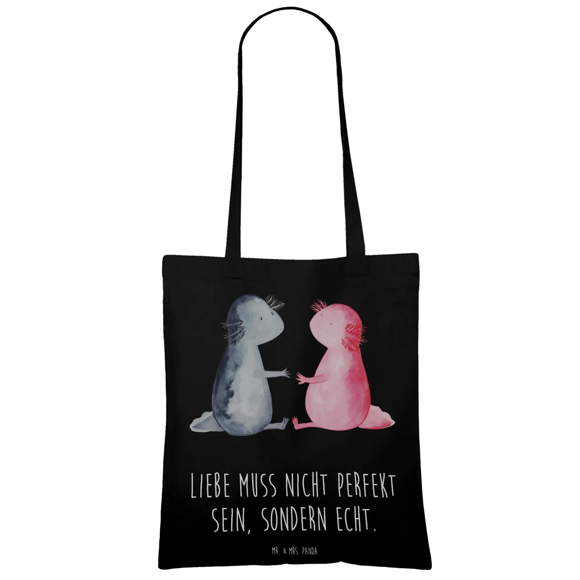 Tragetasche Axolotl Liebe - mit Spruch - Schwarz