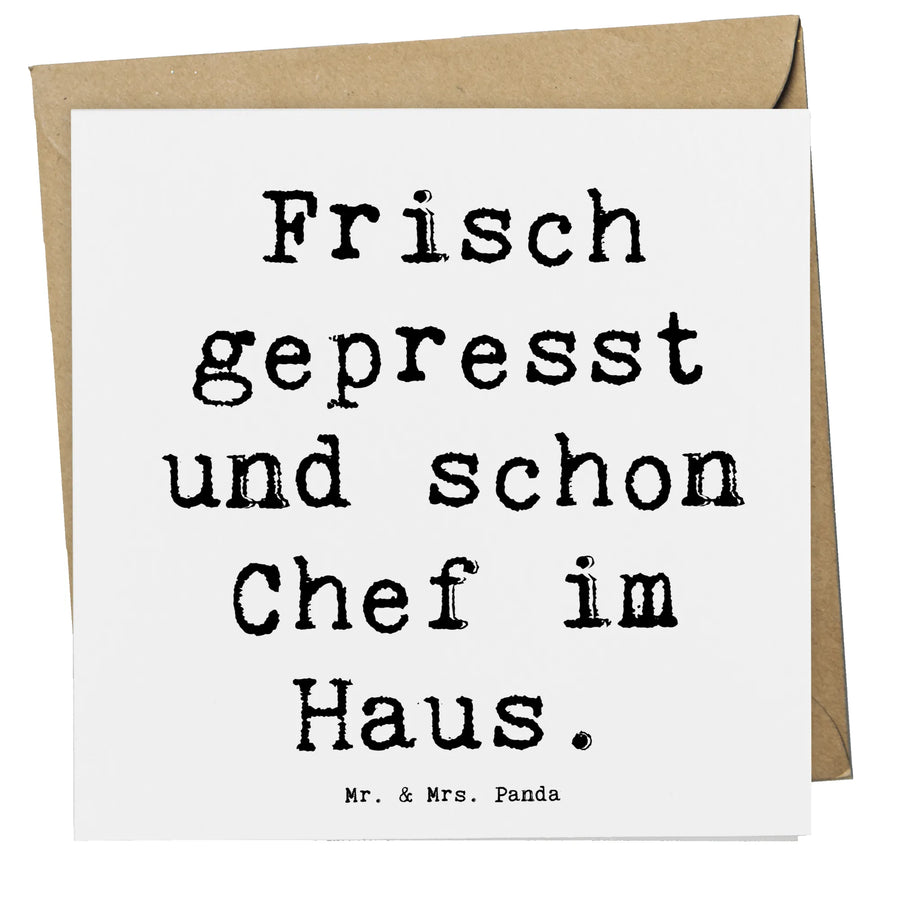 Mit ihrem zauberhaften Design und dem Spruch 'Frisch gepresst und schon Chef im Haus.' bringt sie Freude und Lächeln zu jedem Anlass. Diese Karte ist ideal geeignet für Geburtsankündigungen, Einladungen zur Babyparty oder einfach als liebevolle Geste für die neuen Eltern.