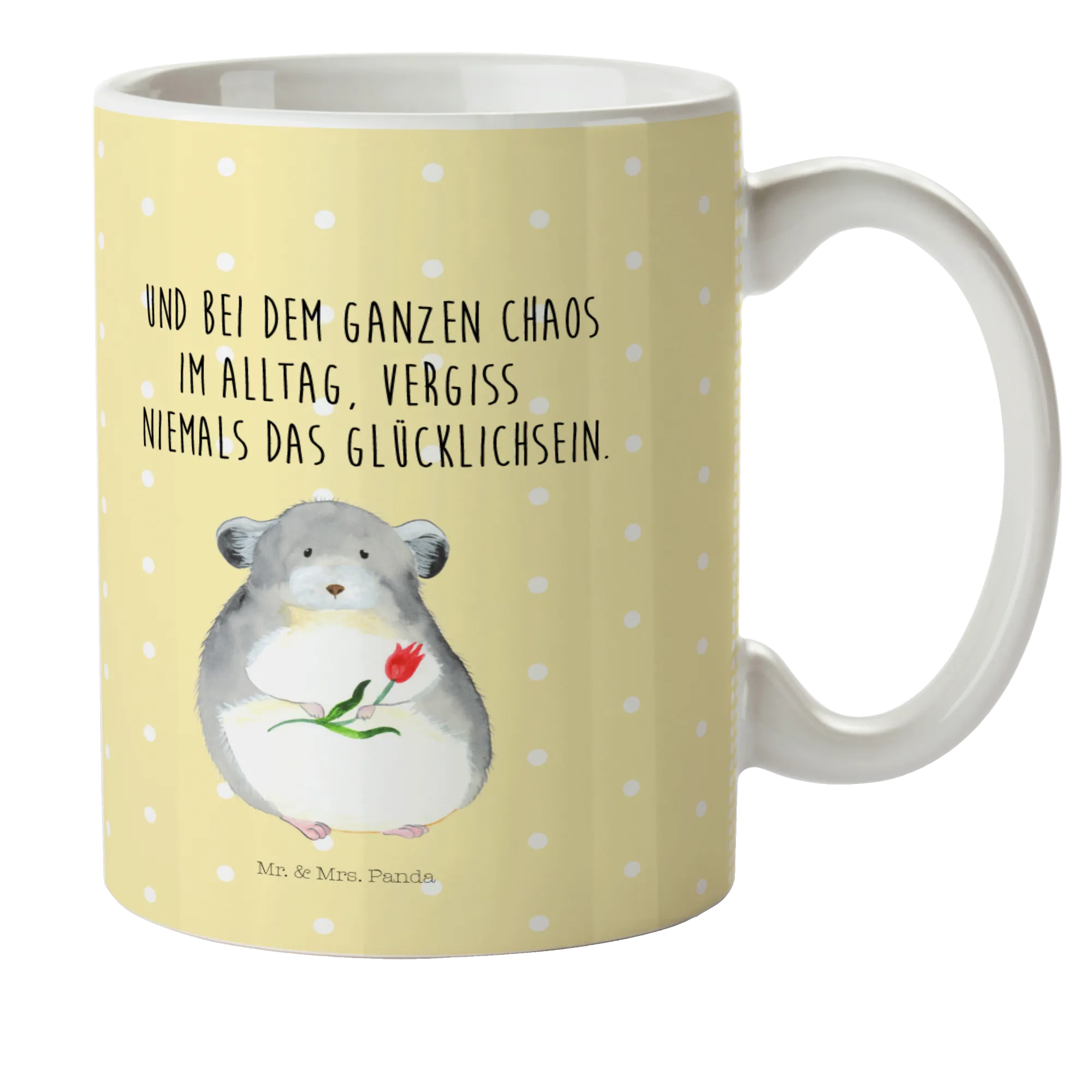 Kinder lieben bunte, fröhliche Designs, und die Kindertasse mit dem niedlichen Chinchilla-Motiv von Mr. & Mrs. Panda ist genau das richtige Geschenk für kleine Tierfreunde! Diese robuste und farbenfrohe Kunststofftasse ist perfekt für den Kindergarten, für das Trinken von leckerem Kakao oder sogar für den Ausflug ins Freie. Wenn du nach einem coolen und praktischen Trinkbecher suchst, wirst du die Happy Chinchilla Tasse mit ihrer Blume lieben.