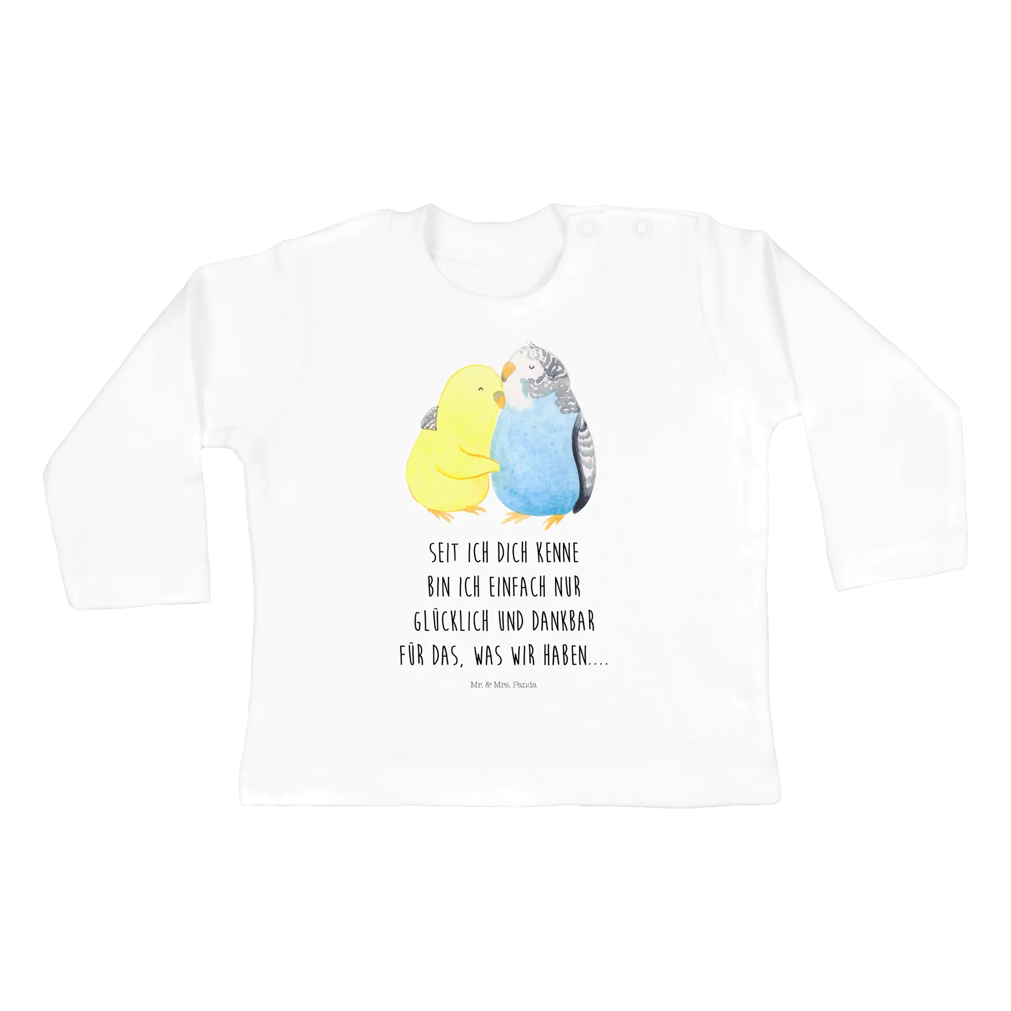 Wir sind uns sicher: Egal, ob zu besonderen Anlässen oder im Alltag – mit dem 18-24 Monate Baby Longsleeve mit dem Motif "Wellensittich Liebe" schenkst du nicht nur ein Stück Kleidung, sondern auch Liebe und Geborgenheit. Gewinne Herzen und sorge für strahlende Augen bei Groß und Klein mit diesem wunderbaren Geschenk aus der Liebe Kollektion von Mr. & Mrs. Panda. So wird dein kleiner Schatz nicht nur schön, sondern auch glücklich sein!