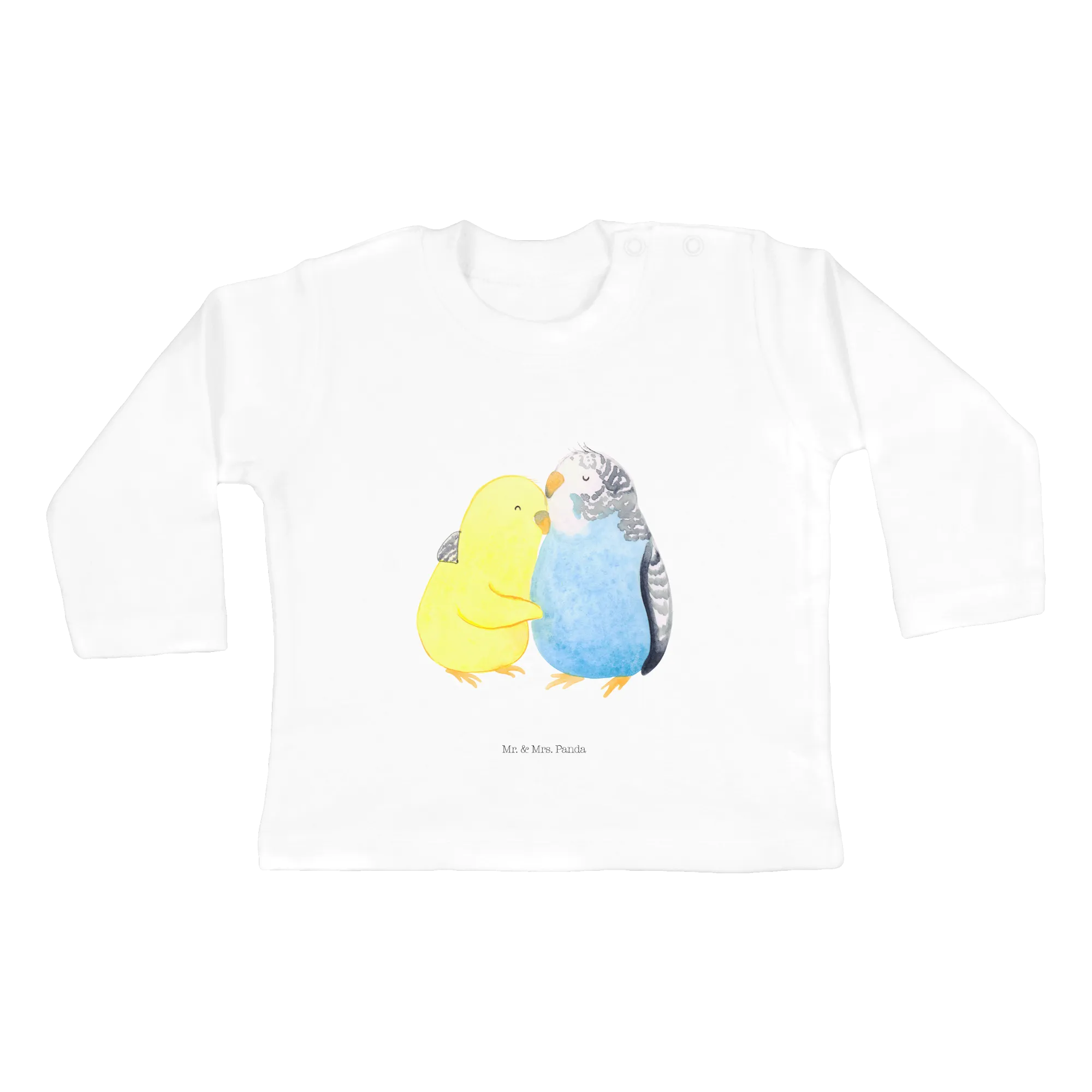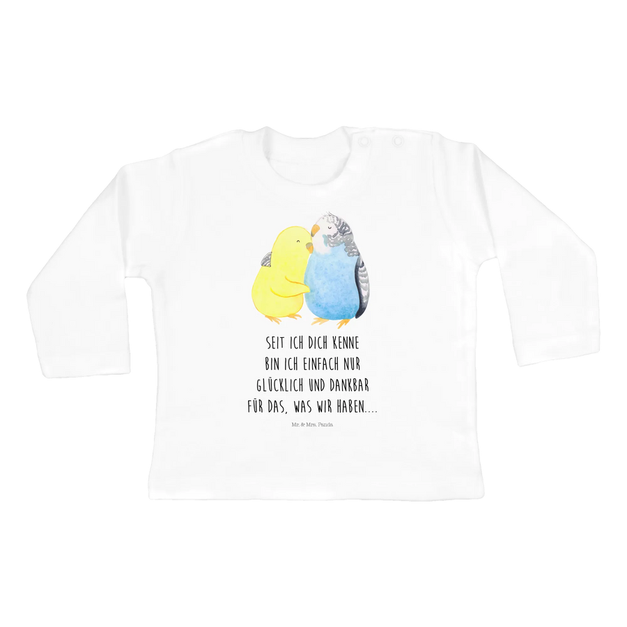 Der 12-18 Monate Baby Langarm mit dem Motive „Wellensittich Liebe“ aus der Liebe Kollektion von Mr. & Mrs. Panda ist das perfekte Geschenk für kleine Herzchen und ihre Eltern.