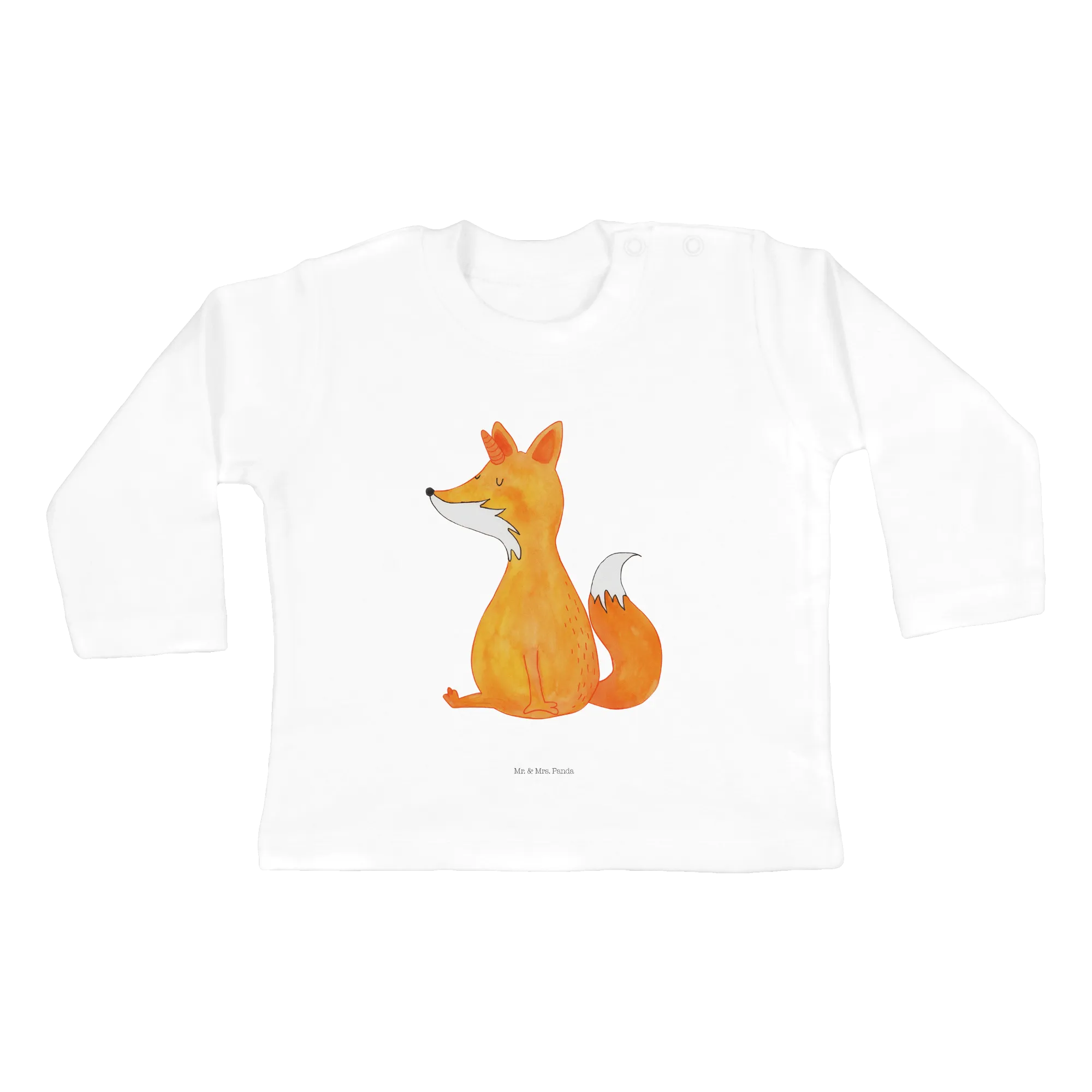 Das entzückende Fuchshörnchen-Motiv, ein niedlicher Fuchs mit Einhorn auf dem Kopf, bringt Kinderaugen zum Leuchten und ist ein echtes Highlight in jedem Kleiderschrank. Das Design ist handgezeichnet und vermittelt den zauberhaften Charme, den nur Mr. & Mrs. Panda bieten können.