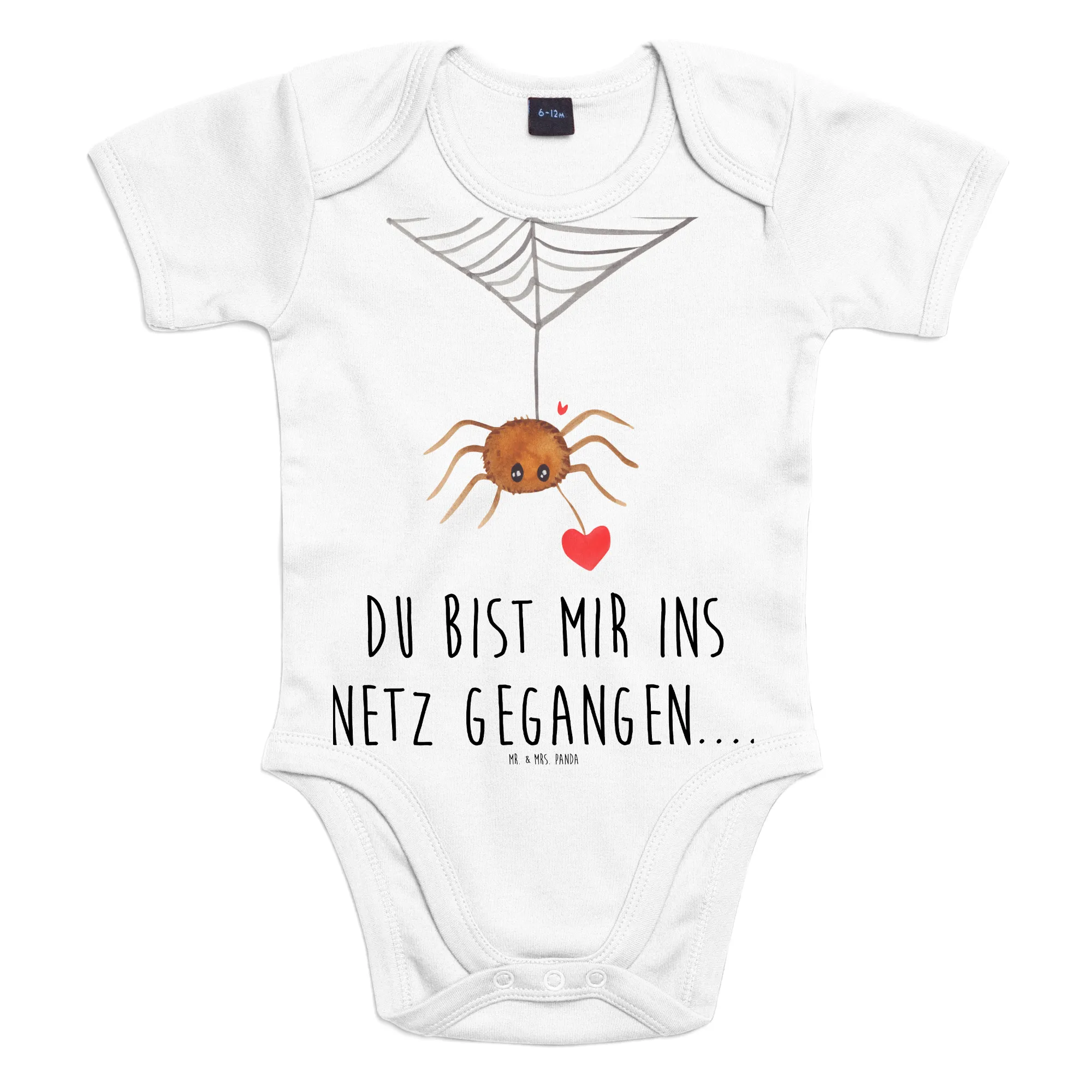 Der Baby Body mit dem liebevollen Motiv 'Spinne Agathe Liebe' aus der Mr. & Mrs. Panda Kollektion ist das perfekte Geschenk für jeden Anlass. Ob zur Geburt, zur Taufe oder einfach nur als liebevolle Überraschung für die frischgebackenen Eltern – dieser Babyartikel bringt nicht nur ein Lächeln auf die Gesichter der Beschenkten, sondern auch Behaglichkeit für das kleine Wunder. Hergestellt aus 100% Bio-Baumwolle, ist dieser Strampler nicht nur besonders weich und bequem, sondern auch kinderfreundlich und schadstofffrei. Mit den praktischen Druckknöpfen im Schrittbereich wird das An- und Auskleiden zum Kinderspiel – so bleibt mehr Zeit für die schönen Dinge im Leben.