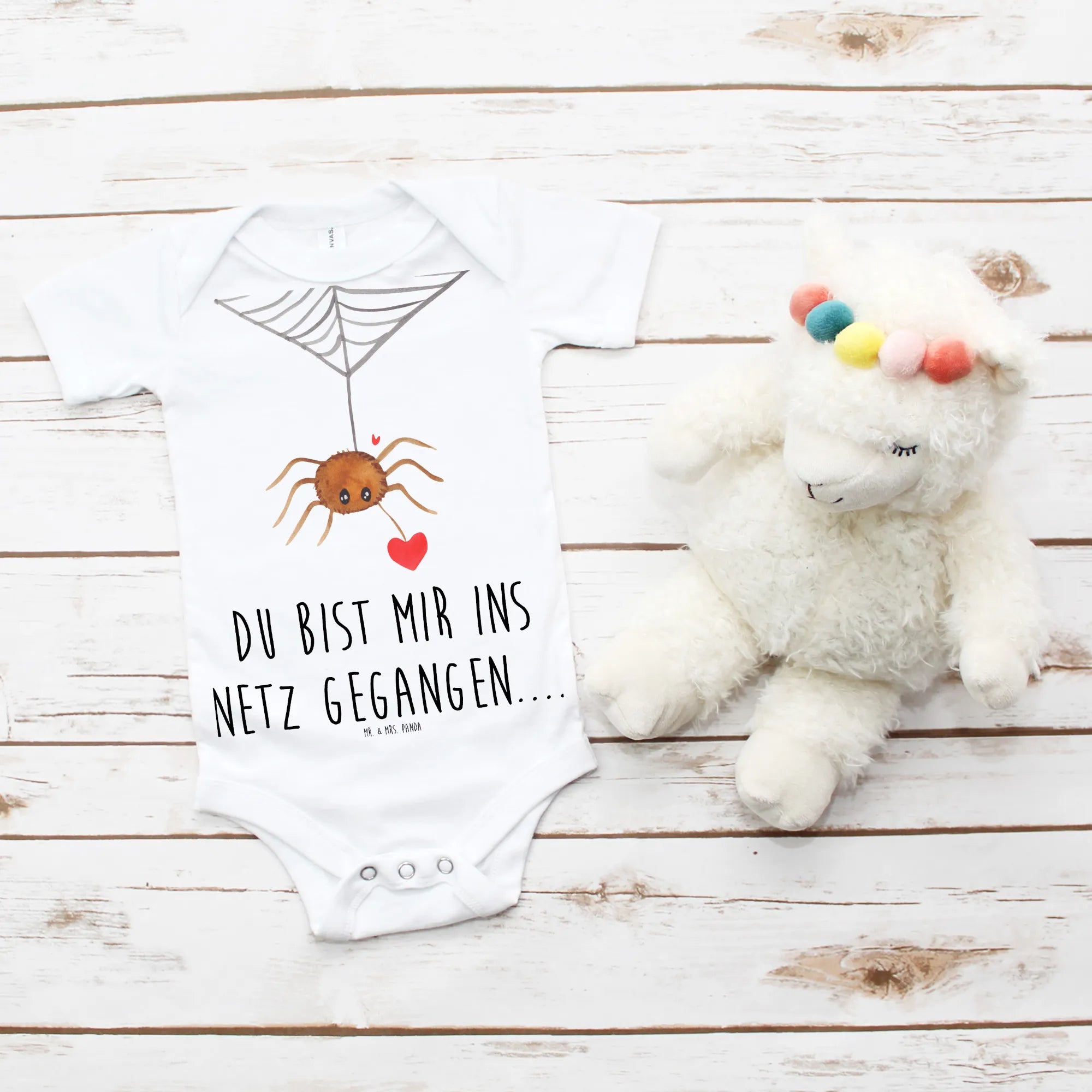 In den Größen für 3 bis 6 Monate passt er perfekt während der ersten aufregenden Monate im Leben. Die süße Spinne Agathe, die an ihrem Netz hängt, symbolisiert die Liebe auf eine ganz besondere Art und Weise. Mit dem herzlichen Slogan "Du bist mir ins Netz gegangen...." wird dieser Baby Body zu einem starken Ausdruck der Zuneigung, ideal als Liebesbeweis oder als Geschenk zur Geburt, zur Taufe oder zum ersten Geburtstag.