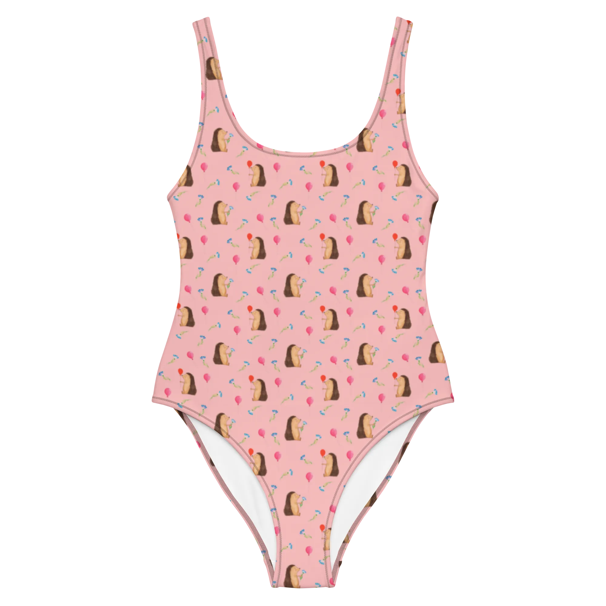 Dieser einzigartige Badeanzug ist nicht nur ein stilvolles Kleidungsstück, sondern auch ein fröhliches Statement für jede Schwimmparty. Mit seinem süßen Igel-Motiv, das fröhlich einen Luftballon in der Hand hält, versprüht dieser Badeanzug Glück und gute Laune.