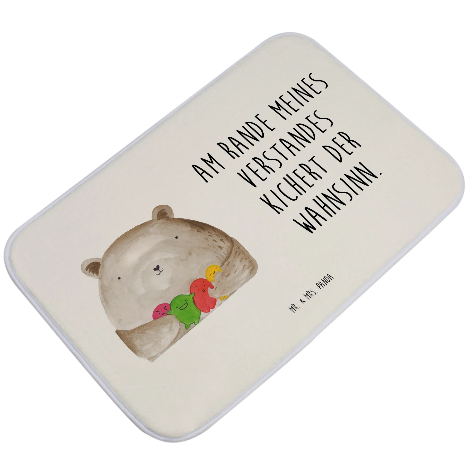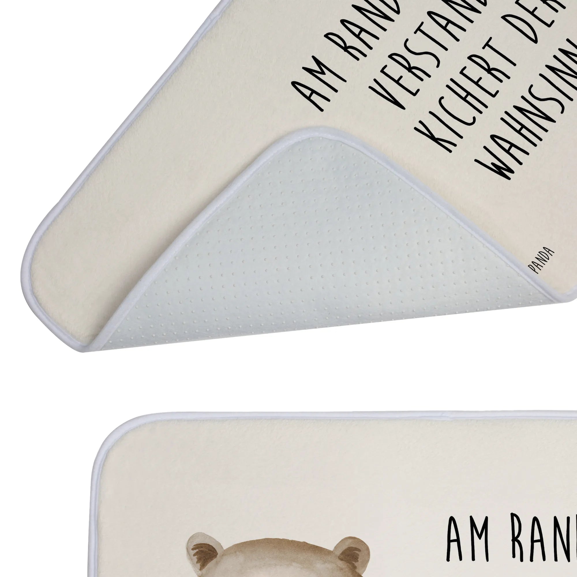 Der Badvorleger 'Bär Gefühl' von Mr. & Mrs. Panda ist das perfekte Accessoire für dein Badezimmer. Mit seinem süßen bärigen Motiv und dem einprägsamen Spruch 'Am Rande meines Verstandes kichert der Wahnsinn' bringt er Freude und einen Hauch von Verrücktheit in jeden Raum.