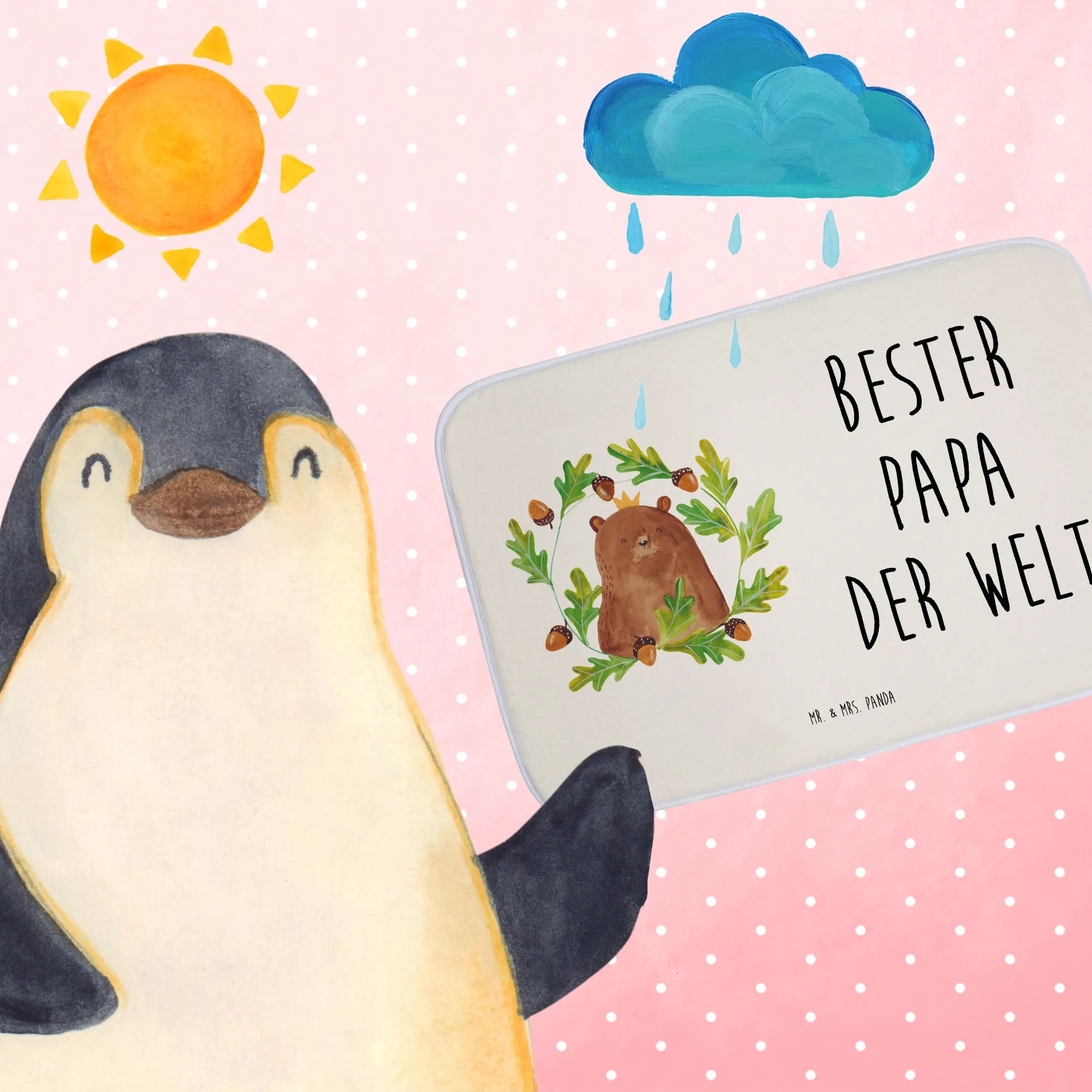 Der Bär König Badvorleger von Mr. & Mrs. Panda ist das perfekte Geschenk für alle Bärenliebhaber und vor allem für die besten Väter der Welt! Mit dem süßen Motiv eines Bären mit einer Krone und dem liebevollen Slogan 'Bester Papa der Welt' bringt dieser einzigartige Badvorleger nicht nur eine tolle Optik in dein Badezimmer, sondern sorgt auch für ein Lächeln auf deinem Gesicht. Perfekt für den Vatertag, Geburtstage oder einfach nur als kleine Aufmerksamkeit für den besten Papa!