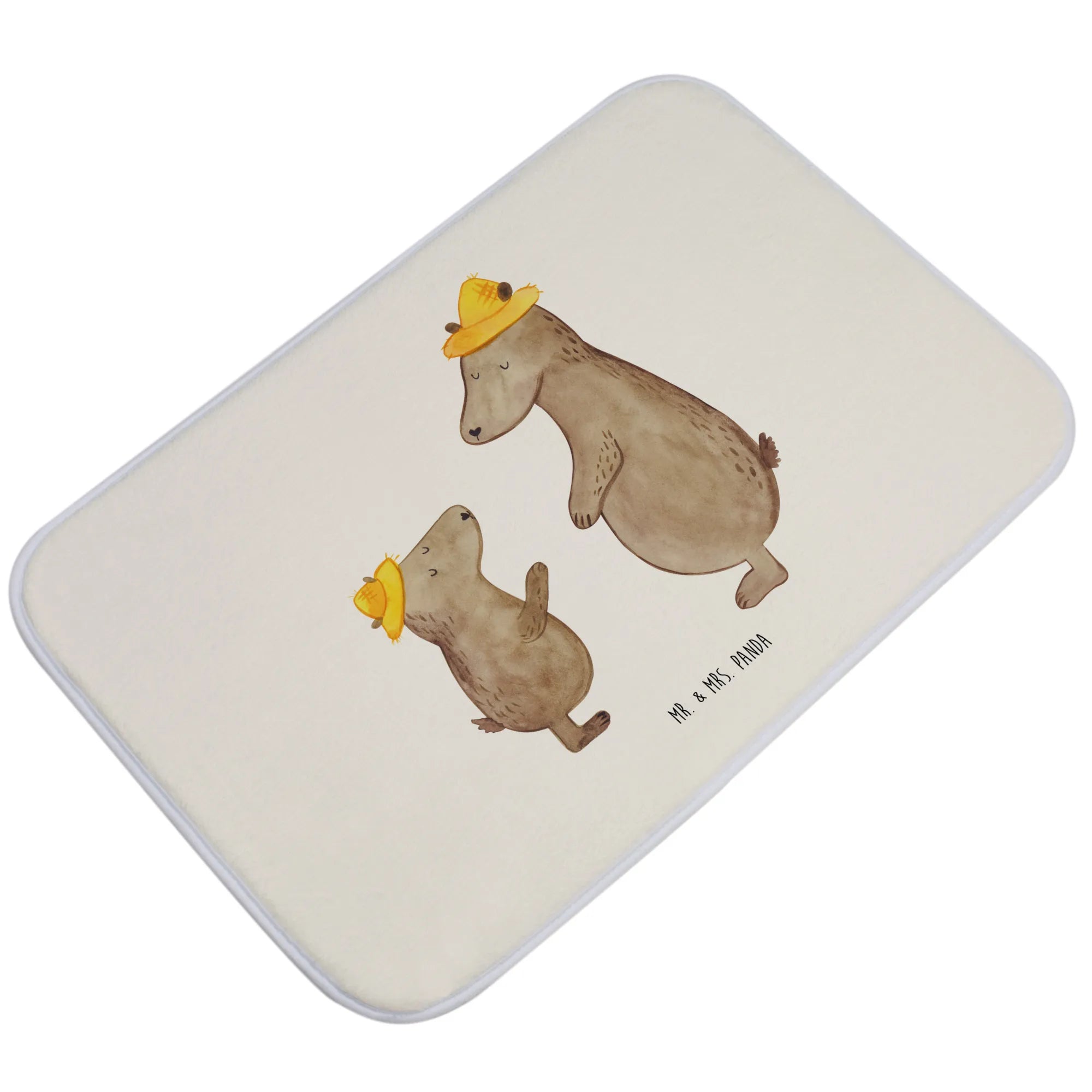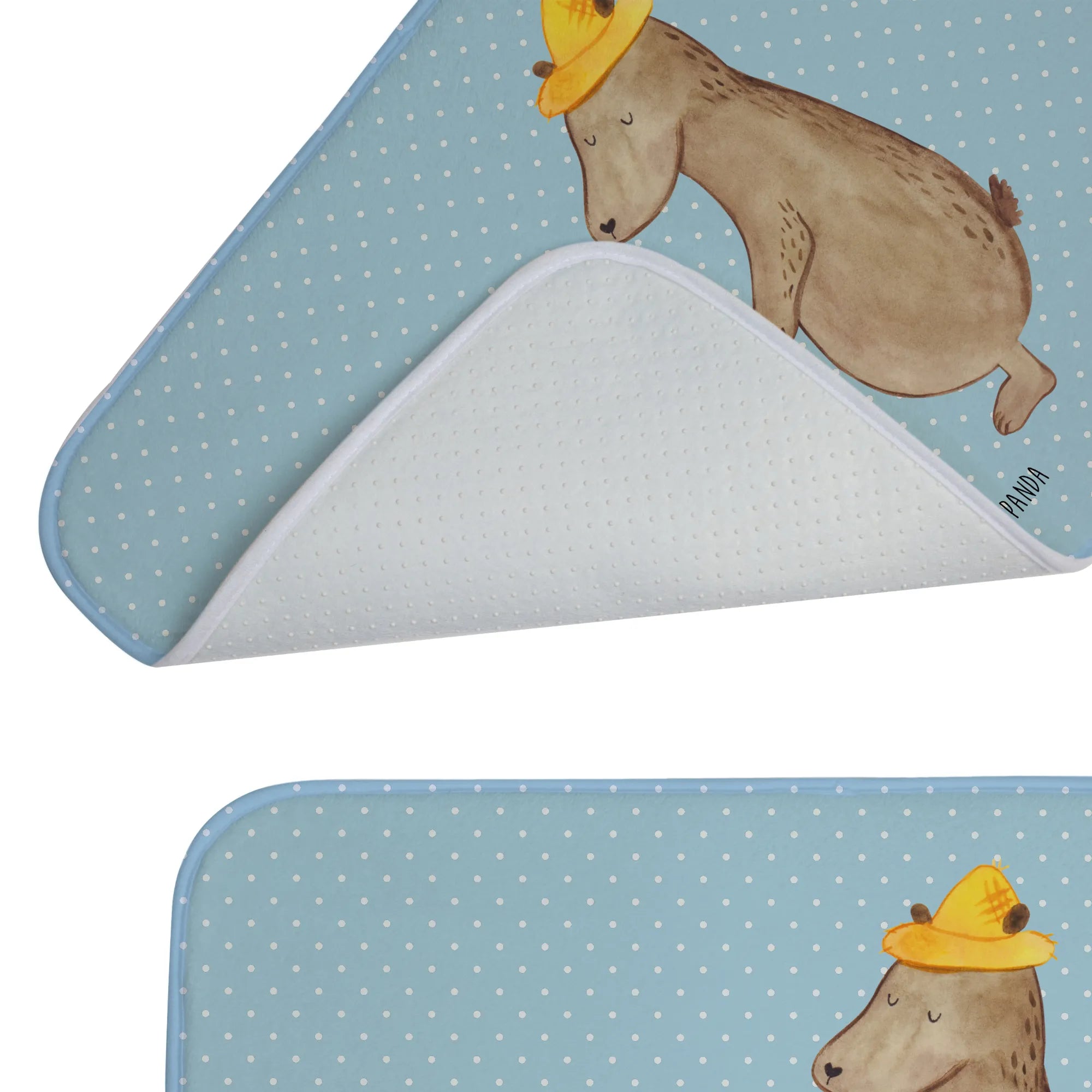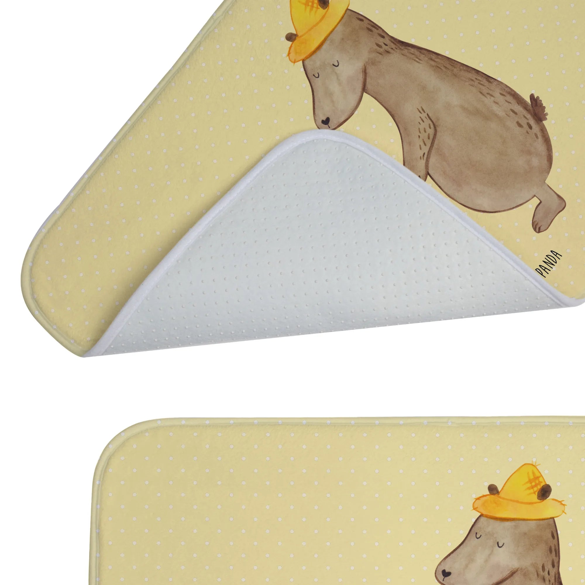 Der Badvorleger mit dem niedlichen Motiv der Bären mit Hut von Mr. & Mrs. Panda ist das perfekte Geschenk für die ganze Familie. Stell dir vor: Du steigst morgens aus der Dusche und trittst auf diesen besonders flauschigen Badteppich – das Gefühl ist einfach unbezahlbar!