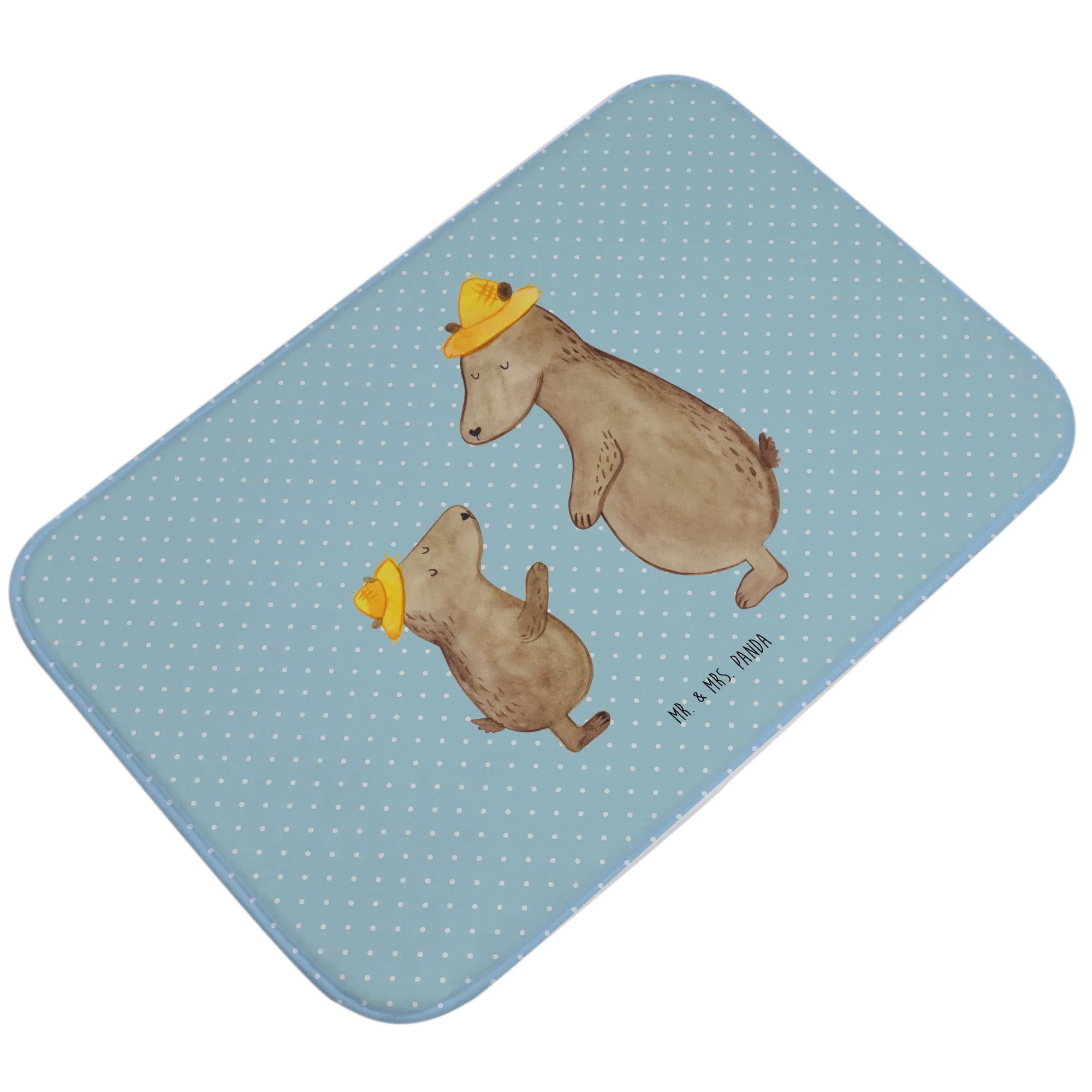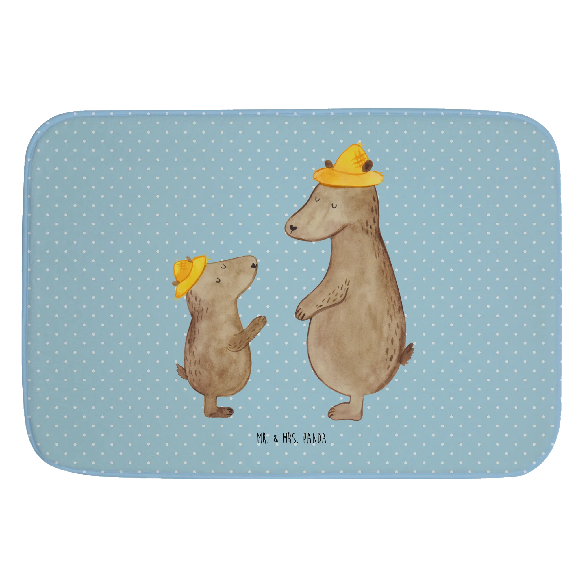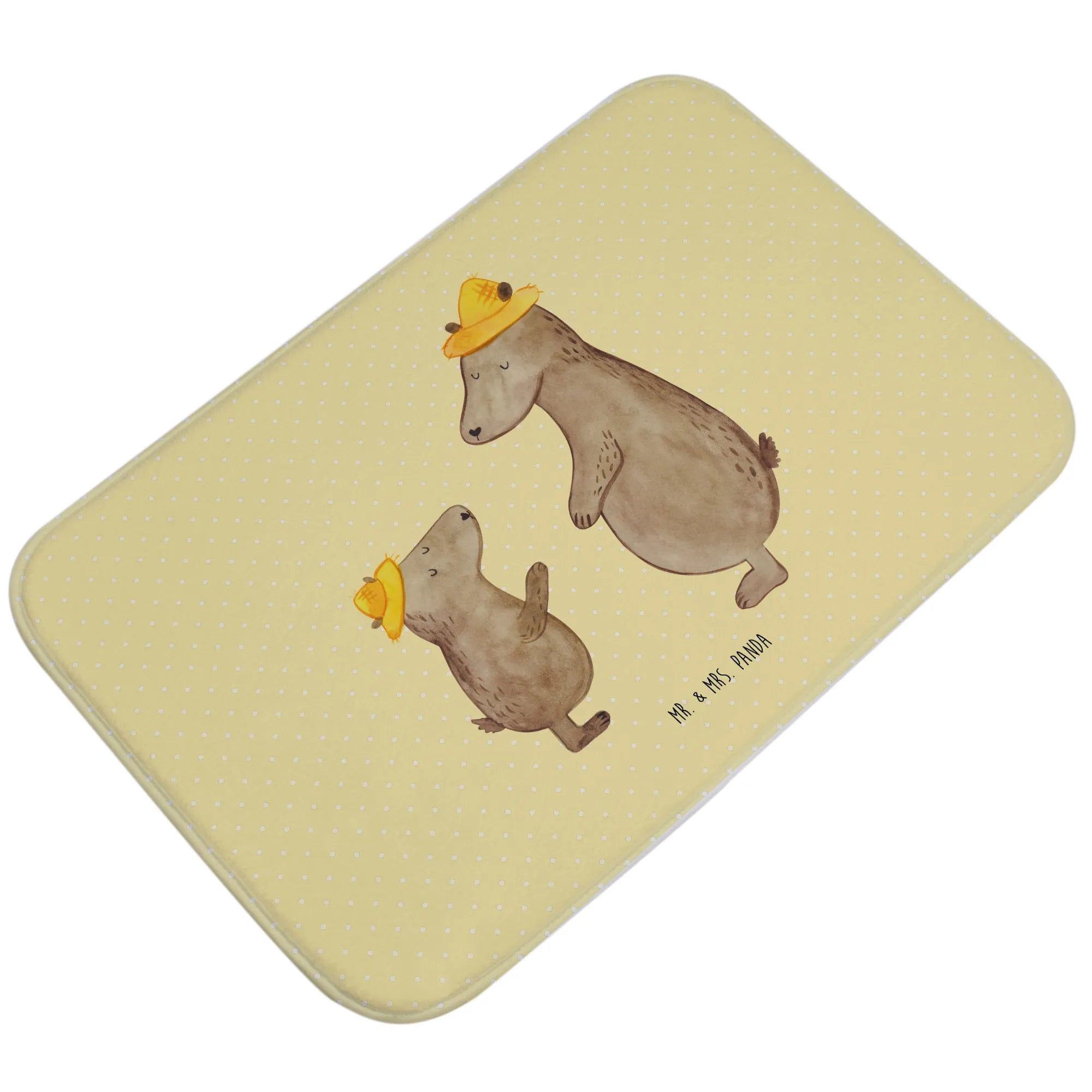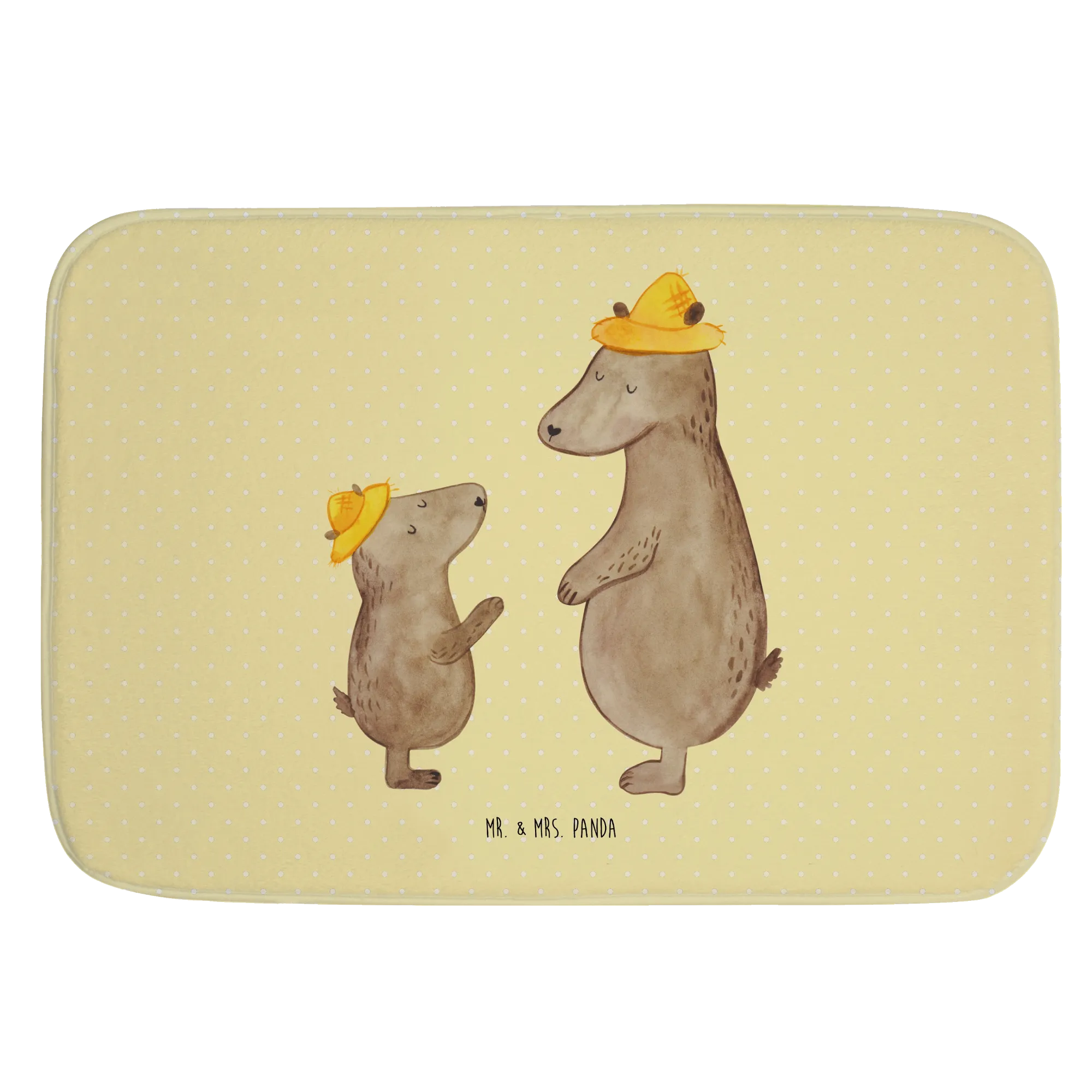 Der Badvorleger mit dem niedlichen Motiv der Bären mit Hut von Mr. & Mrs. Panda ist das perfekte Geschenk für die ganze Familie. Stell dir vor: Du steigst morgens aus der Dusche und trittst auf diesen besonders flauschigen Badteppich – das Gefühl ist einfach unbezahlbar!