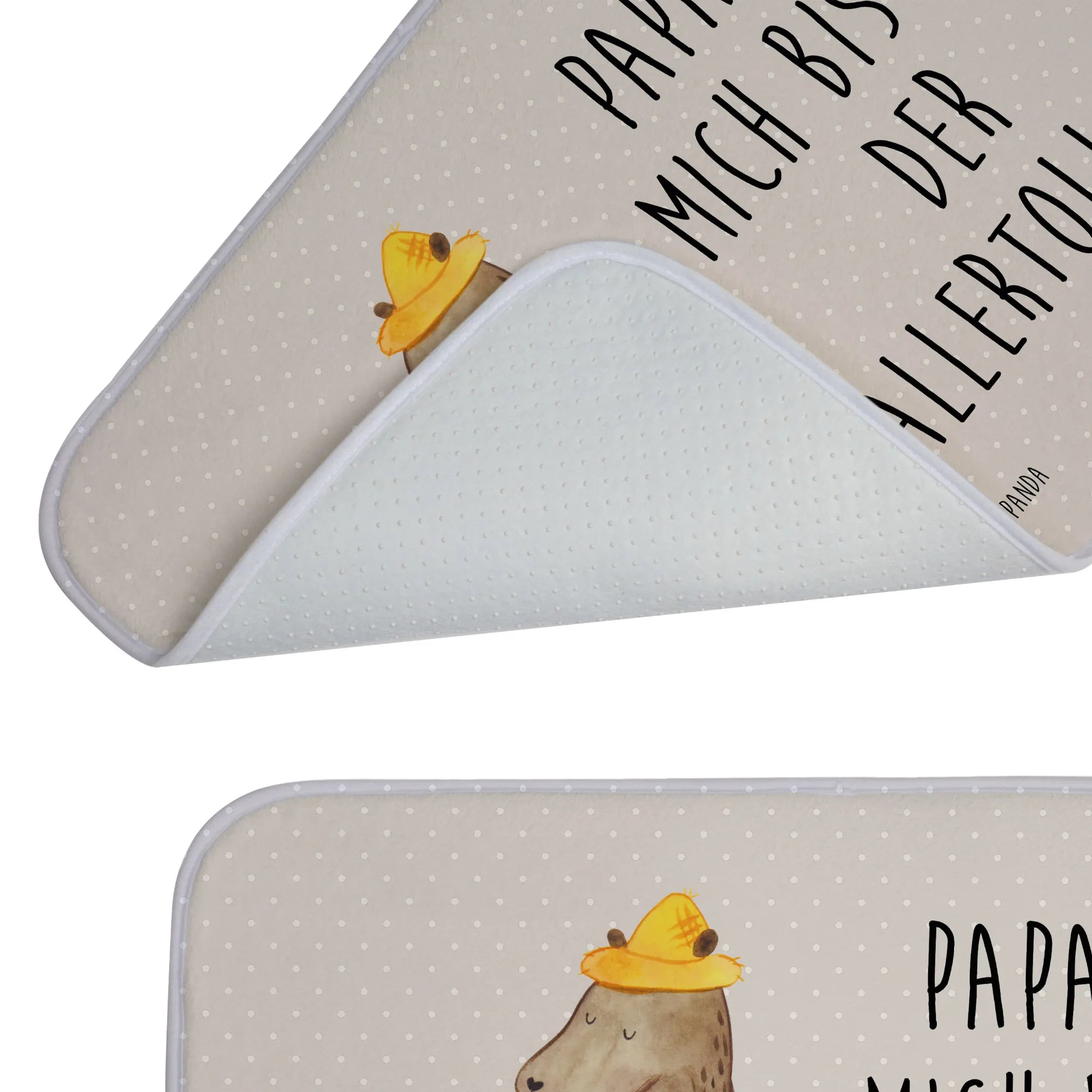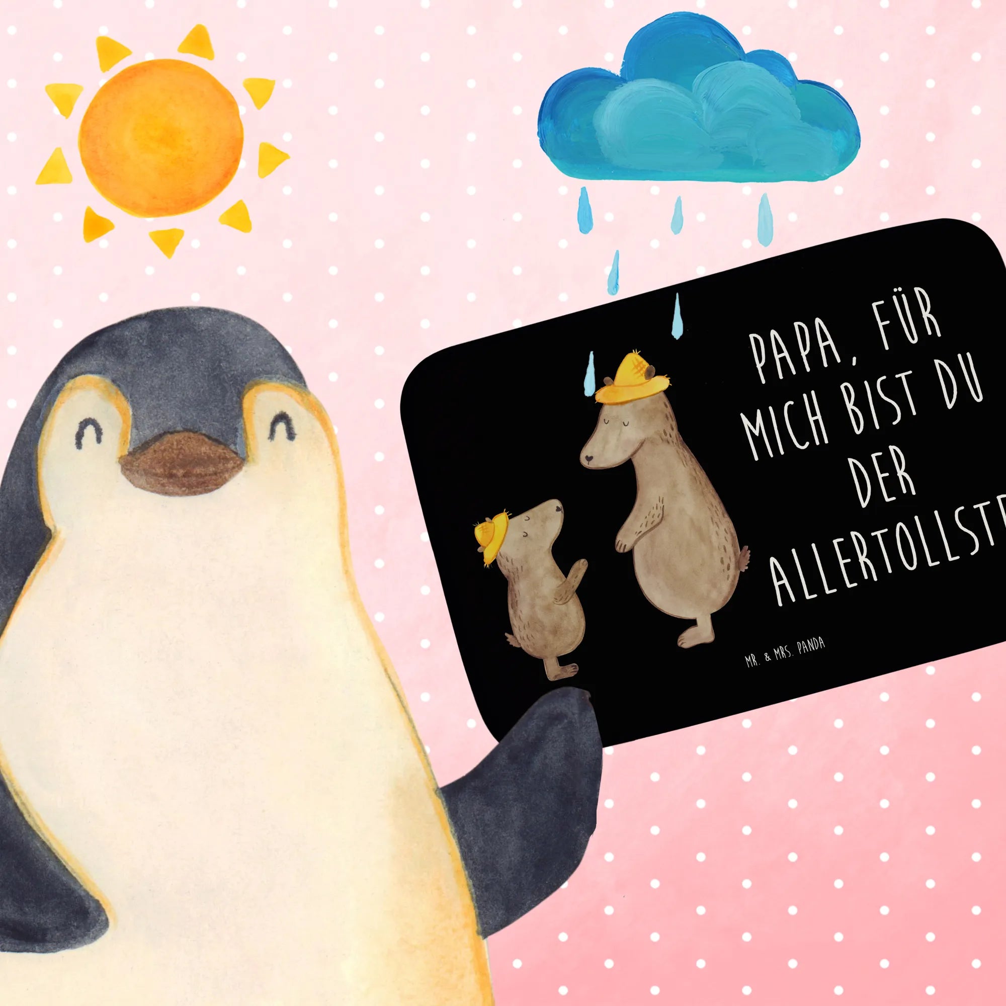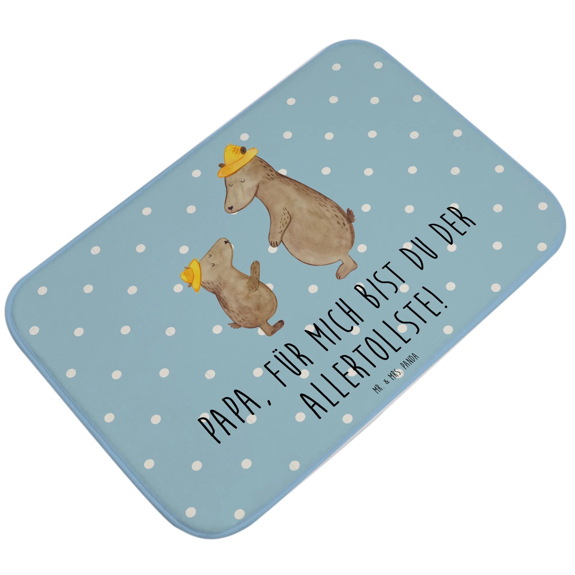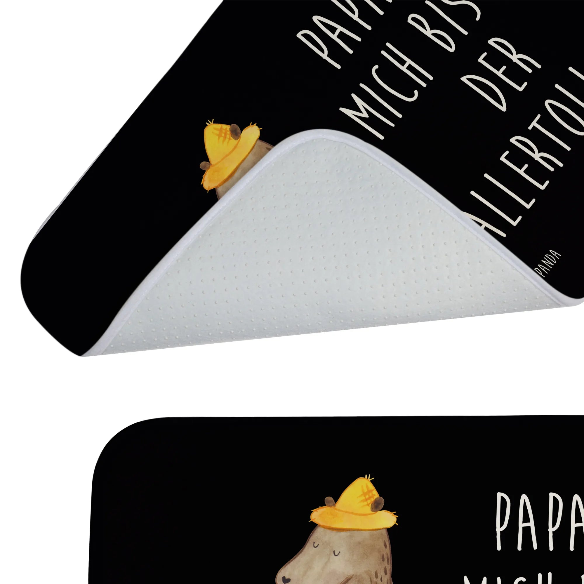 Unser Badvorleger mit dem bezaubernden Motiv der Bären mit Hut aus der Familienkollektion von Mr. & Mrs. Panda ist das perfekte Geschenk für jeden besonderen Anlass! Egal ob für den Vatertag, den Muttertag oder einfach nur, um deinem Lieblingsmenschen zu zeigen, wie viel er dir bedeutet – dieser Duschvorleger bringt Freude und Wärme in jedes Badezimmer. Die süßen Bären stehen für eine liebevolle Beziehung zwischen Papa und Sohn oder zwischen Geschwistern, und mit dem liebevollen Slogan 'Papa, für mich bist du der Allertollste!' zeigst du deinem Vater, wie wertvoll er für dich ist. Das Design ist nicht nur gelungen, sondern versprüht auch eine heitere und gemütliche Atmosphäre.