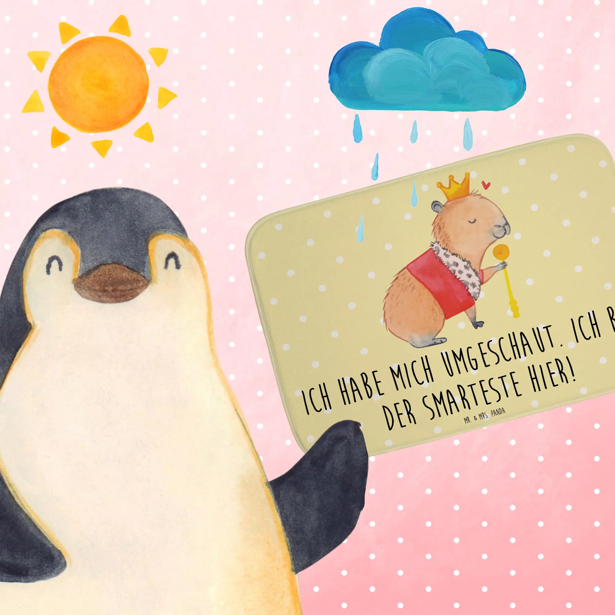 Du bist auf der Suche nach einem ganz besonderen Highlight für Dein Badezimmer? Dann ist der wunderschöne Badvorleger mit dem süßen Capybara König Motiv von Mr. & Mrs. Panda genau das Richtige für Dich! Dieser Badteppich ist nicht einfach nur ein Badezimmeraccessoire; er ist ein kleiner Glücksbringer und bringt sofort gute Laune in Deinen Raum!