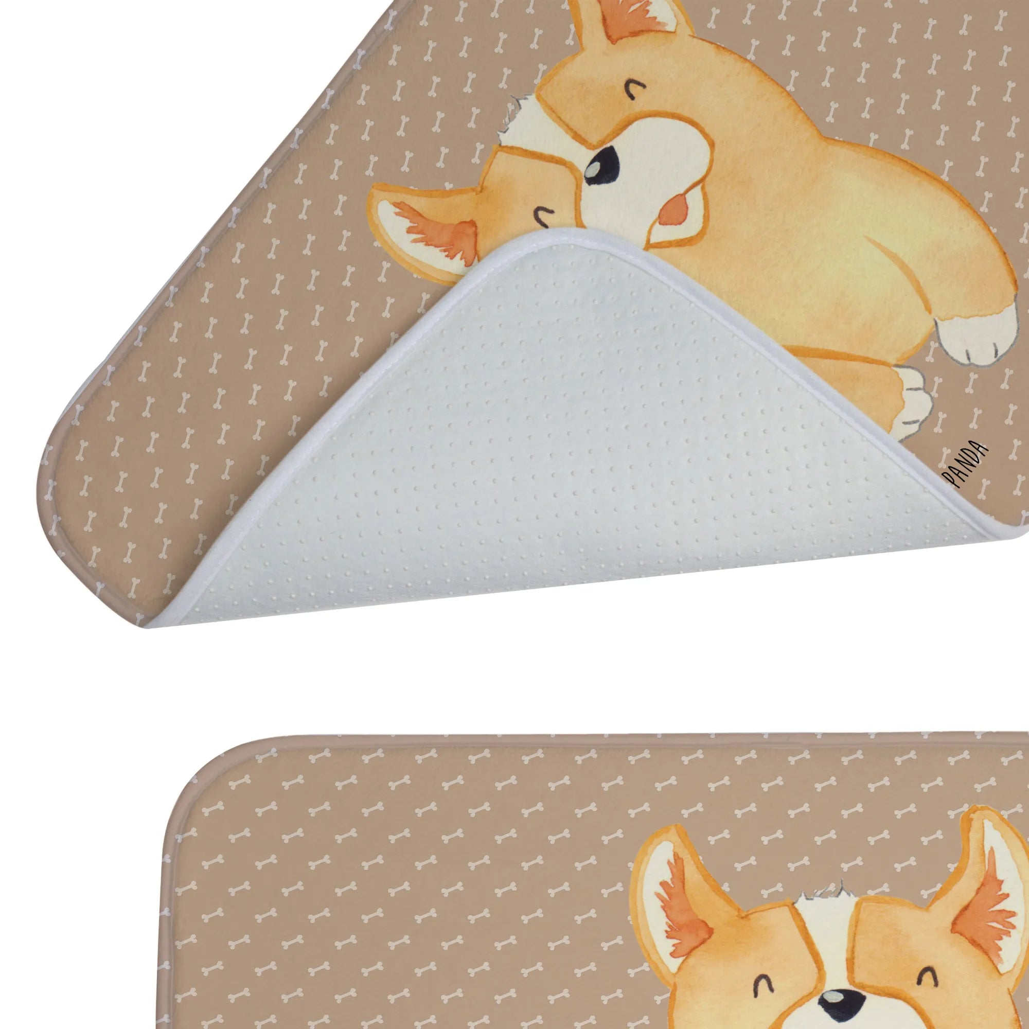 Entdecke unseren bezaubernden Badvorleger mit einem niedlichen Corgie-Motiv! Dieser Badteppich von Mr. & Mrs. Panda ist nicht nur ein echter Hingucker, sondern auch praktisch. Die flauschige Oberfläche aus hochwertiger Kunstfaser sorgt für ein besonders angenehmes Gefühl an den Füßen, während die Antirutsch-Gummibeschichtung dafür sorgt, dass du sicher und fest stehst – perfekt für dein Badezimmer.