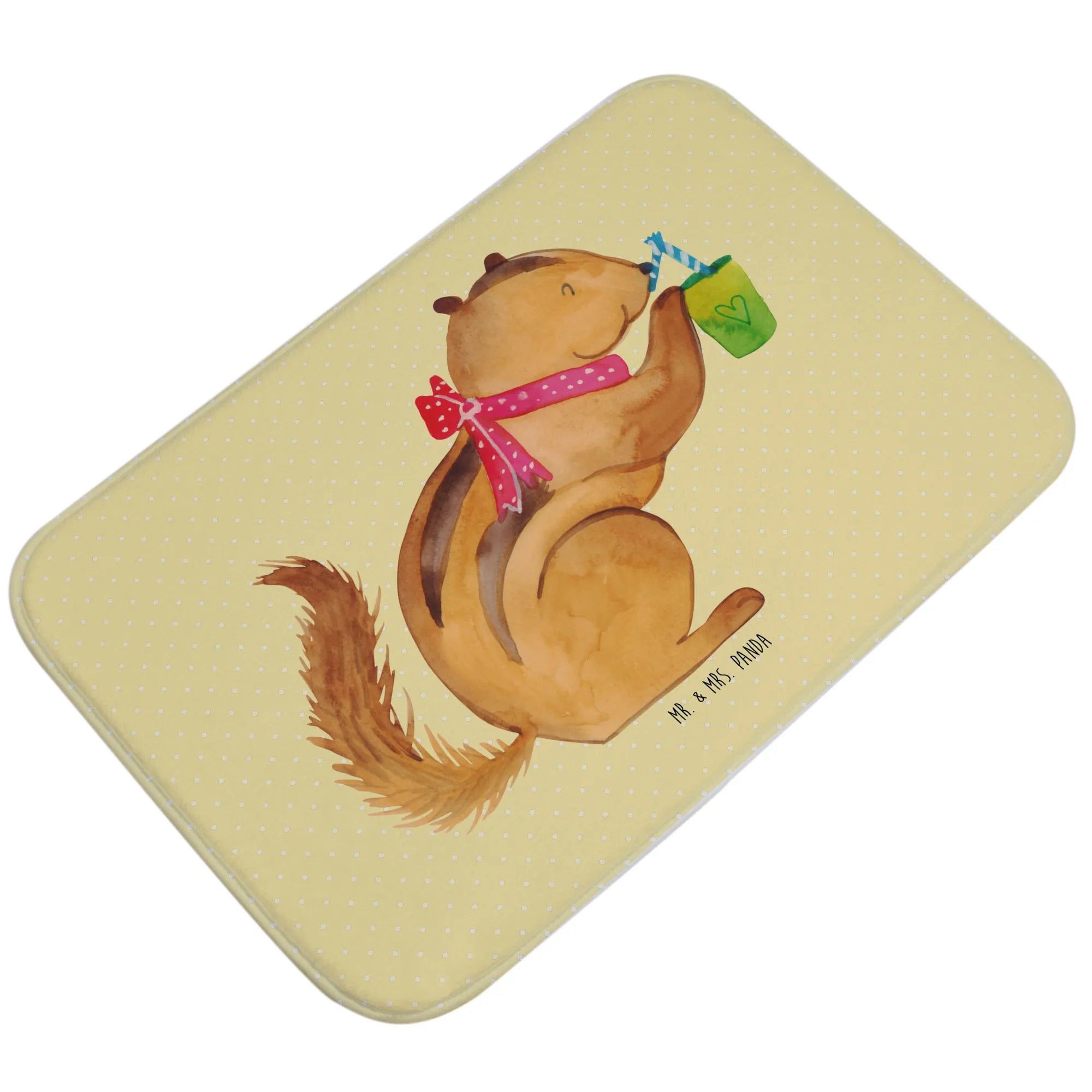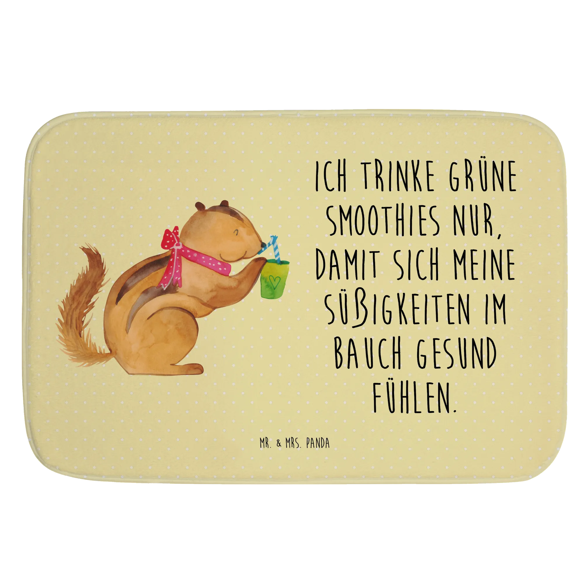 Der Badvorleger Eichhörnchen Smoothie aus der Small World Kollektion von Mr. & Mrs. Panda ist das perfekte Accessoire für dein Badezimmer! Er bringt nicht nur Farbe und gute Laune, sondern sorgt auch für Sicherheit dank seiner Anti-Rutsch-Gummibeschichtung. Das liebevolle Design mit dem süßen Eichhörnchen, das genüsslich einen Smoothie schlürft, verleiht deinem Badezimmer eine fröhliche Atmosphäre.