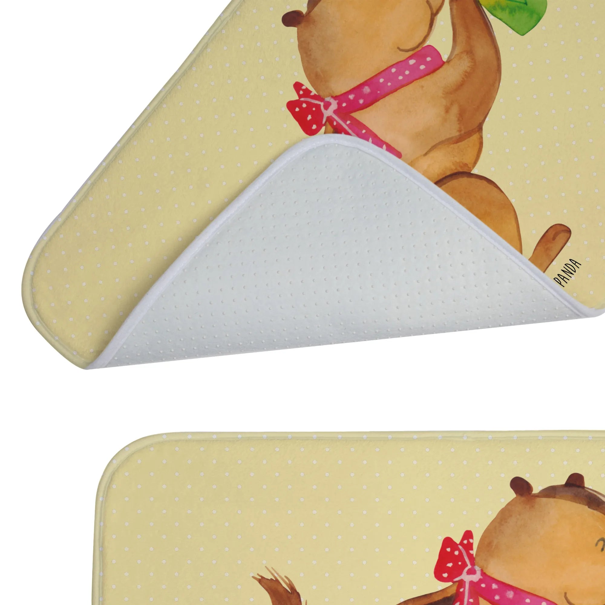Dieser wunderschöne Badvorleger von Mr. & Mrs. Panda bringt nicht nur Farbe in dein Badezimmer, sondern sorgt auch für einen angenehmen Komfort unter den Füßen. Mit seinen Maßen von 590 mm x 400 mm passt er perfekt vor die Dusche oder Badewanne. Der Badvorleger ist aus flauschiger Premium Kunstfaser hergestellt und verfügt über eine rutschfeste Gummibeschichtung, die das Ausrutschen verhindert. Die liebevoll bedruckten Motive und Sprüche verleihen deinem Badezimmer eine tolle Optik und machen den Aufenthalt dort noch angenehmer. Der Badvorleger ist besonders saugstark und sorgt dafür, dass Wasser schnell aufgenommen wird, während die Vorderseite angenehm weich bleibt. Du kannst ihn ganz leicht bei 30°C in der Waschmaschine waschen, sodass er immer frisch und einladend aussieht.